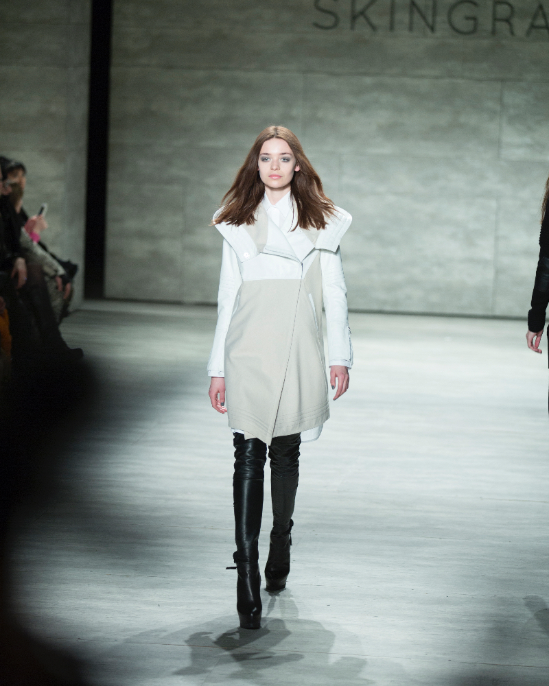 Skingraft presented a sleek autumn/winter 2015 collection at Lincoln Center’s Pavilion for New York Fashion Week. The new looks were perfect for everyday outings in chilly New York. Here are our images from the show.