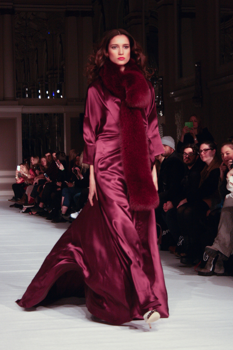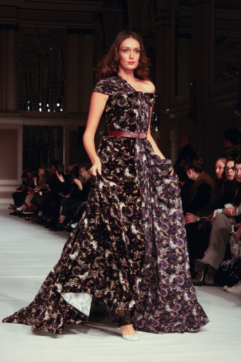 Ong-Oaj Pairam presented a wonderful autumn/winter 2015 collection at The Grand Connaught Rooms for London Fashion Week. The new looks were filled with luscious silk gowns, floral prints and woollen coats. Here are our images from the show.