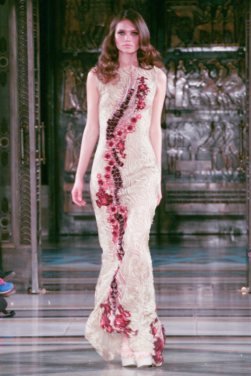 Set in the majestic Freemasons’ Hall, the show began with an assortment of ultra-feminine sundresses. Toughened up with select leather pieces, Tran presented an experimental mix of textures, while the impact of the collection slowly grew as daywear gave way to floor-sweeping evening gowns.