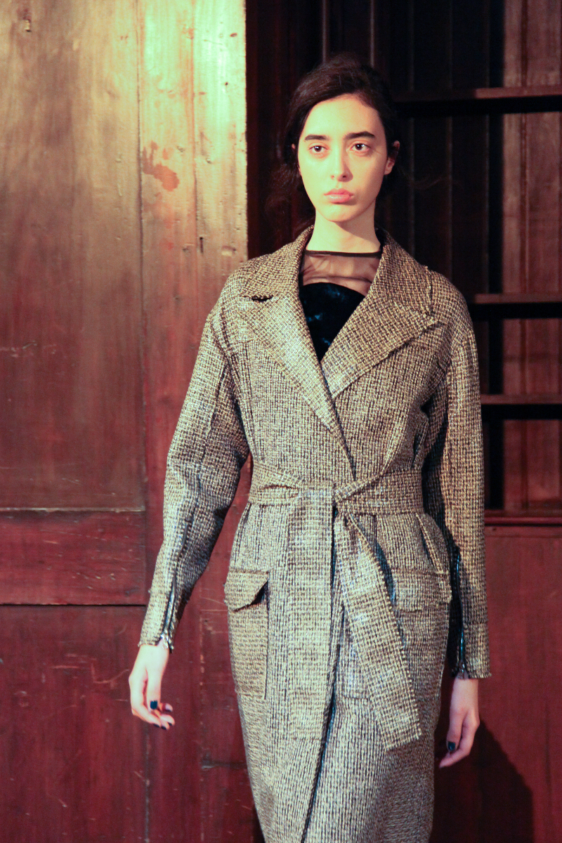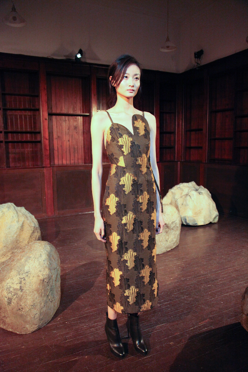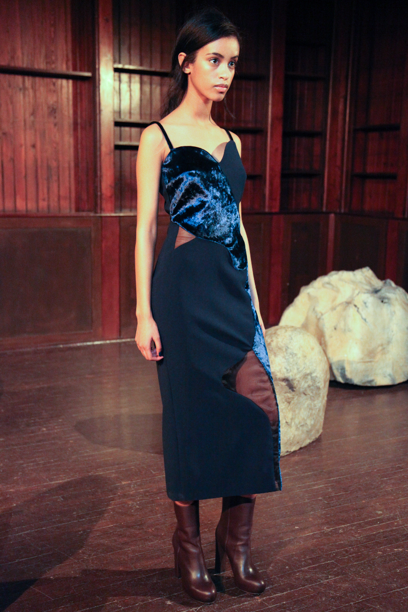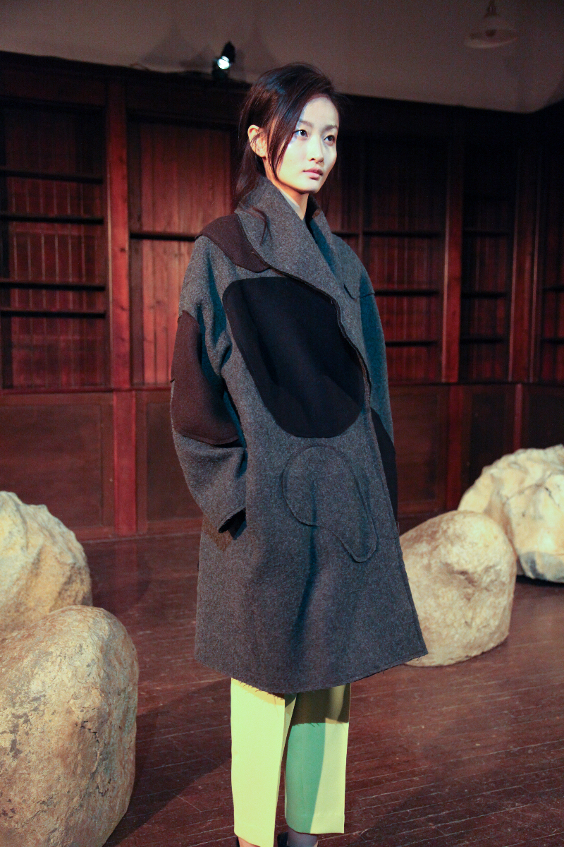 Pyo understands how nature contrasts with itself in its most basic form, and she has managed to capture this in her clothing, balancing materials with cuts and finishes, creating individual pieces that are truly unique. She mixed velvet with satin, created asymmetric patterns and finished them with straight and free-flowing cuts to create an inherently contradicted collection.