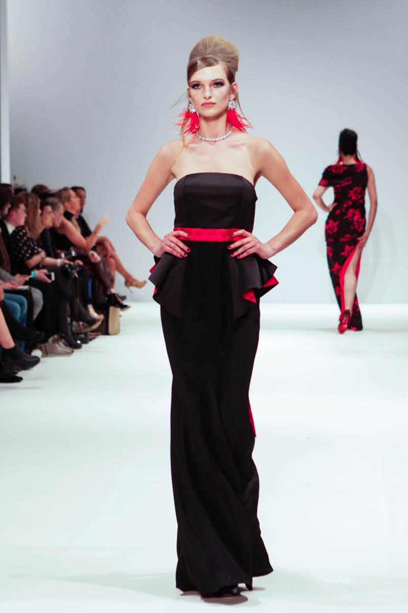 Then the real glamour; full-length gowns with laser-cut detailing glided along the runway, whilst sparkles and asymmetrical necklines glistened. Rich red, black and amber gave a sultry ambience, while navy and grey punctured the colour palette with some chic. The result was a grown-up, sophisticated version of Barbie who definitely enjoyed her fair share of luxury champagnes and evening banquets.