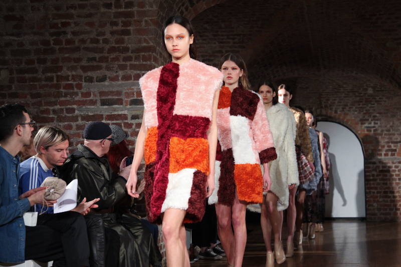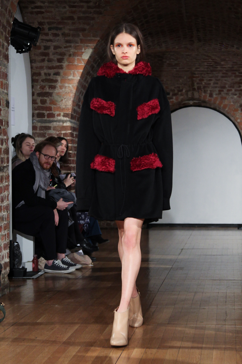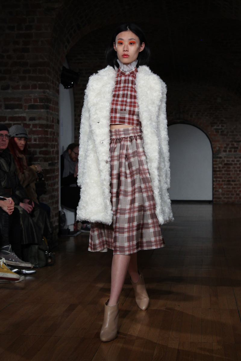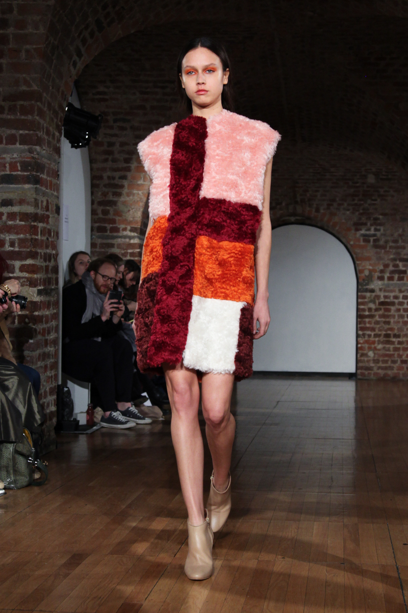 Asli Polat presented a smart autumn/winter 2015 collection at the Royal Society for the Encouragement of Arts for London Fashion Week. The new looks featured faux fur and fabric patchworks. Here are our images from the show.