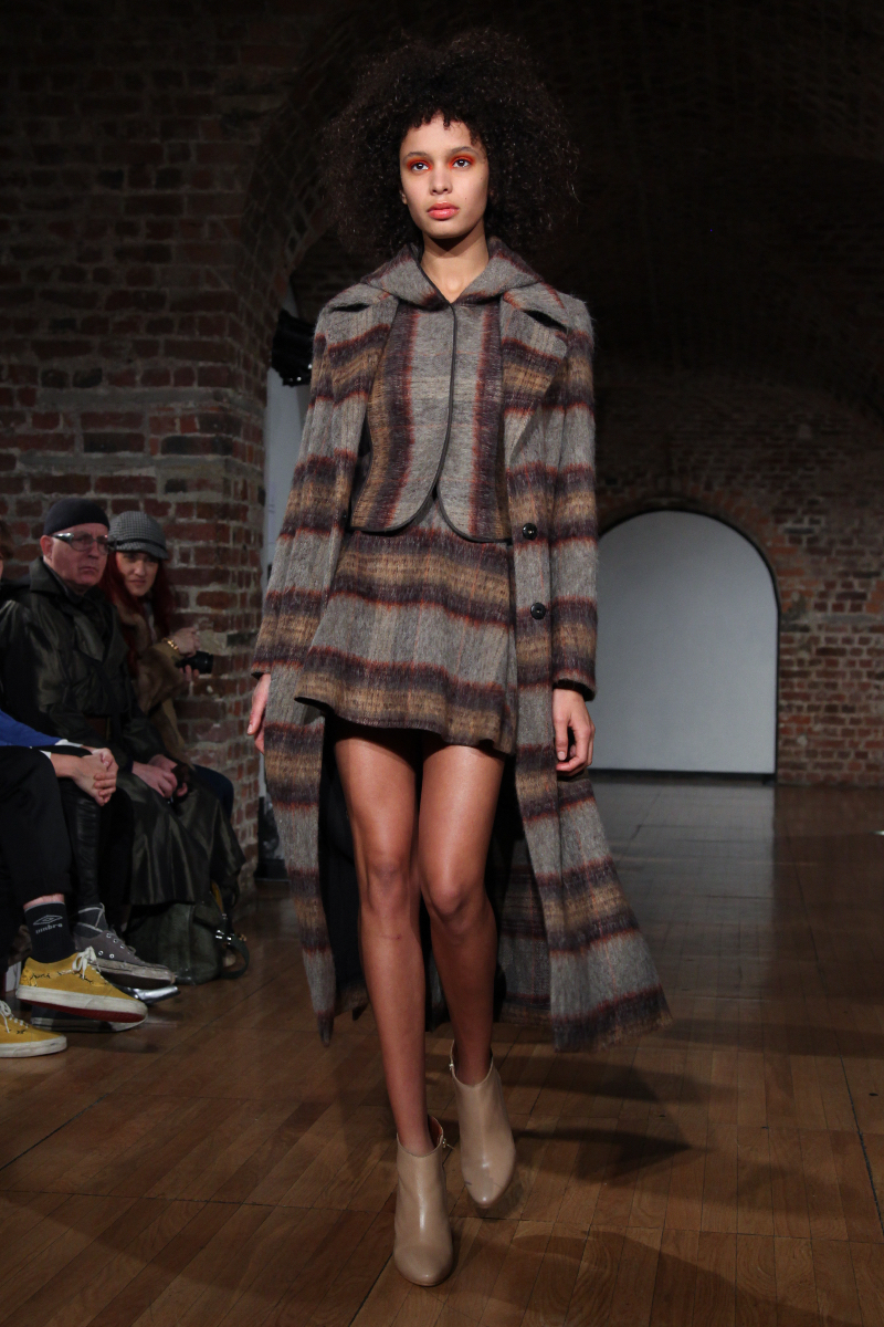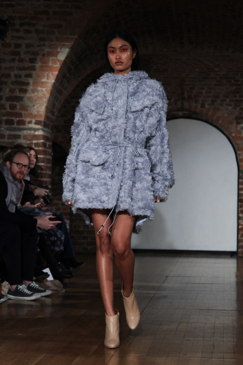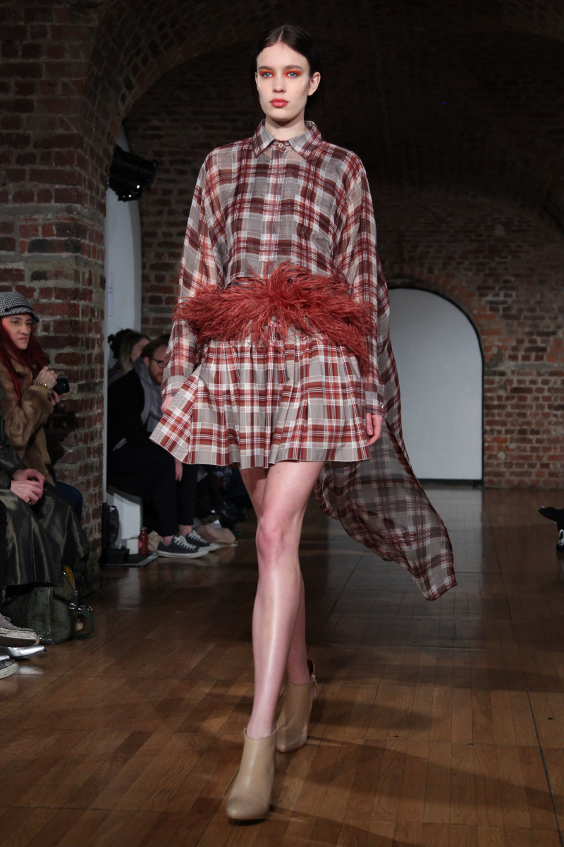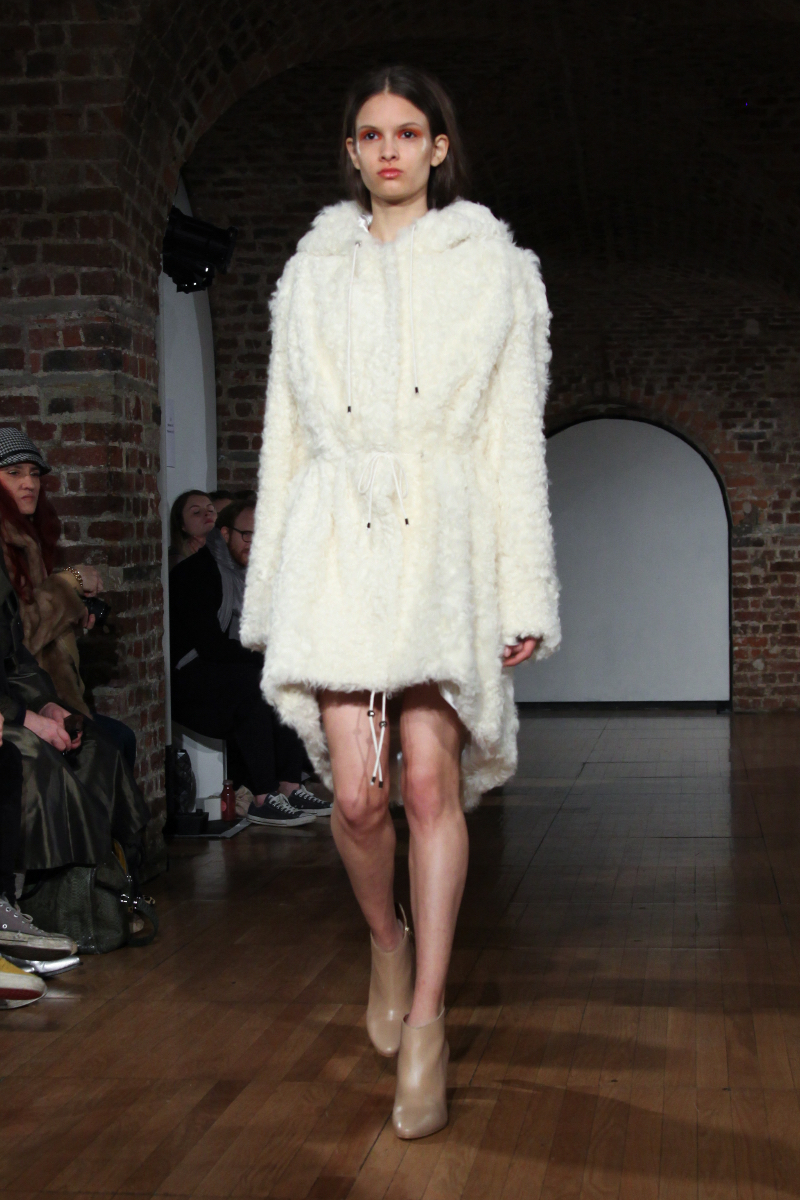 Asli Polat presented a smart autumn/winter 2015 collection at the Royal Society for the Encouragement of Arts for London Fashion Week. The new looks featured faux fur and fabric patchworks. Here are our images from the show.