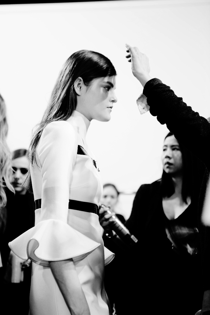 While fashion-lovers queue outside the venues, dozen of people are running behind the scenes to prepare every single detail. How many people take care of the beautiful models (and dresses) that we see catwalking on the runway?