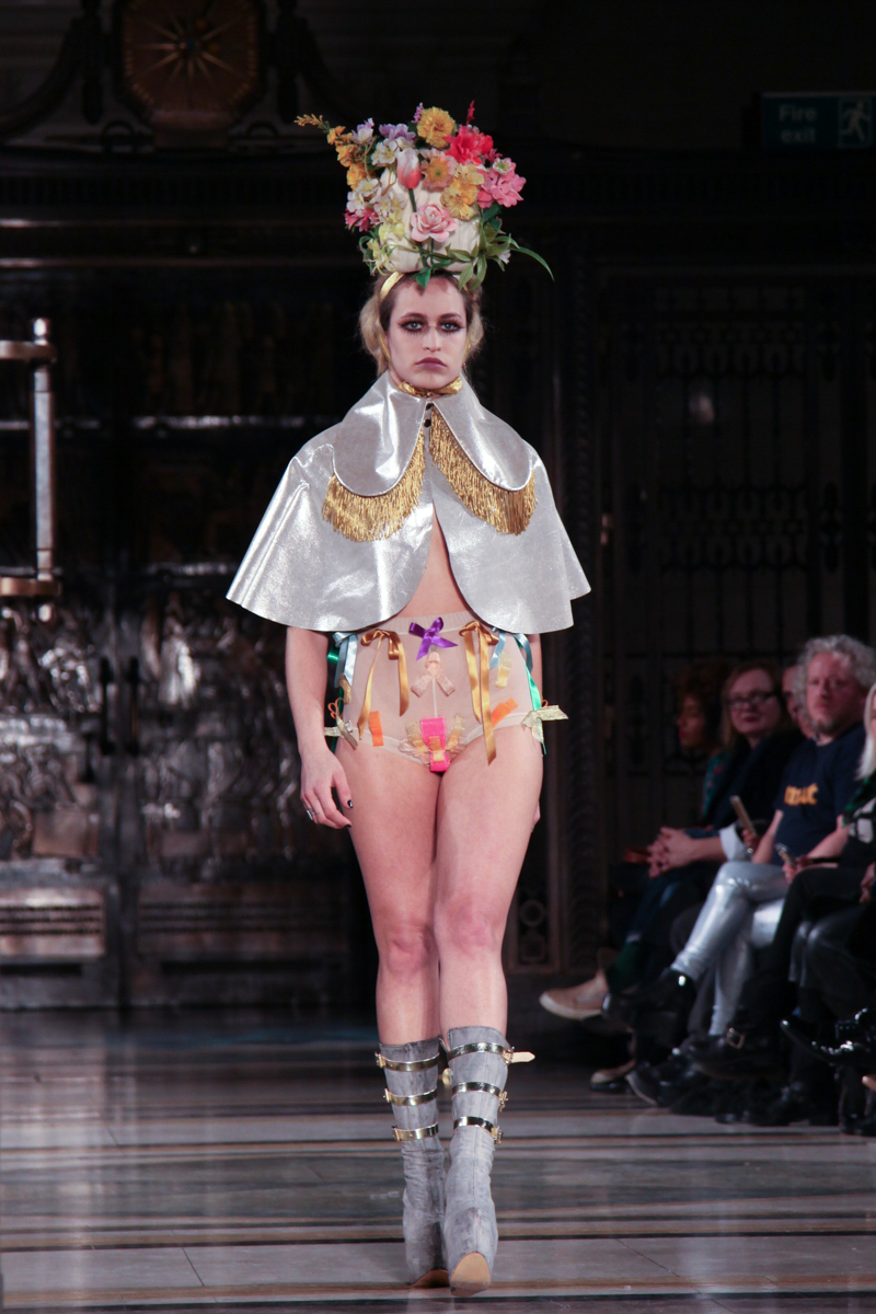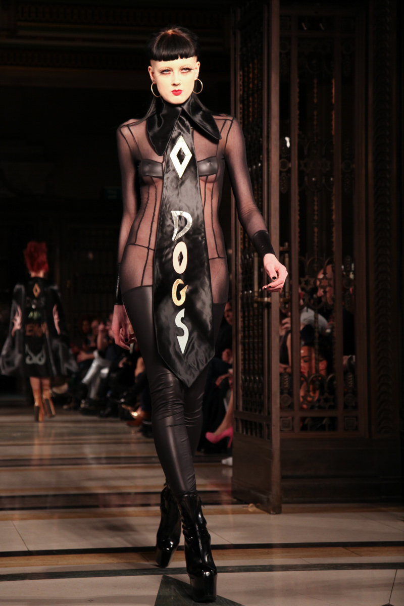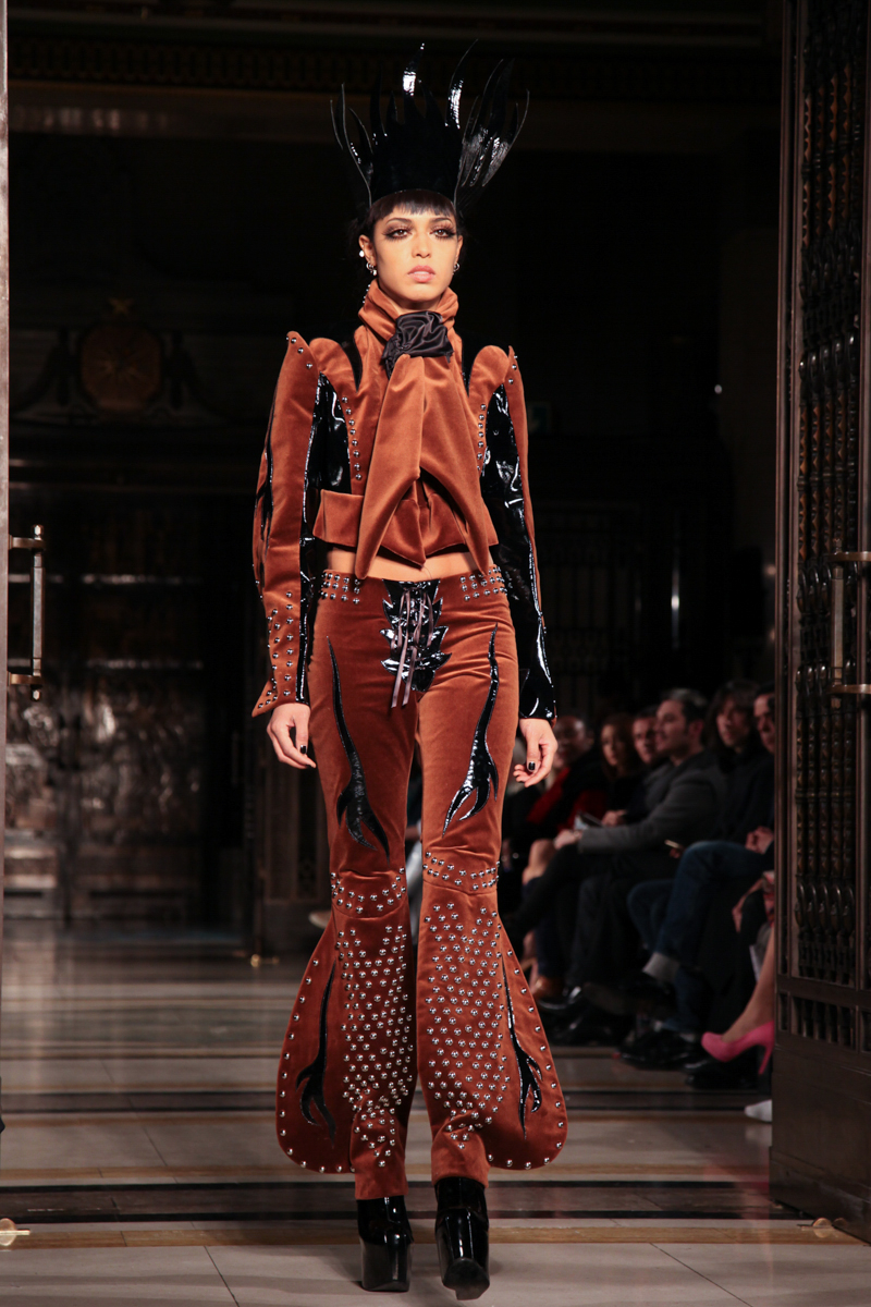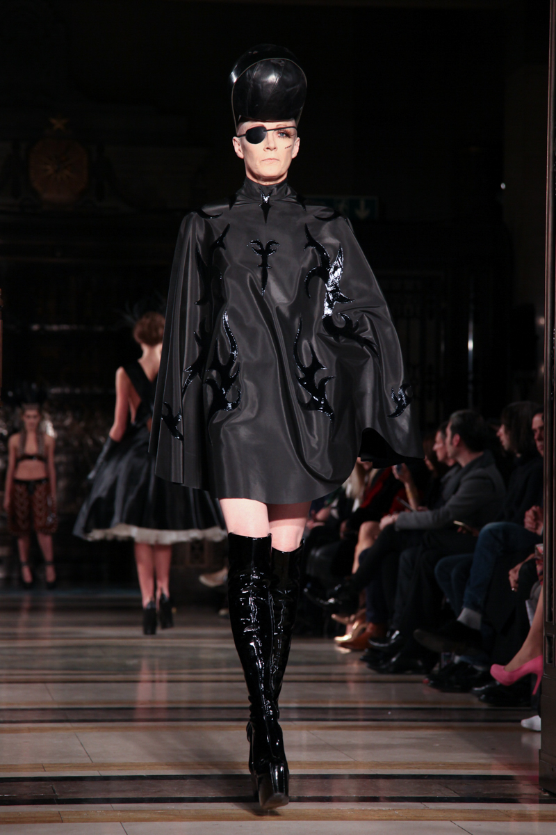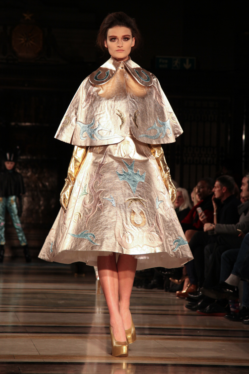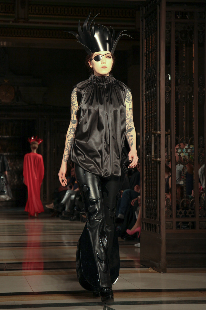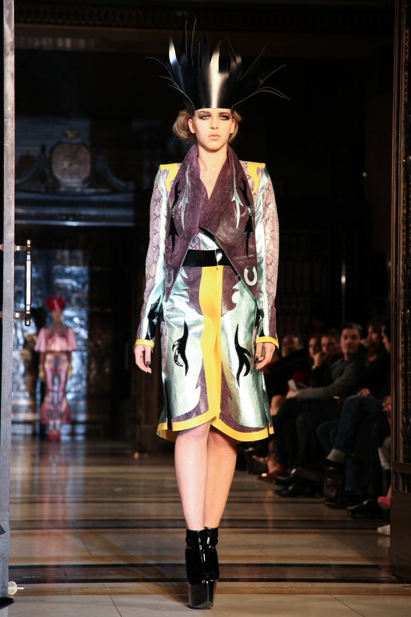 Pam Hogg presented a wild punk autumn/winter 2015 collection at the Freemasons’ Hall for London Fashion Week. The new looks were daring and exuberant. Here are our images from the show.
