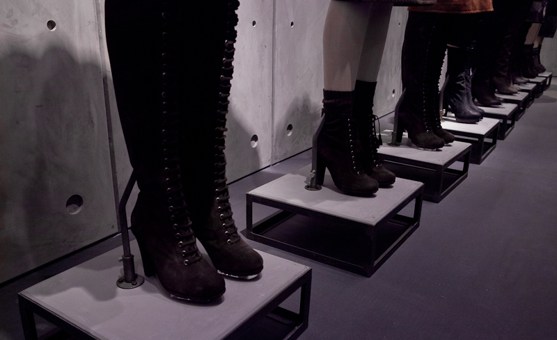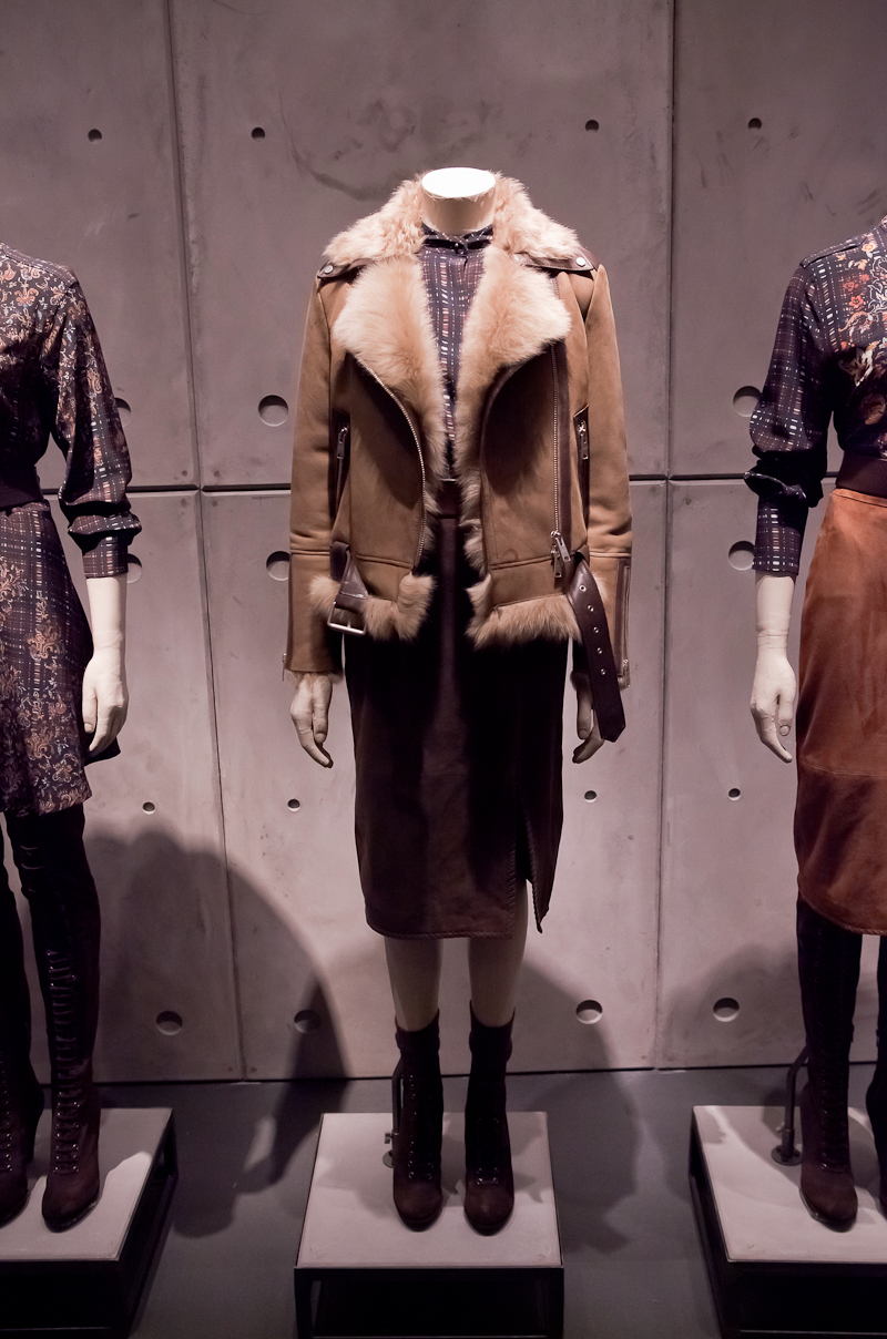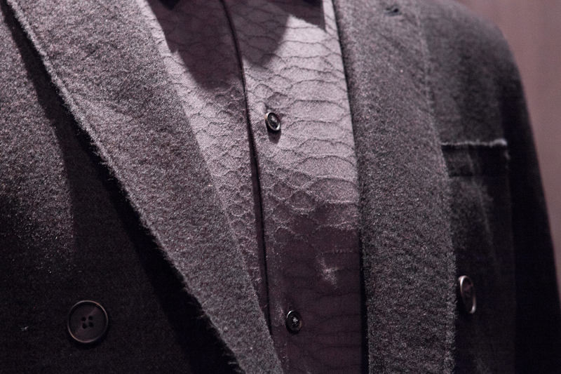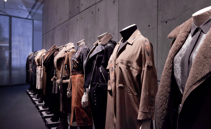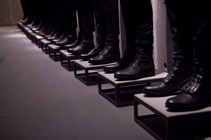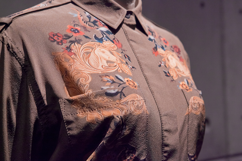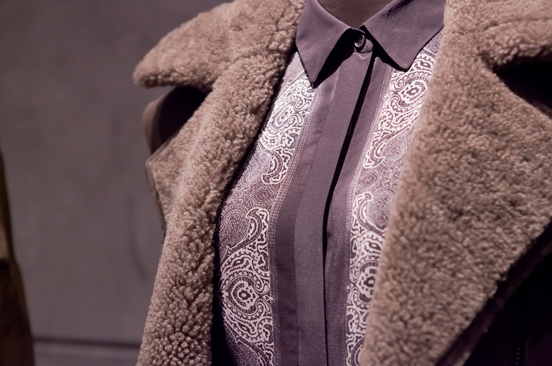 All Saints presented a rocky yet sober autumn/winter 2015 collection at the Royal College of Art for London Fashion Week. The new looks were shearling jackets and subdued floral patterns. Here are our images from the show.