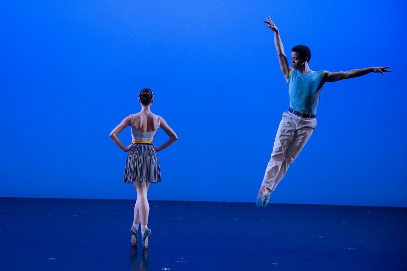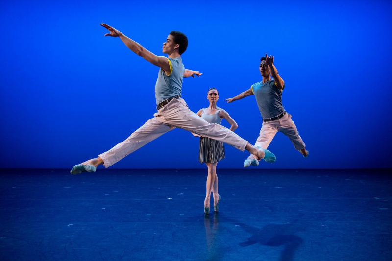 NYTB is treasured for its revivals of lost or forgotten works. They are now caretakers of Merce Cunningham’s Cross Currents. The early 1954 work is danced not to John Cage but Conlon Nancarrow, who also altered piano sounds. The trio, performed by Alexis Branagan, and Amanda Treiber and Chooh Hoon Lee, is a primer on how to utilize and create space. The step combinations are incredible; the three propelled by energy. Cross Currents looks new but is timeless.