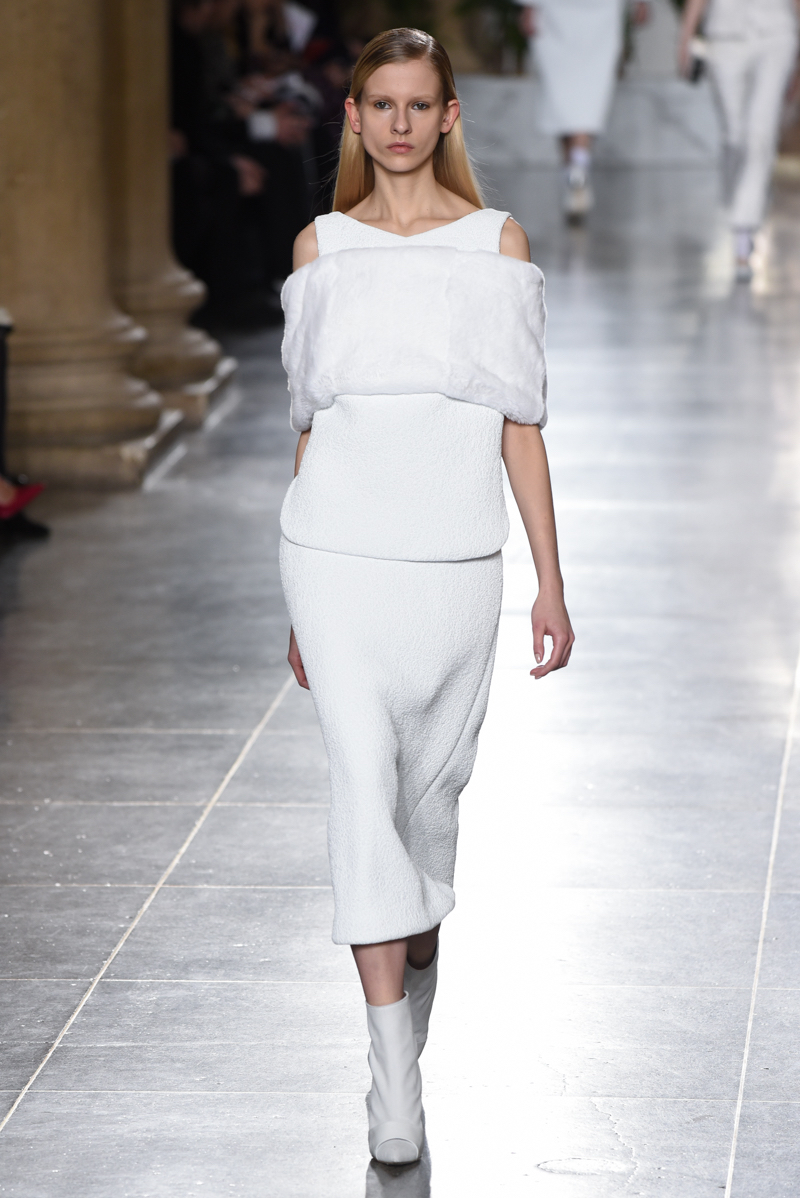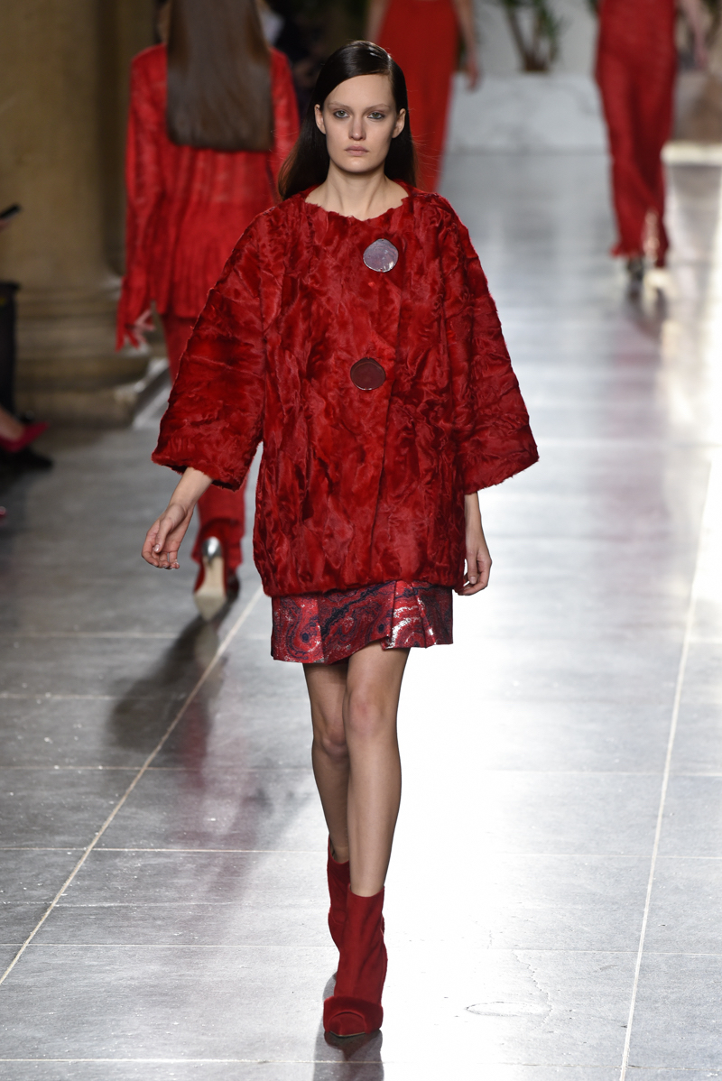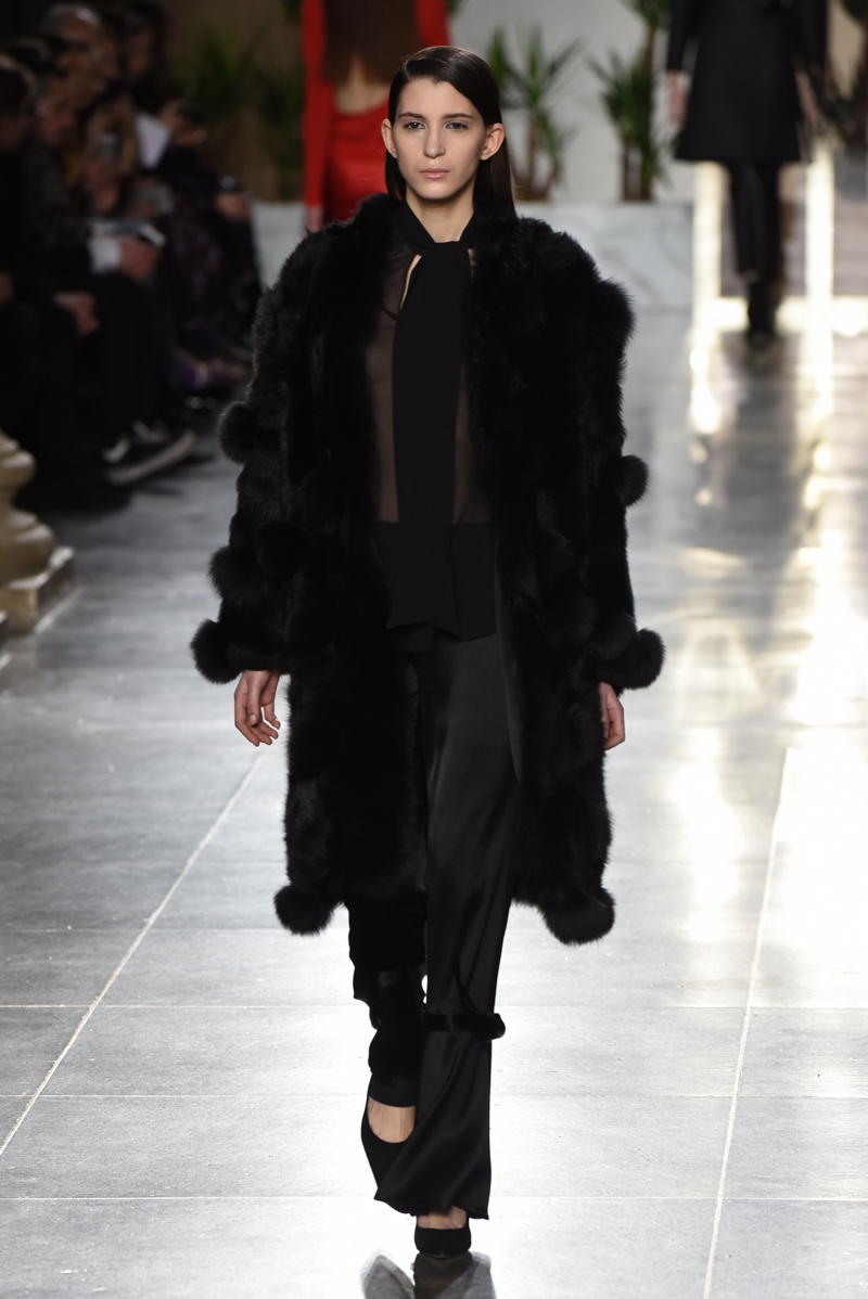 Osman presented a feminine autumn/winter 2015 collection at the Topshop Show Space for London Fashion Week. The new looks were elegant dresses and coats made of fur and silk. Here are our images from the show.
