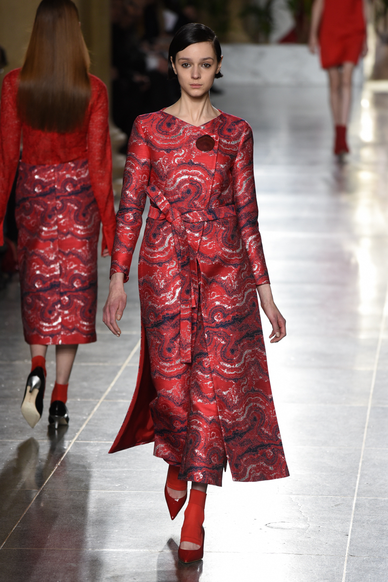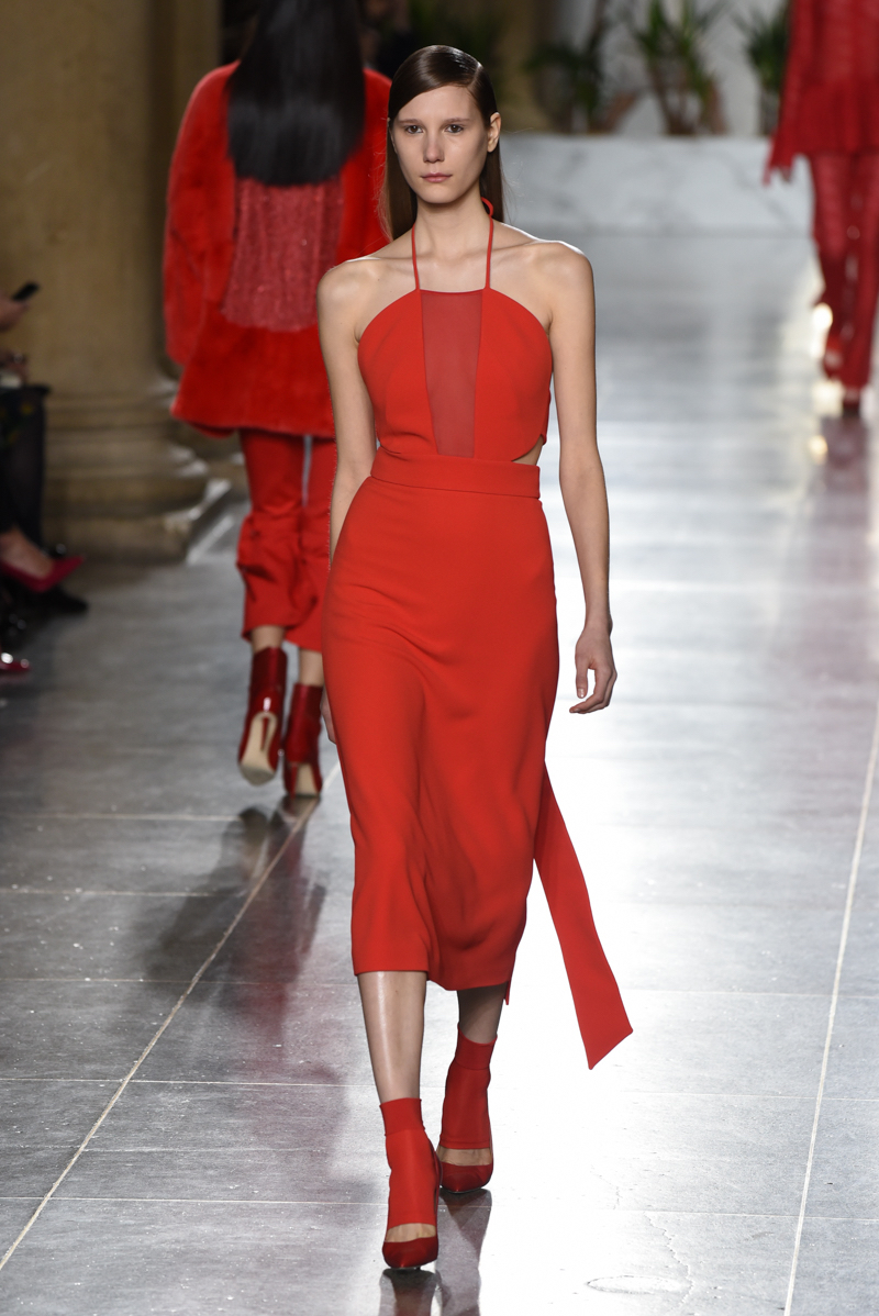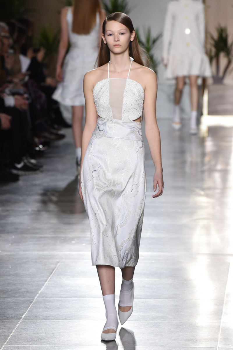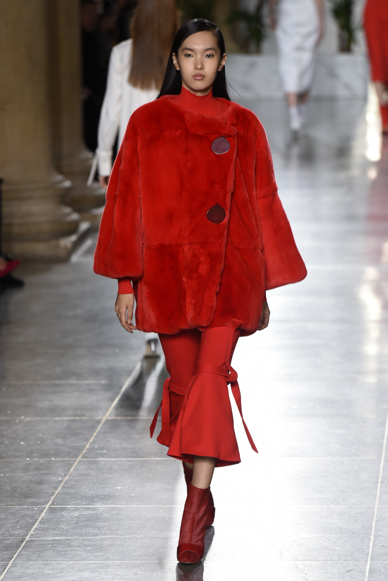Osman presented a feminine autumn/winter 2015 collection at the Topshop Show Space for London Fashion Week. The new looks were elegant dresses and coats made of fur and silk. Here are our images from the show.