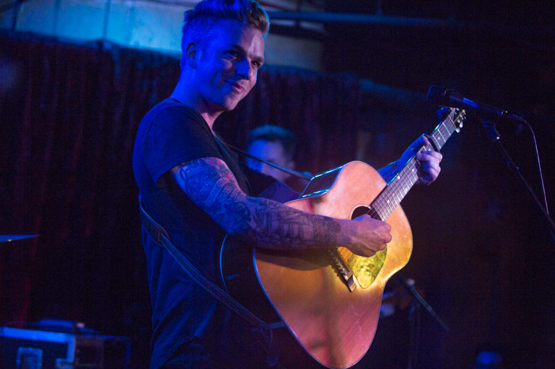 It’s always a good sign if the last song of the night has the crowd stretching the life out of their larynxes and a man fist pumping front of stage. Based on this, Greg Holden can give himself a well-earned pat on the back for Friday night’s show in a humid Borderline basement. Scottish-born, but living in New York for the past seven years and on his third album Chase the Sun, his accent has that hybrid mash of two countries’ competing inflections, and he looks every bit a man of the modern world in a low-cut black t-shirt and arms loaded with with tattoos.