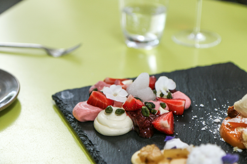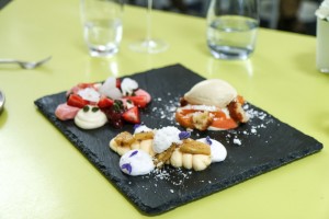 The wine list is relatively extensive for a restaurant that doesn’t have dinner service, with impressive bottles of champagne – a beautiful Perrier-Jouët Belle Epoque Rosé 2004 – and even a Jura wine, a favourite for connoisseurs. Sadly, the red wines page aims at pleasing the rich costumer, with bottles from Bordeaux rather than the more sophisticated Burgundy. We have Jean Rijckaert’s Cotes du Jura Les Sarres Savagnin 2007 and Domaine Fouassier’s Les Grands Champs Sancerre 2012 with the starters; Johnson Estate’s Pinot Noir Satellite 2012 and Castello Banfi’s Rosso di Montalcino 2013 with the mains.
