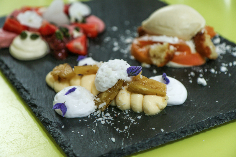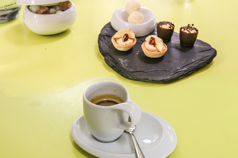 The dessert selection reflects the spirit of the cuisine: there’s fruit in every course and no chocolate. The selection we have comprises English Strawberry, Pistachio and Vanilla; Grilled Pineapple, Coconut and Hazelnut; and Lemon Thyme Infused Panna Cotta and Peach. The coffee is roasted by Caravan in King’s Cross; though it’s a little too long for an espresso, it’s simply exquisite.