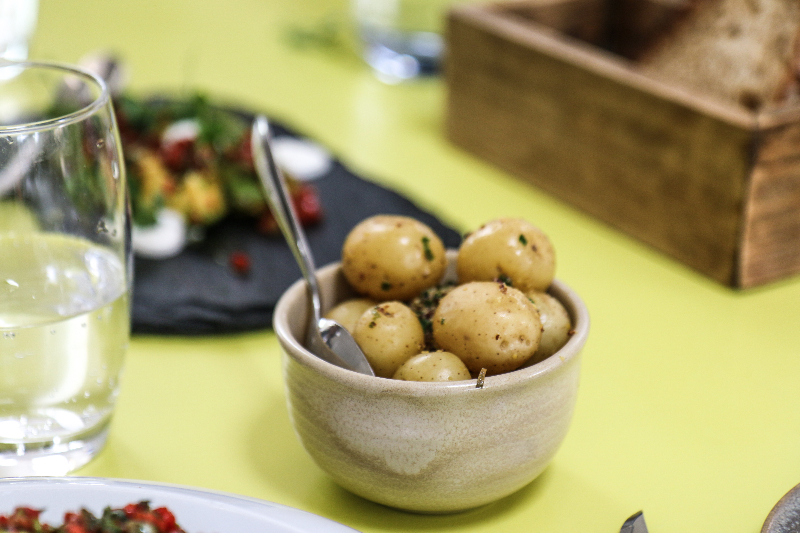Lovers of the steak-and-fries combo will be disappointed by the lack of chips, but there are healthier options that fit better with this menu: New Potatoes, Wholegrain Mustard and Mint and Avocado, Piquillo Peppers and Smoked Yoghurt.