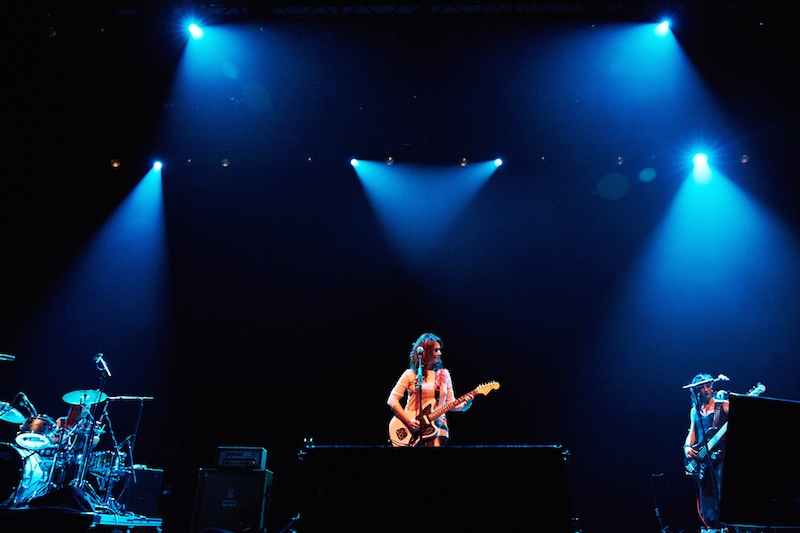 Looking a shade of glamorous in a long leather skirt, blouse and heels, she contravenes her image through grungy, slack guitar sounds. Working as a three-piece, the songs sound impressively big. Numbers such as the sweet, indie-sounding L’abitudine di Tornare and Stato di Necessità (which should really translate as An Ode to The Pixies ) confirm why she is so loved in her native country. Possibly the only reason she isn’t known over here is down to her singing all of her songs in her native language. The seated venue doesn’t feel that suited to her style, though, and it takes a thumping rendition of Venere to finally break reticence and spring people into action, rushing down to the front of the stage to rock out, where they loyally stay put for two encores.