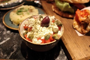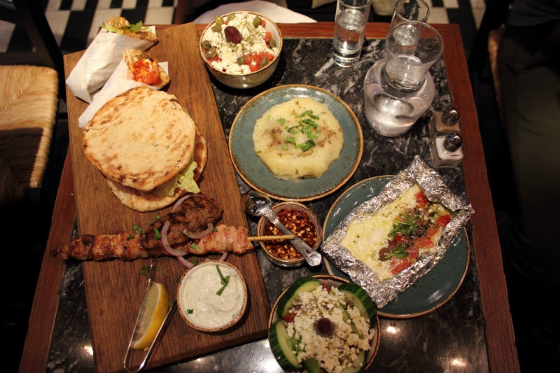 With the kitchen in plain view, and plenty of chefs and wait-staff to greet us inside, we were made to feel instantly at home and amongst family. This was made even more so by the close proximity between tables and the cosy atmosphere within the restaurant, and we soon befriended the couple beside us, who had visited Suvlaki on three occasions since its opening just a month ago. Before rushing off to the theatre, they recommended the Suvlaki Exuberance for two to share, which encourages diners to try a range of the restaurant’s dishes. We were more than happy to oblige.