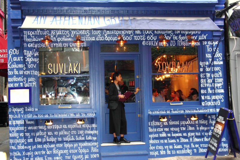 Strolling down Soho’s busy Bateman Street, Suvlaki stands out from the crowd of food joints with its white and blue graffiti-laden exterior, coaxing passers-by to take a peek into this new street food-inspired restaurant, which has recently been revamped and taken over by Yannis Theodorakakos and chef Elias Mamalakis.