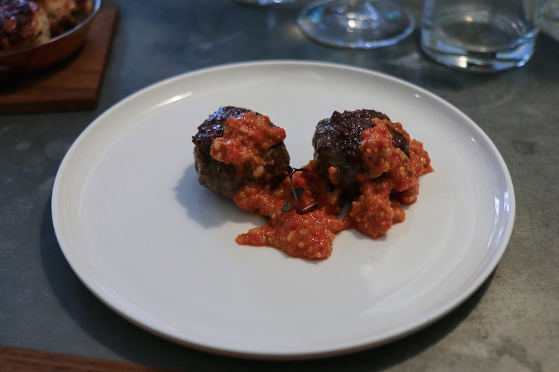 The Pork, Ricotta, Parmesan Milk Bread, Pine Nuts, Basil & Sage feels much lighter than it sounds: the meatball texture is rather classic with a predominance of additional elements over the actual meat, however it’s so delicate that you wouldn’t think there was pork in it.