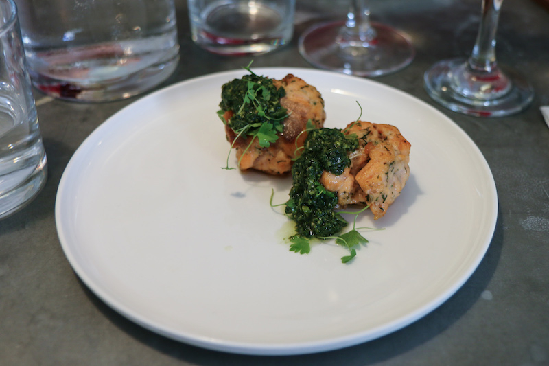 The Salmon, Dill & Seeds – which works perfectly with the Pesto, Basil, Lemon, Garlic, Cashew Nuts – is not what you would expect (ie a fish cake); rather it’s actual salmon, similar to a pan-cooked fillet. And it can also be triple-paired with the Gin Dilla (gin, dill, lemon juice cucumber, salt, fresh lemon balm) cocktail.