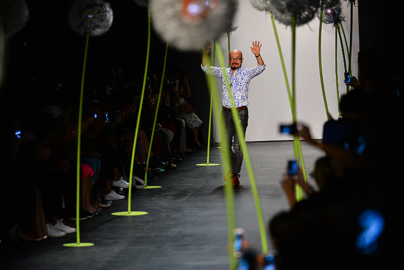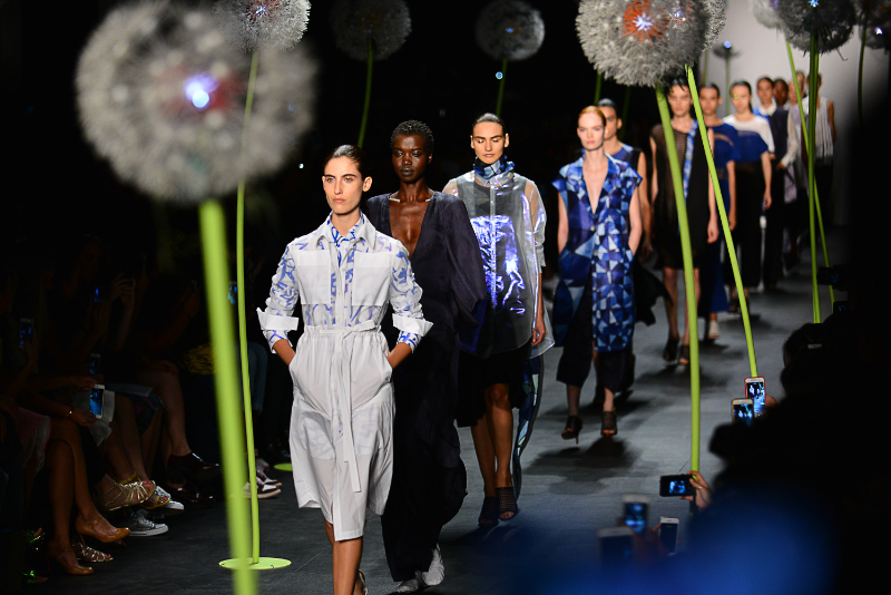 For his Spring/Summer 2016 collection, Lie Sangbong took us to new heights. Playing with scale and texture, each look seemed inspired by a kind of flight through the skies of New York. Architectural geometry and classic silhouettes were contrasted with organic draping and wind-blown volume. His neutral color palette of white, blue, and black actually gave the opposite effect; his variety of textures served to reinvent each color from their “neutral” status into bold, graphic hues.
