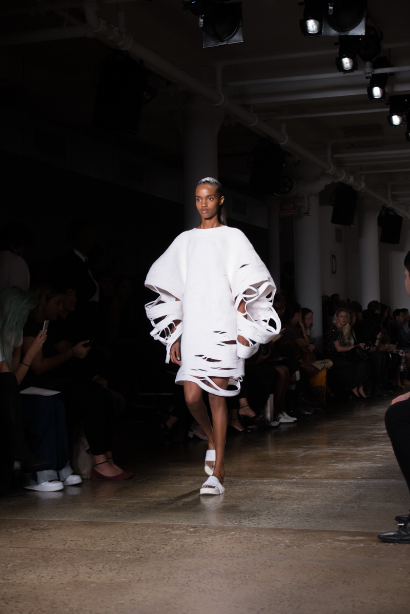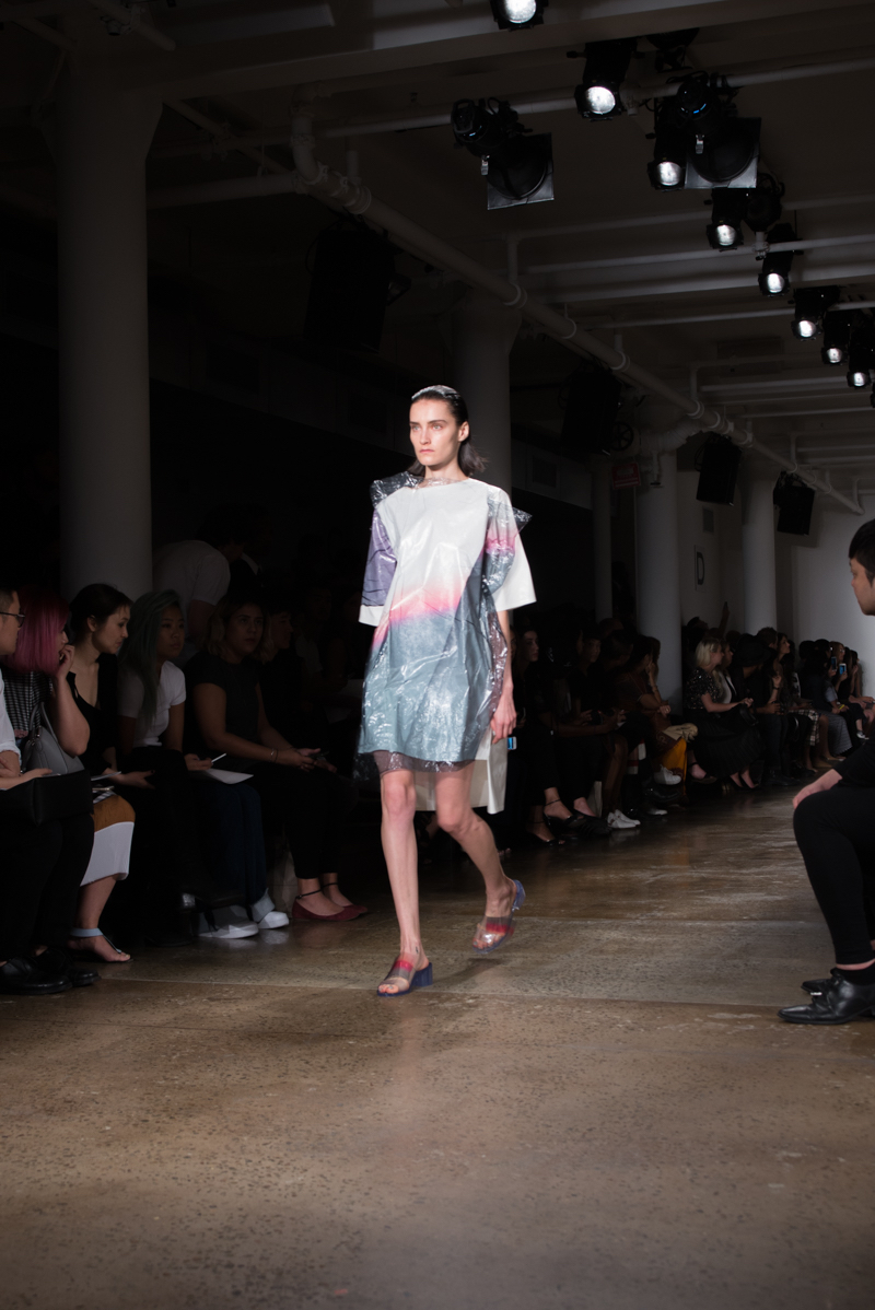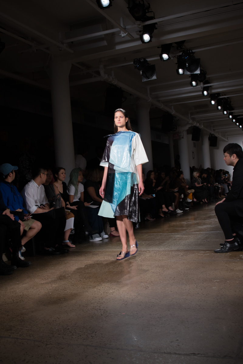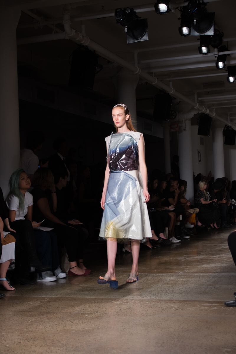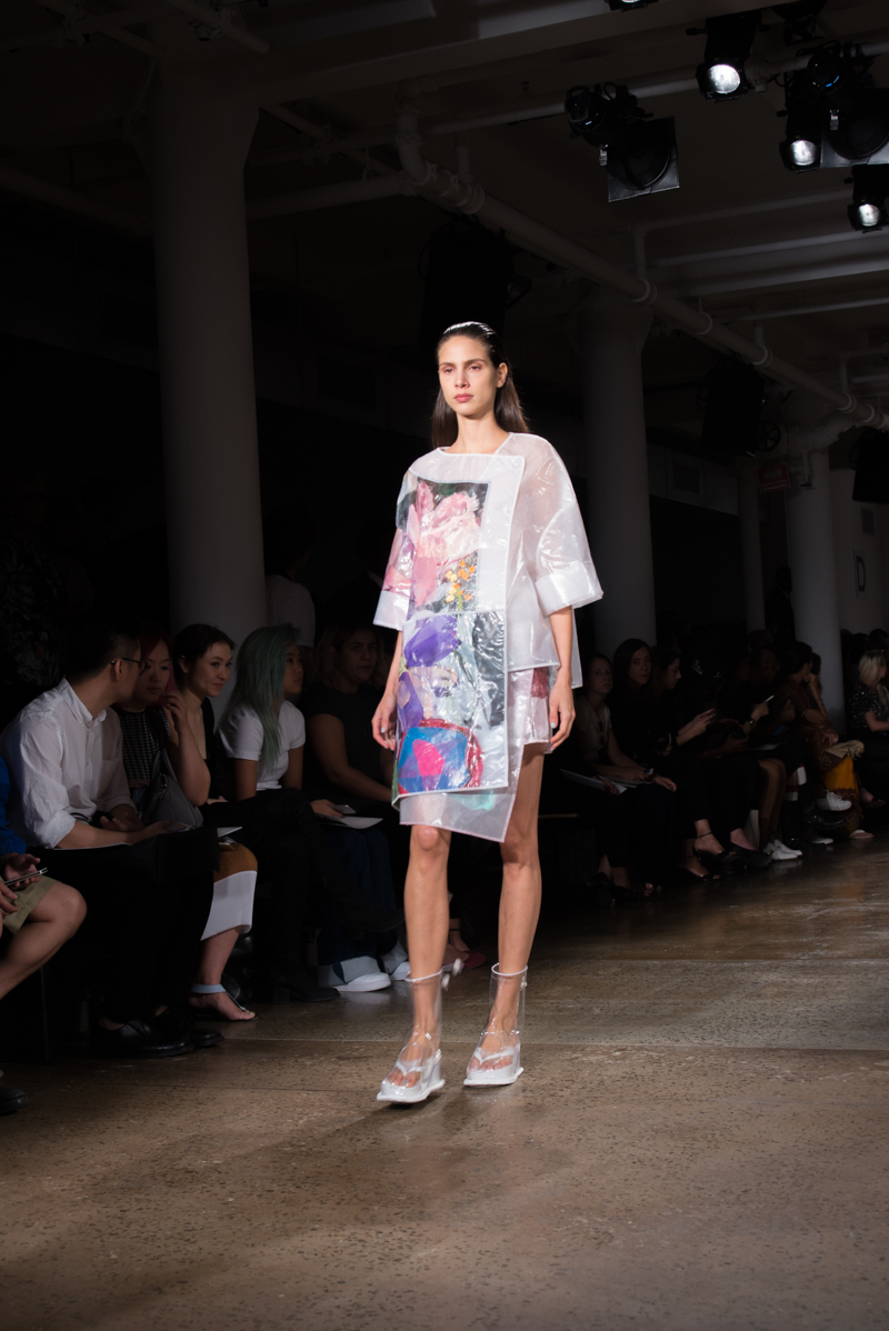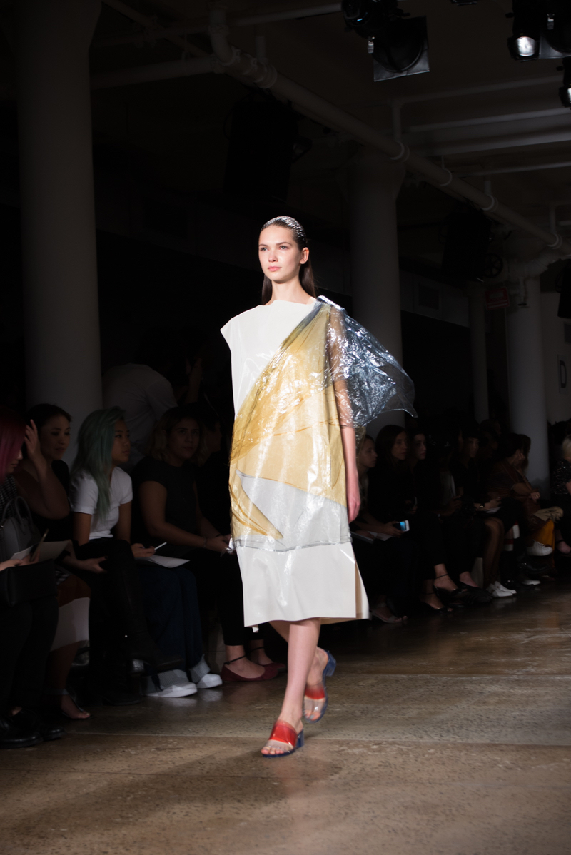 The Parsons MFA program presented an impressive spring/summer 2016 collection at Milk Studio for New York Fashion Week. The designers presented work from across the style spectrum, from oversized puffy coats to elegant and sheer gowns. Here are our images from the show.