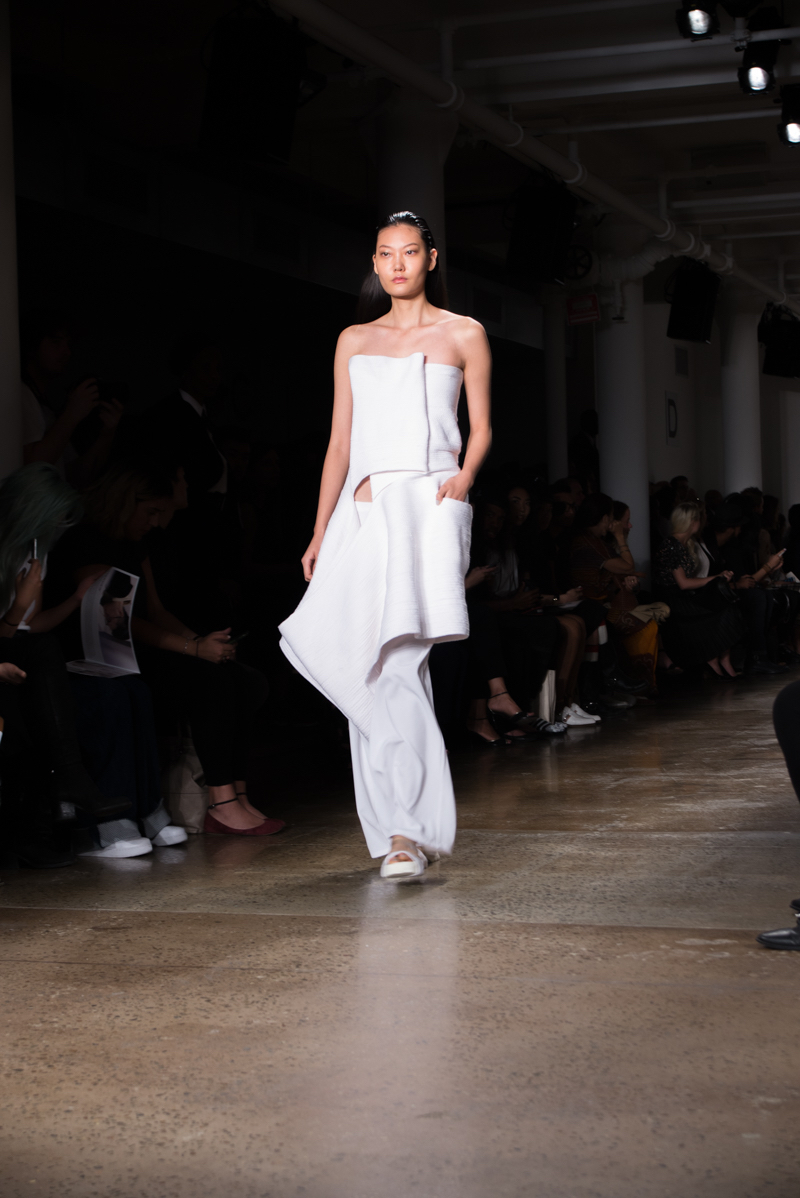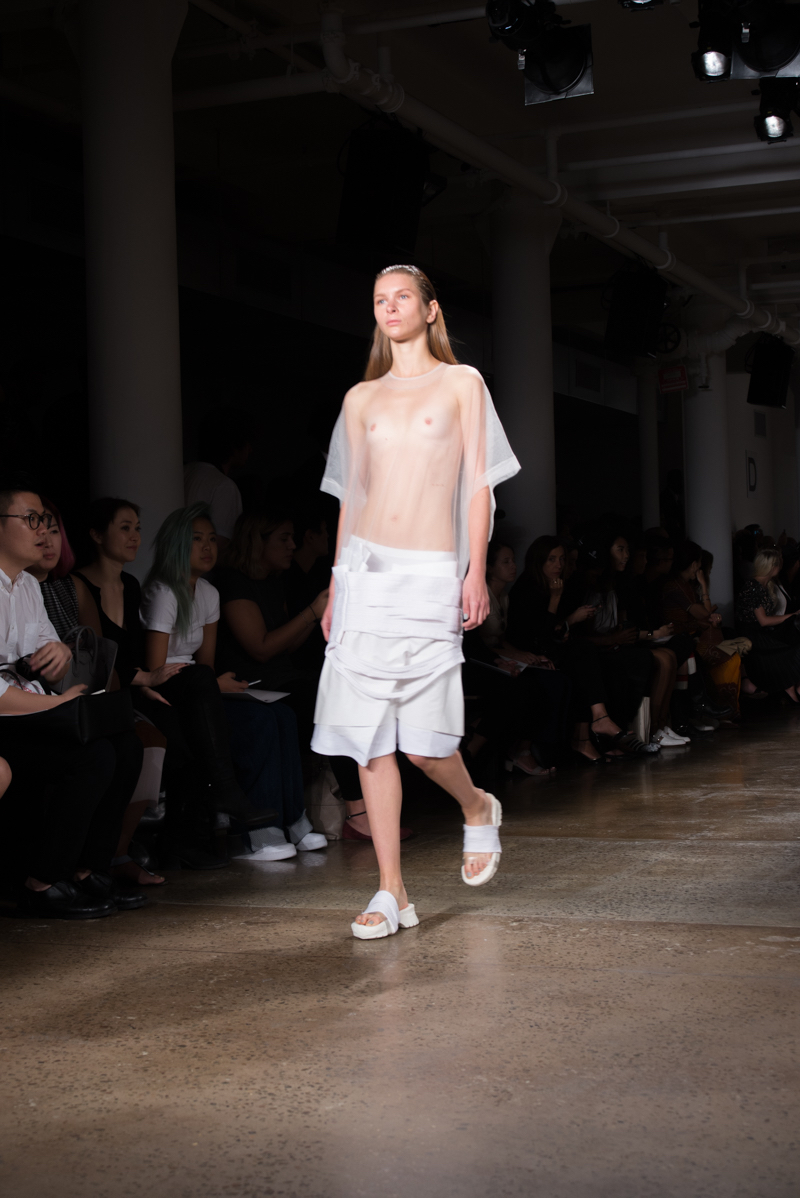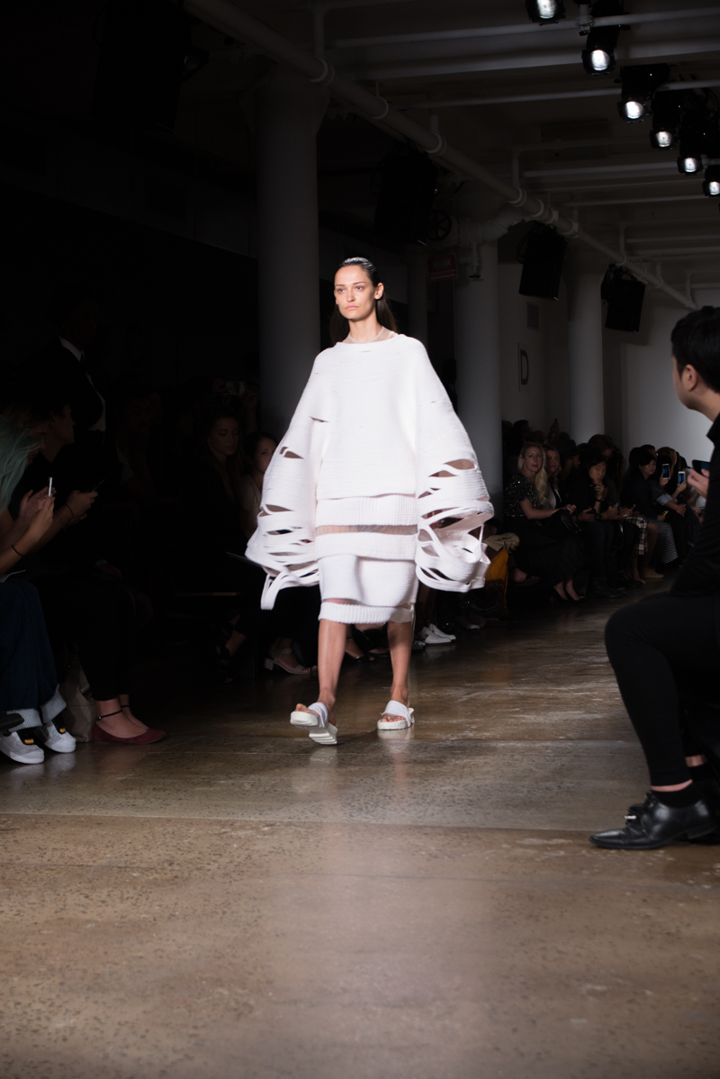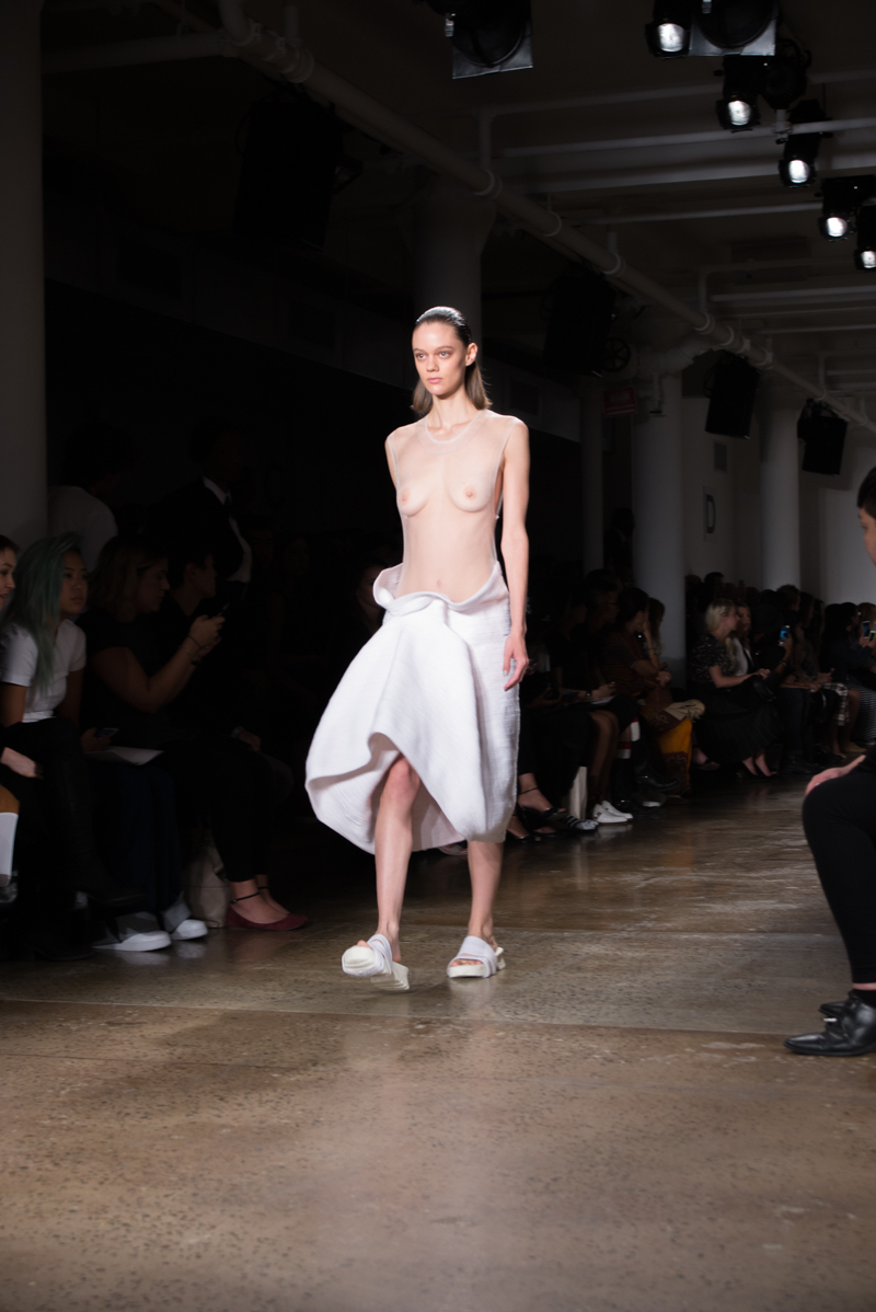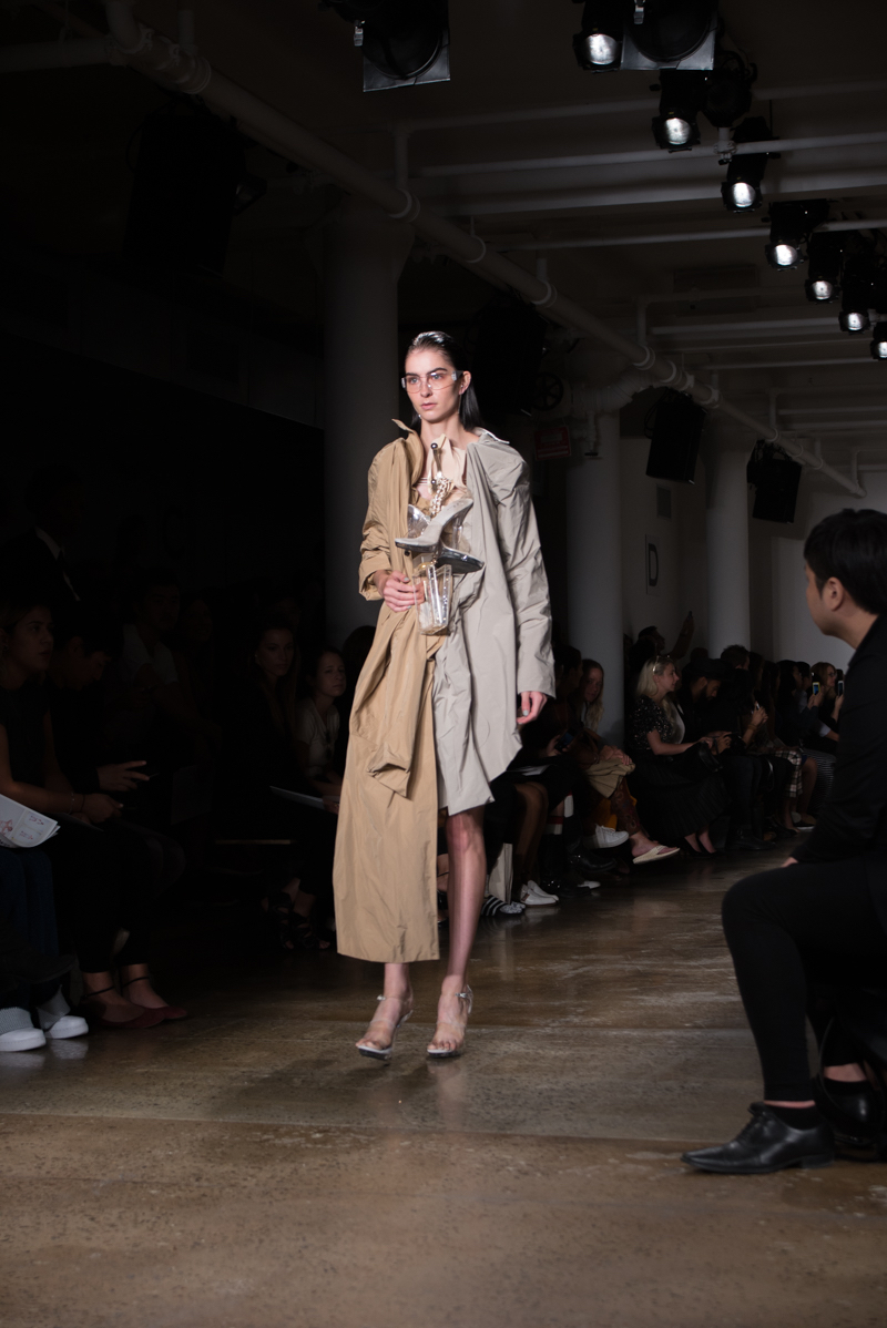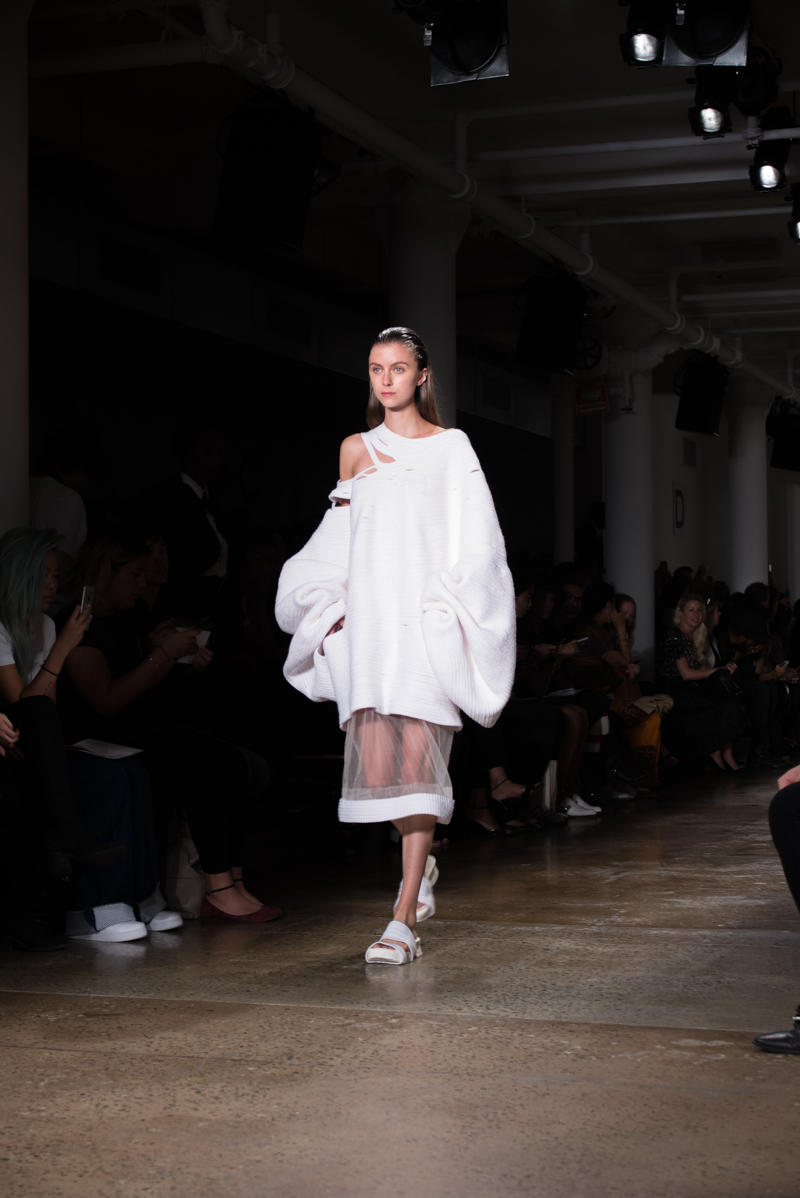 The Parsons MFA program presented an impressive spring/summer 2016 collection at Milk Studio for New York Fashion Week. The designers presented work from across the style spectrum, from oversized puffy coats to elegant and sheer gowns. Here are our images from the show.