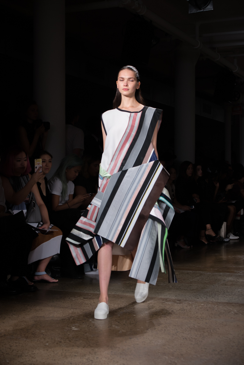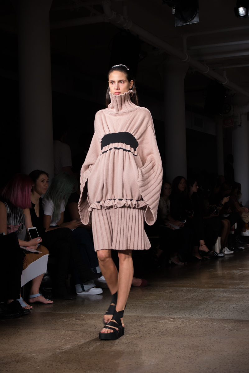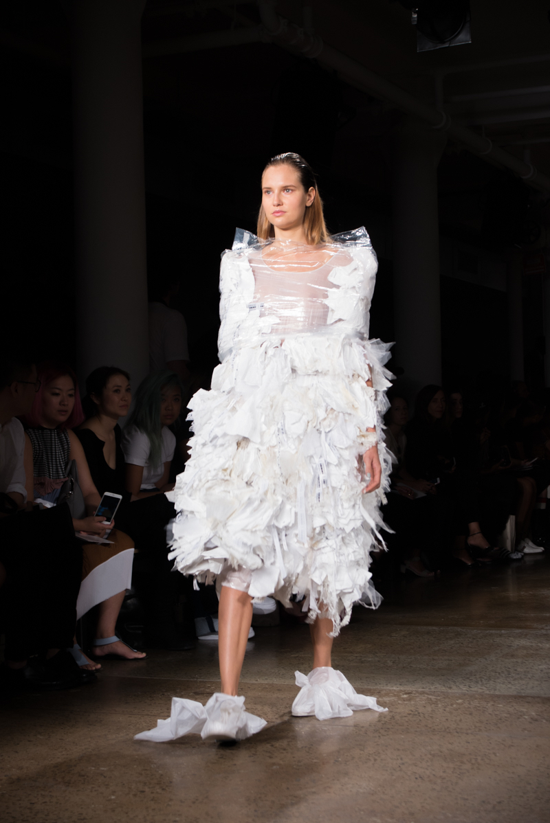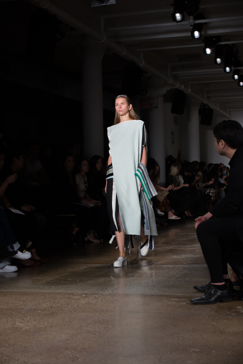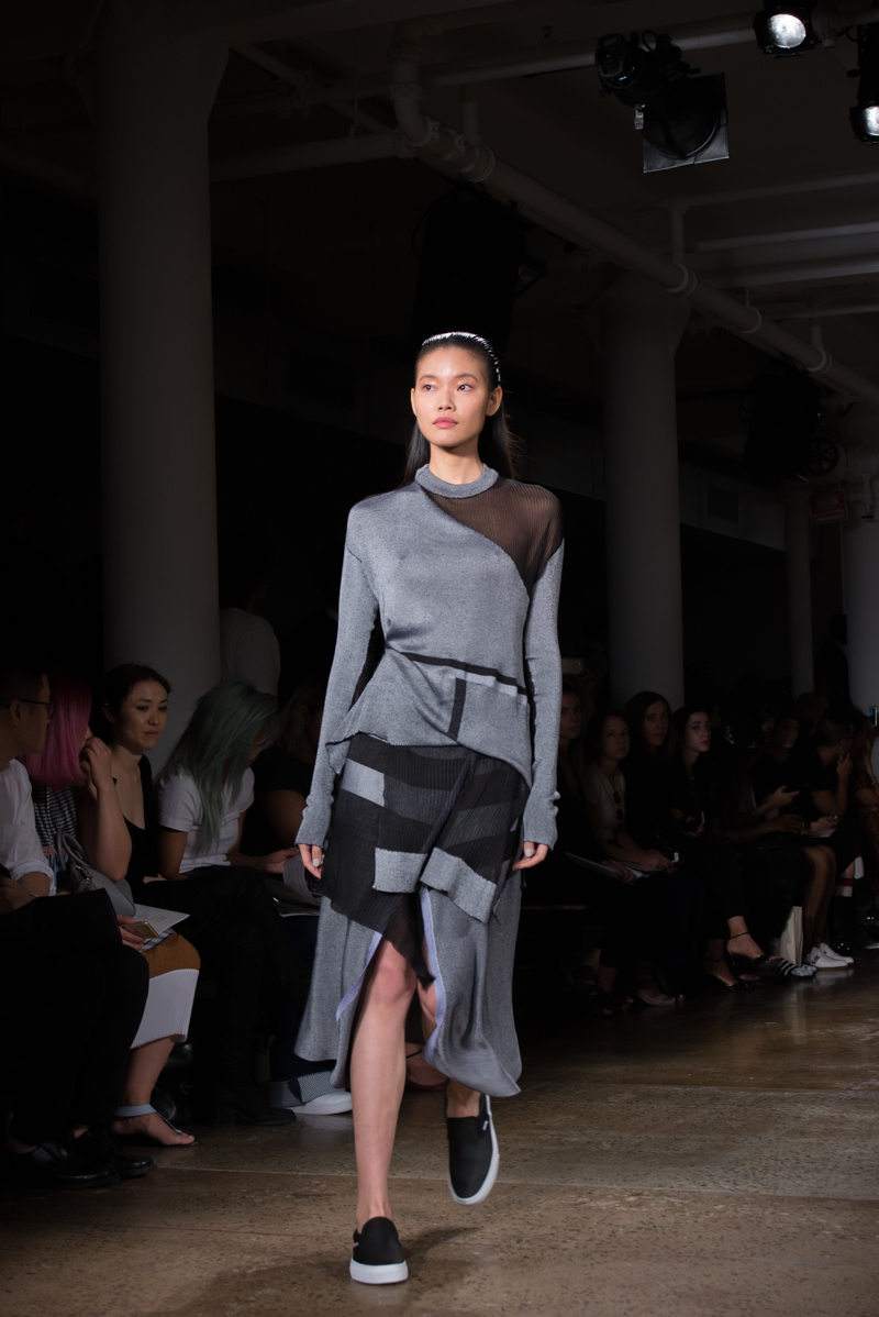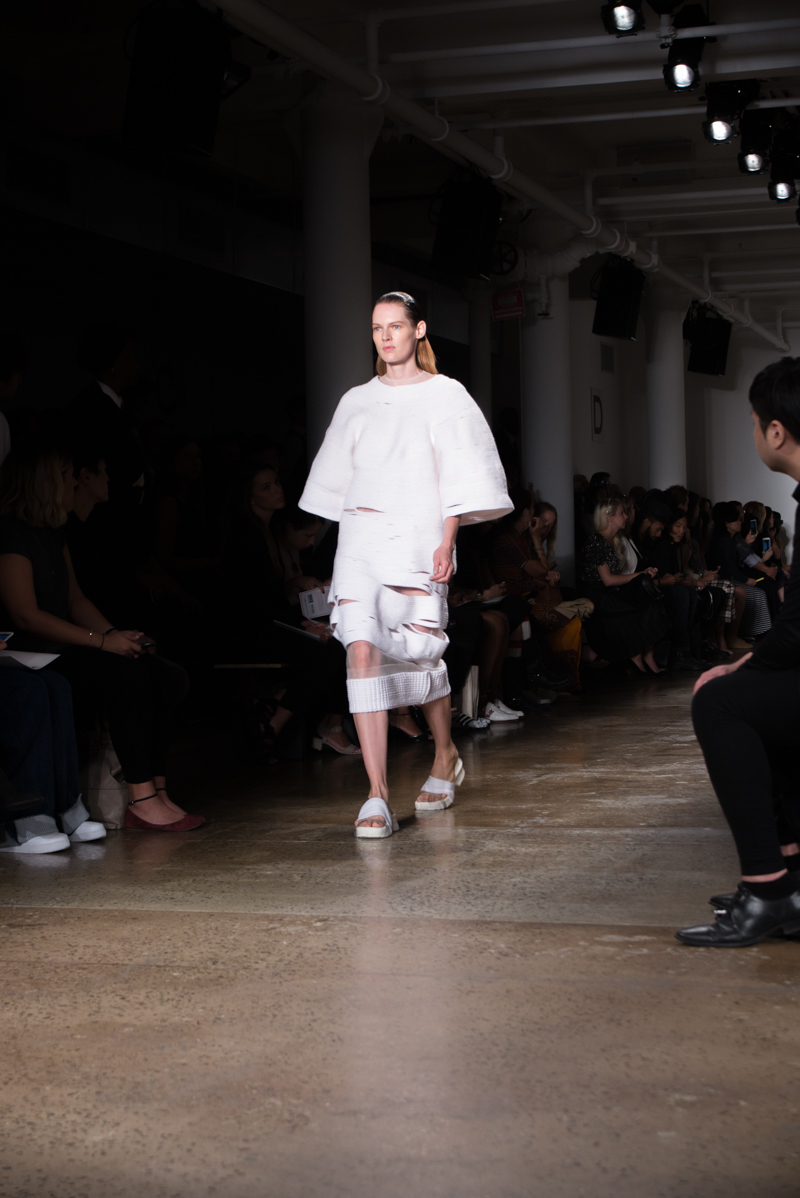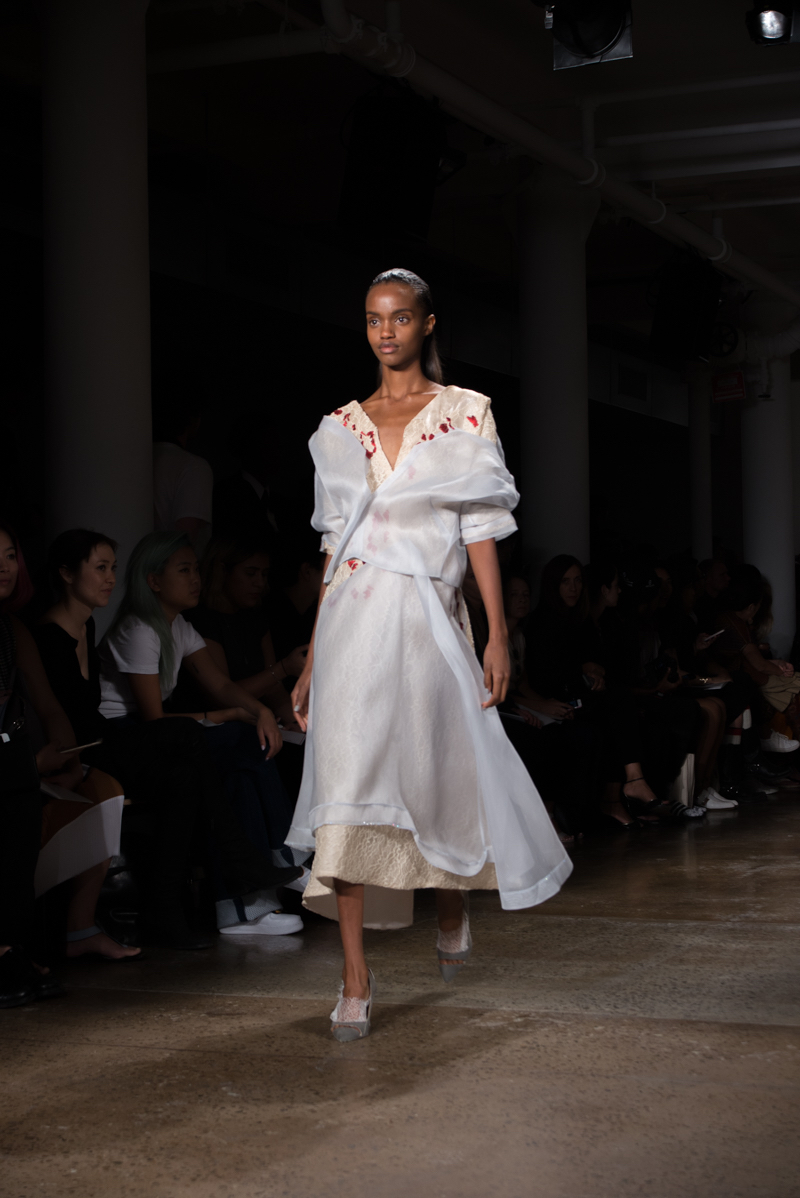 The Parsons MFA program presented an impressive spring/summer 2016 collection at Milk Studio for New York Fashion Week. The designers presented work from across the style spectrum, from oversized puffy coats to elegant and sheer gowns. Here are our images from the show.