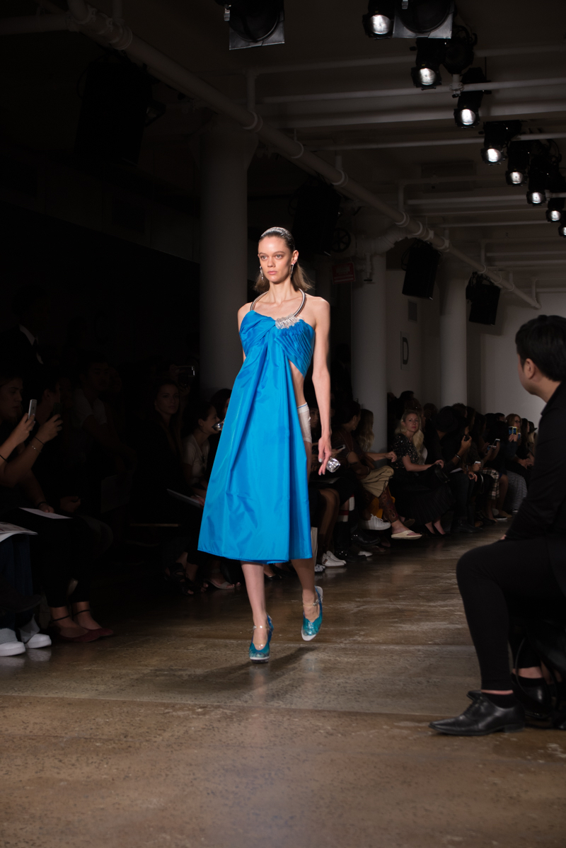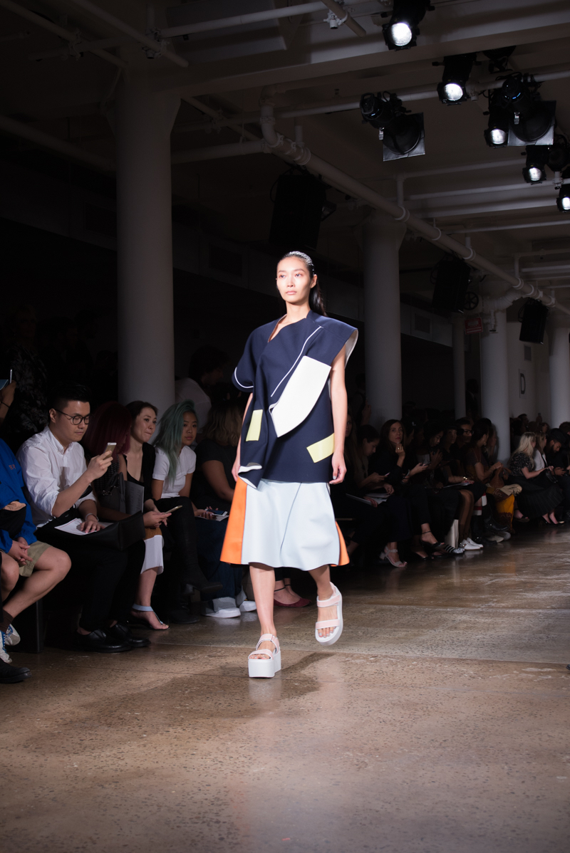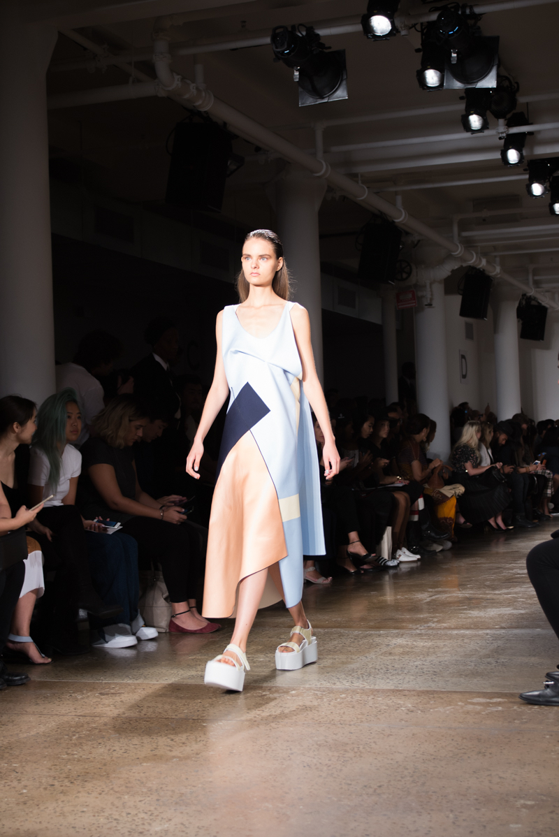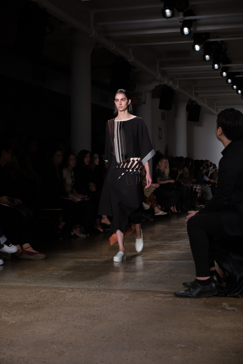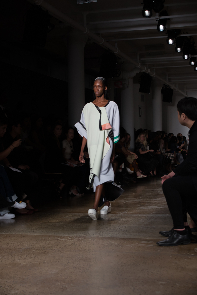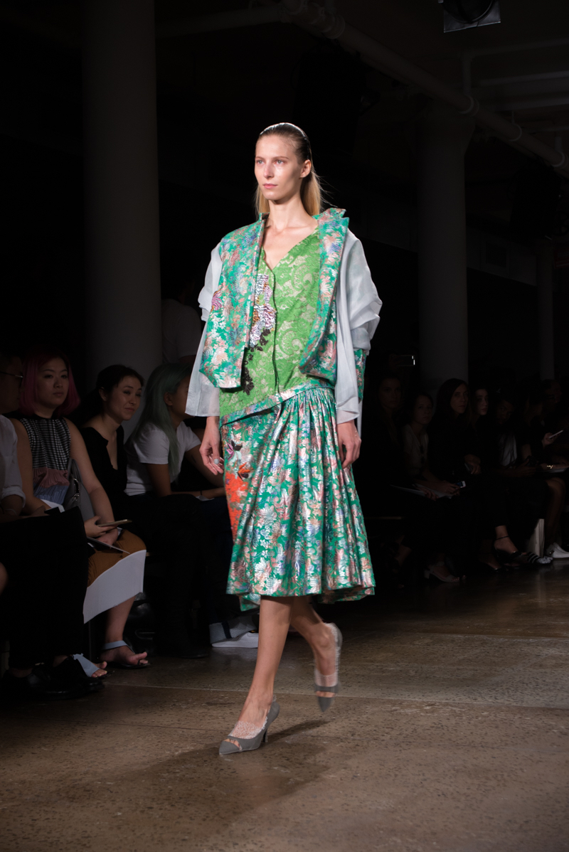 The Parsons MFA program presented an impressive spring/summer 2016 collection at Milk Studio for New York Fashion Week. The designers presented work from across the style spectrum, from oversized puffy coats to elegant and sheer gowns. Here are our images from the show.