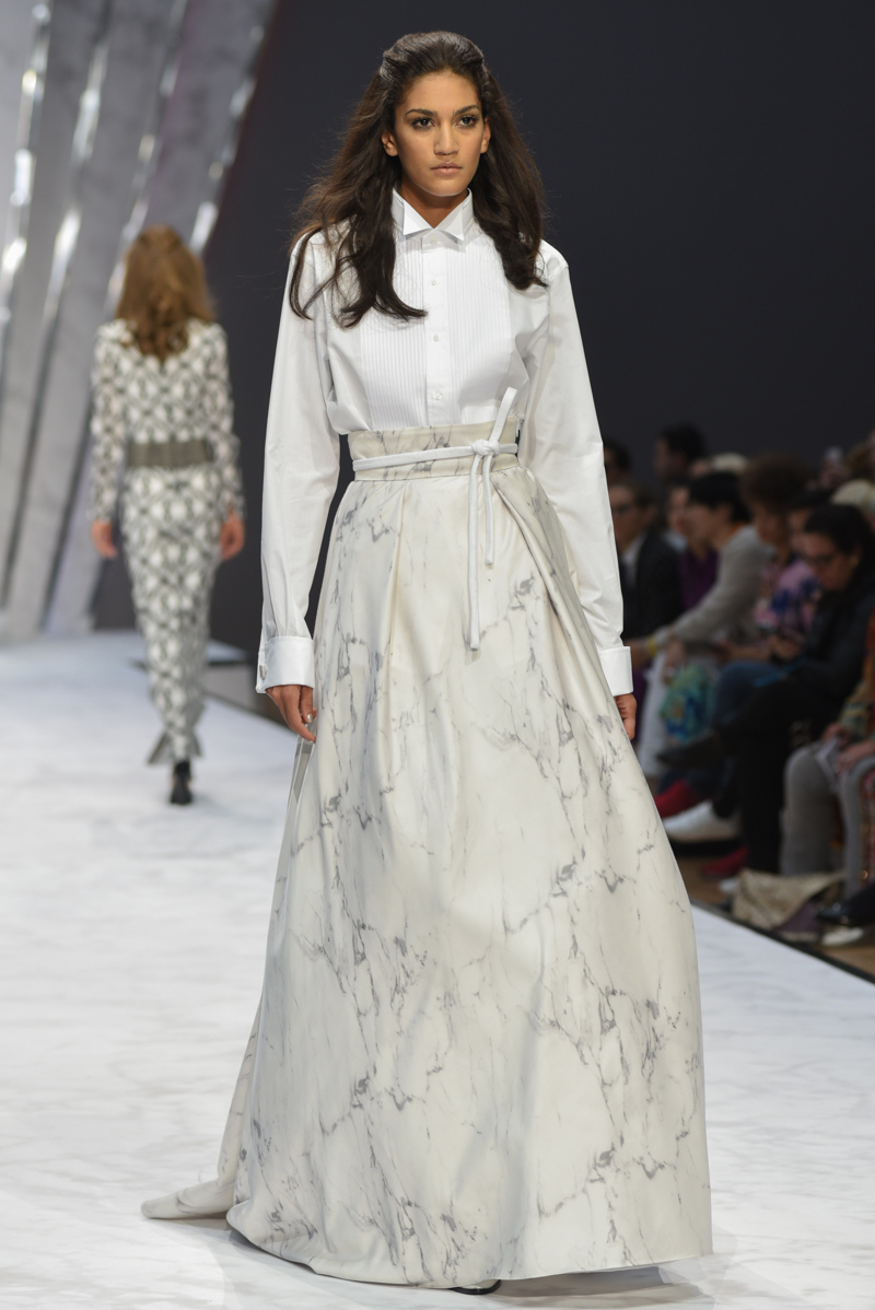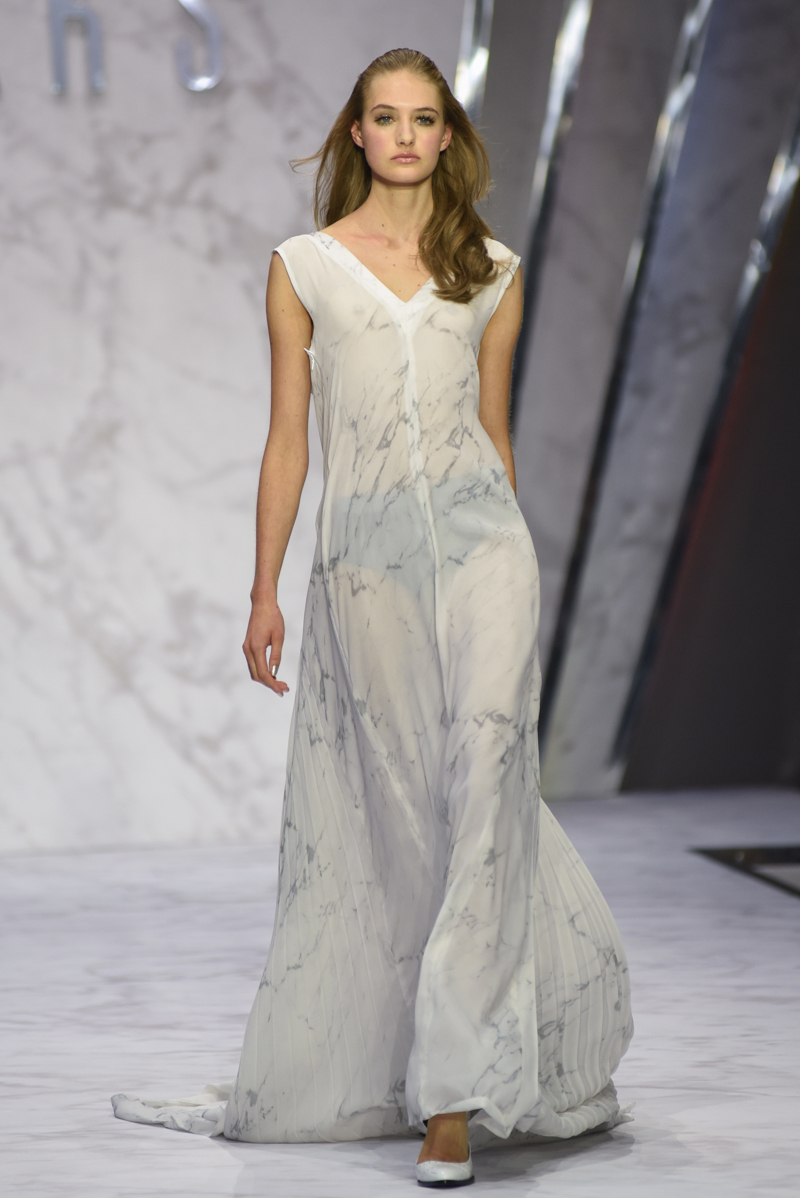 What ensued was an impeccably breezy display of refinement. Inspired by the Art Deco period of the 1920s and 1930s, the marble print was to become the shows leitmotif, appearing on dresses and separates made from chiffon, georgette and cotton.