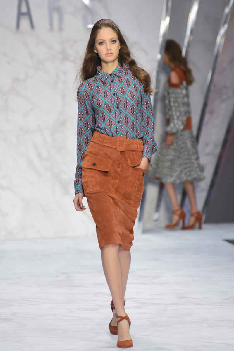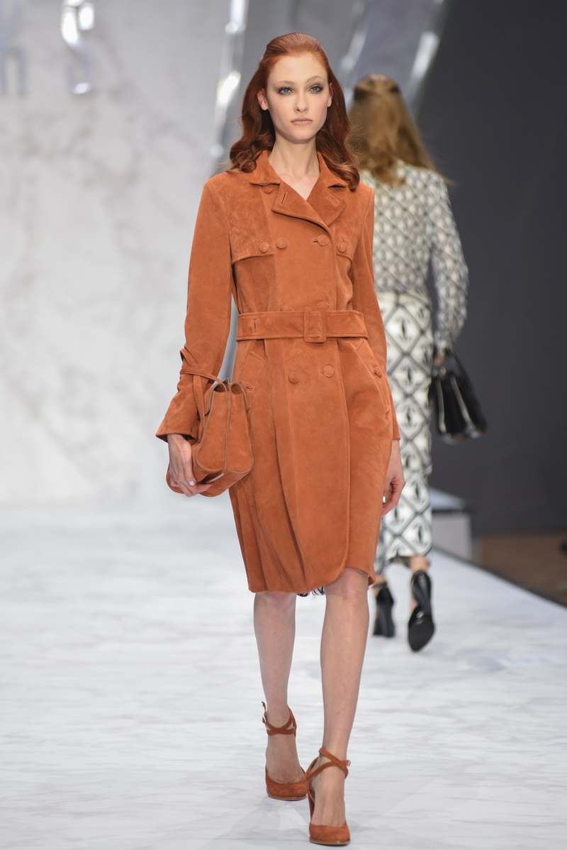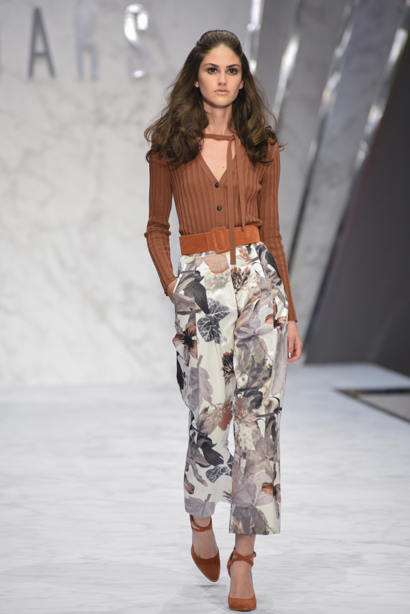 Elsewhere, the prints took on a slightly more organic look, with superimposed flowers and leaves in varying shades of brown and rust. Thanks to the lightweight, airy materials, silhouettes were soft and flowing throughout, giving the impression of femininity whilst retaining in the tailoring the masculine aesthetic for which Daks is well known.