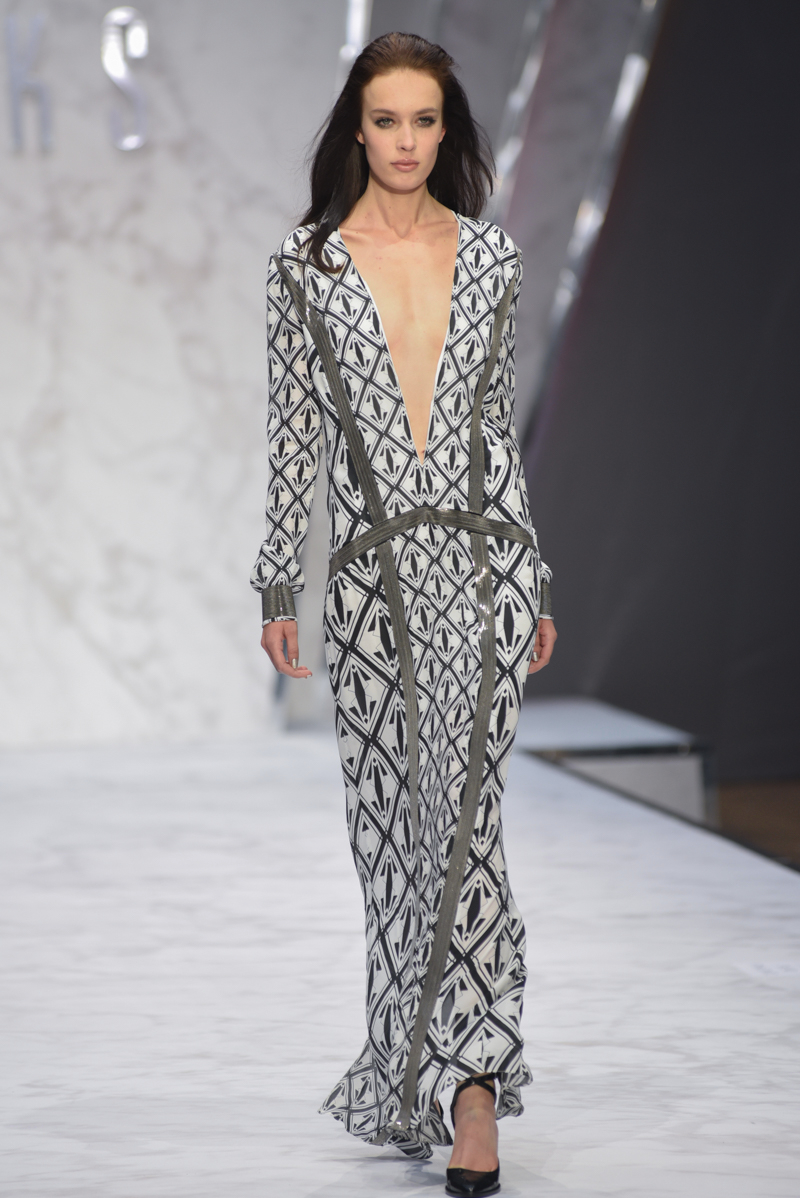 Situated in the impossibly elegant surroundings of Lindley Hall within the London Horticultural Halls, Daks cool grey marble catwalk mirrored the elegant design of the show invite. As if all this, combined with the geometric backdrop bearing the instantly recognisable Daks logo wasn’t enough of a clue, the name of the show spelled it out: The Art Deco Collection.