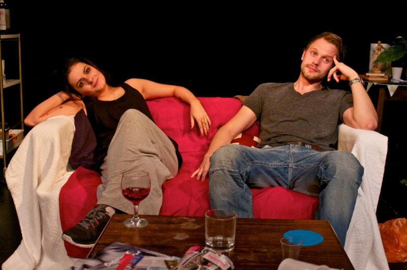 Sat in front of a typical early twenty-something’s living room after a Saturday night (scattered tinnies, wine bottles, and half-filled bin bags), the audience soon learns that Maria leads an average life working in PR, having a good time on weekends. Andy, a small-time stand-up comedian, can’t think of anything worse and sets about picking apart the monotony of Maria’s (and the audience’s) life.