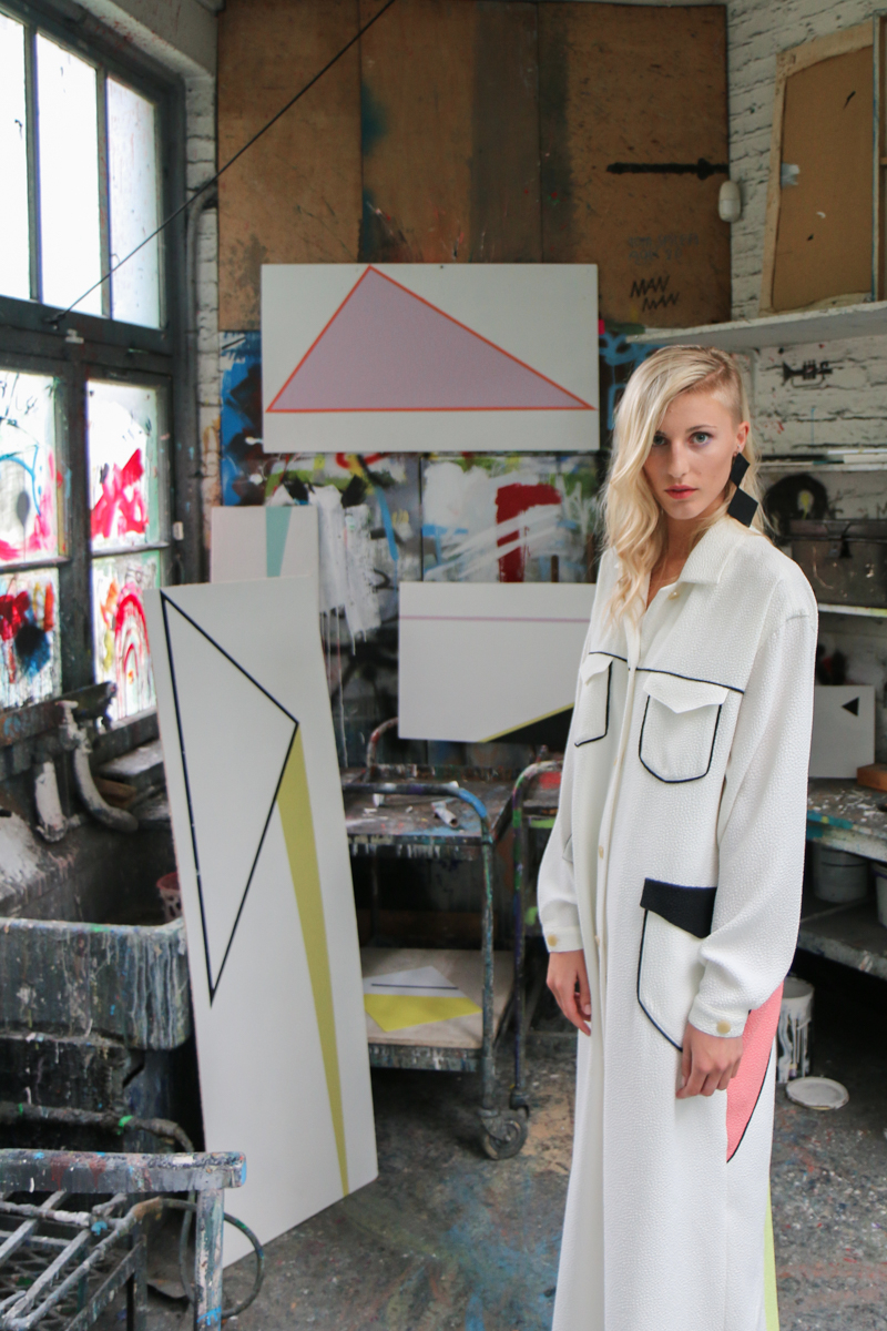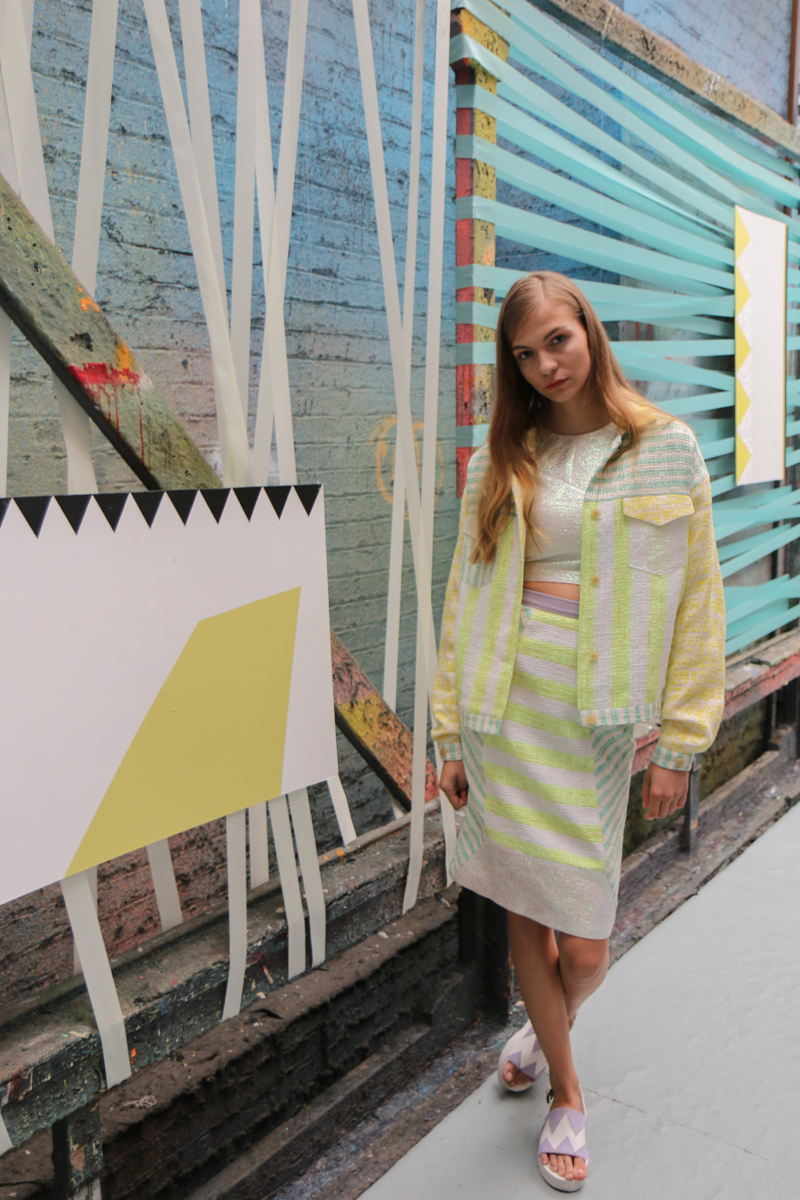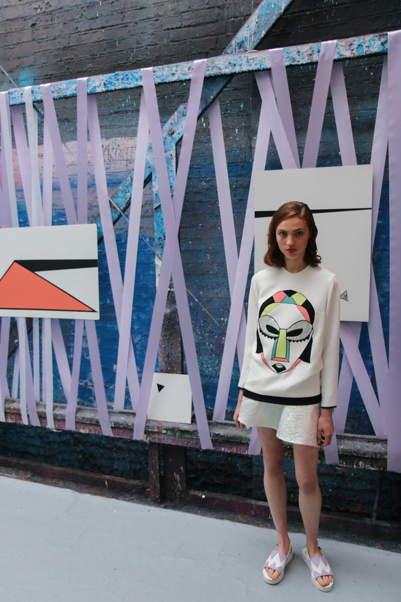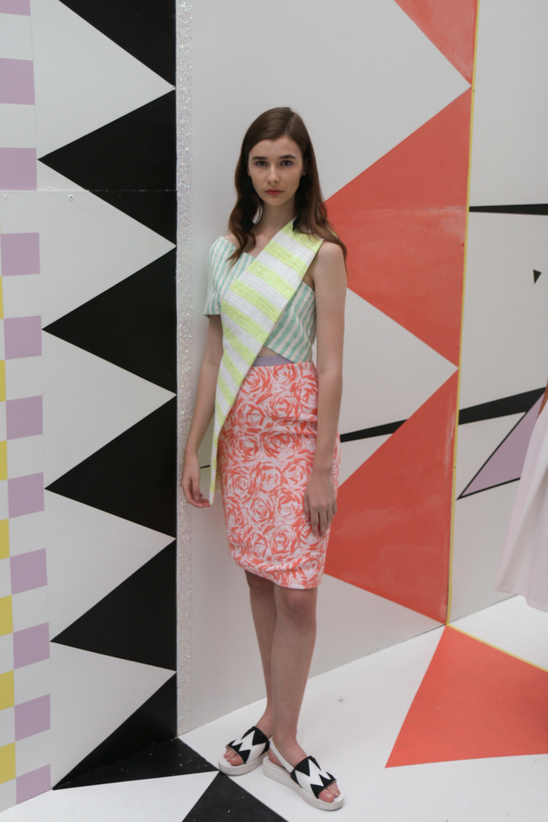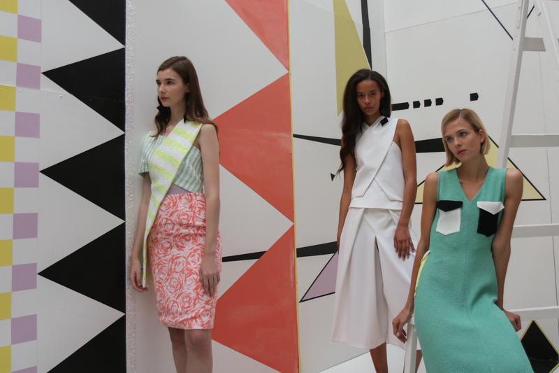 Edeline Lee presented a colourful and geometric themed spring/summer 2016 collection at Elms Lesters Painting Rooms for London Fashion Week. The new looks were clean cut and smooth with various triangular shapes filled in with pastel colours. Here are our images from the show.