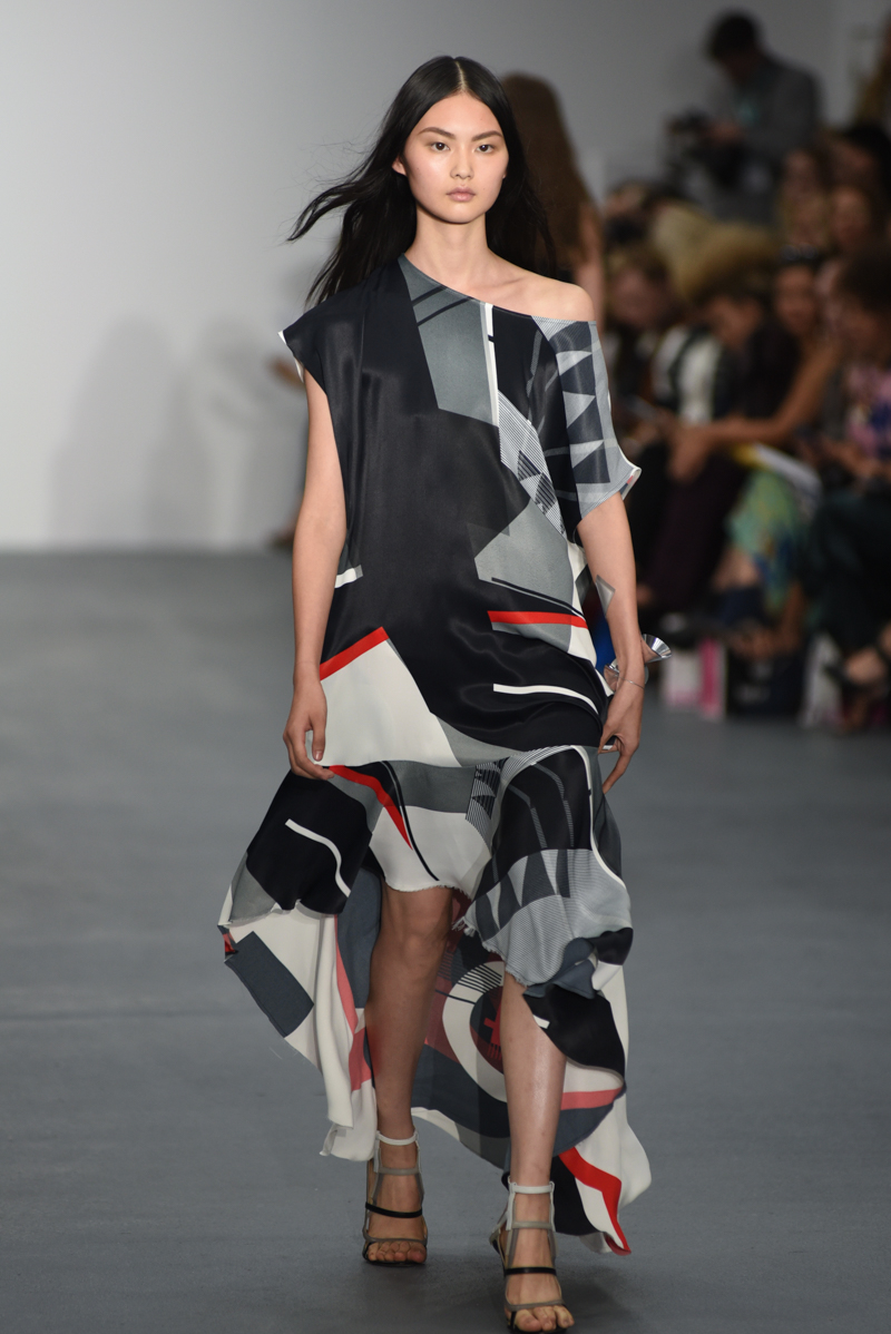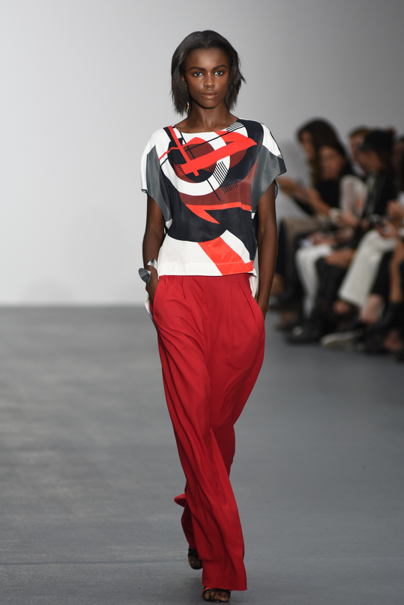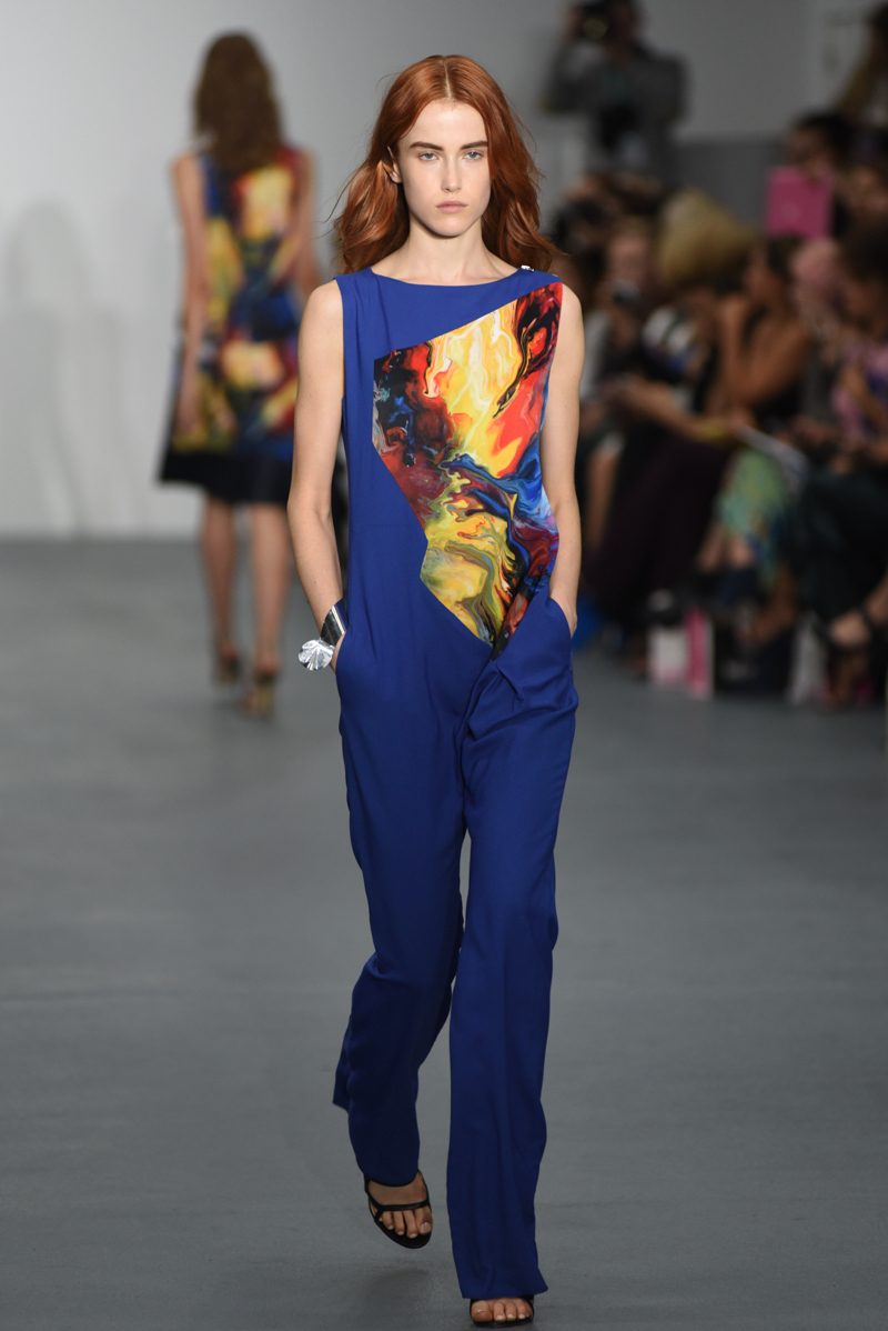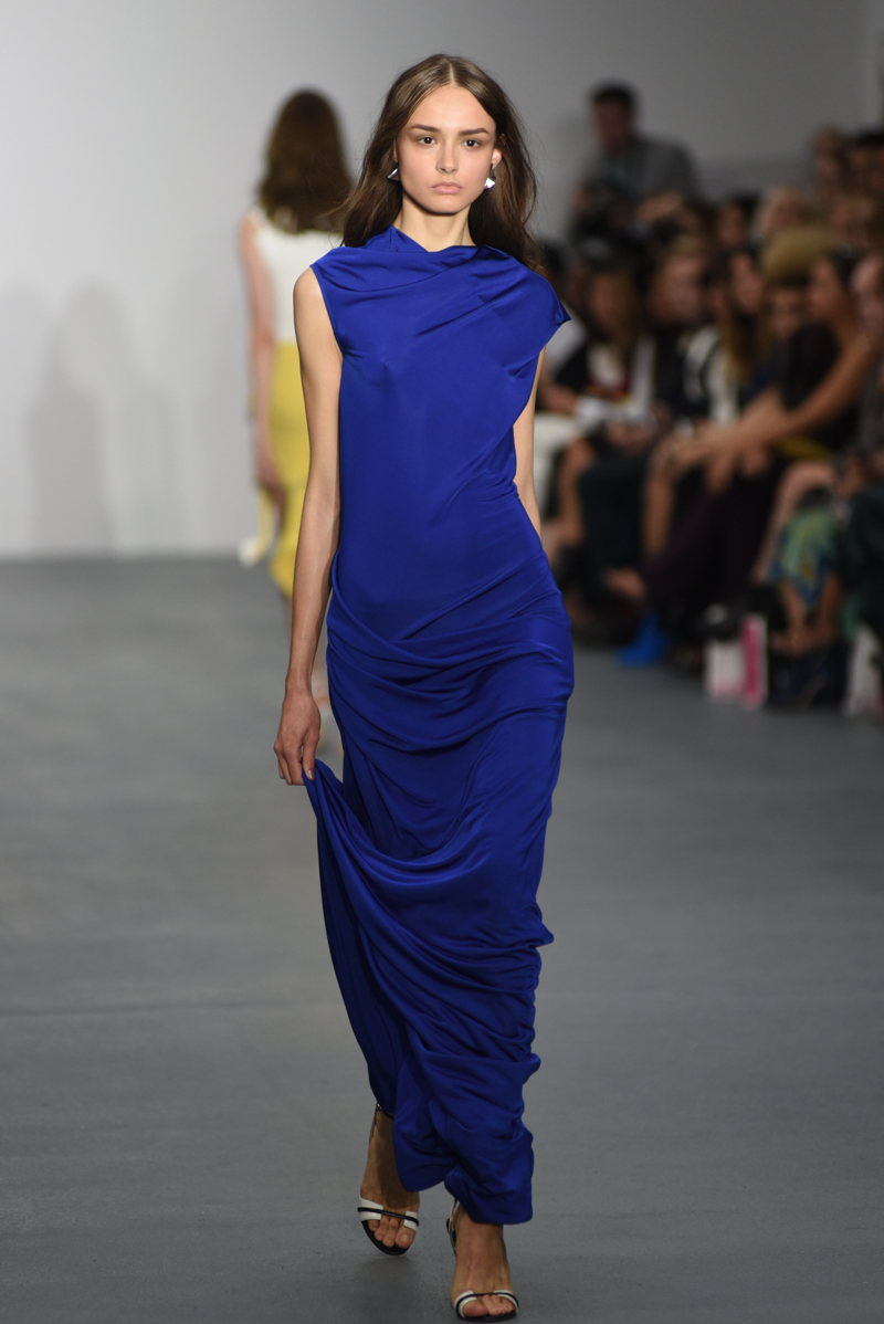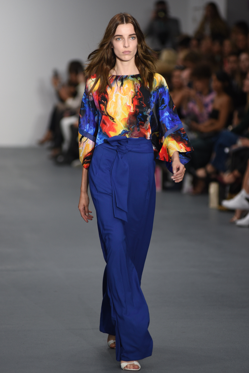 Jean-Pierre Braganza presented an elegant spring/summer 2016 collection at BFC Show Space for London Fashion Week. The new looks were painted with striking blues, reds and yellows. The material itself seemingly weightless on the models. Here are our images from the show.