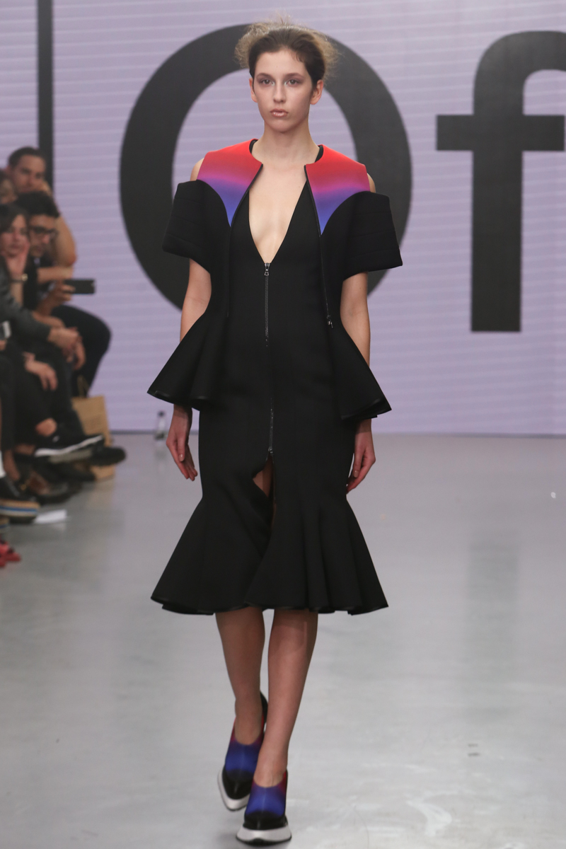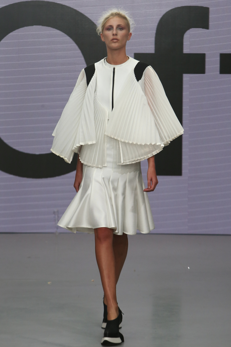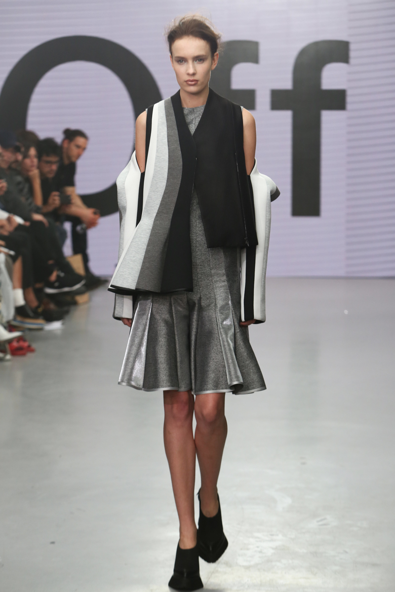 On/Off Show presented a stunning spring/summer 2016 collection at The Vinyl Factory for London Fashion Week. The new looks were silky and sleek utilising shiny, metallic material and bright colours to create a statement. Here are our images from the show.