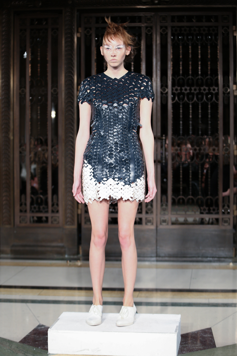 Debuting her SS16 collection entitled Digitalis, Roberts Wood stayed true to her style, incorporating strong fabric manipulation and bold designs. Drawing inspiration from a fascination with nature and science, the new collection draws on strange, dark and unusual aspects of floral and botanical structures.