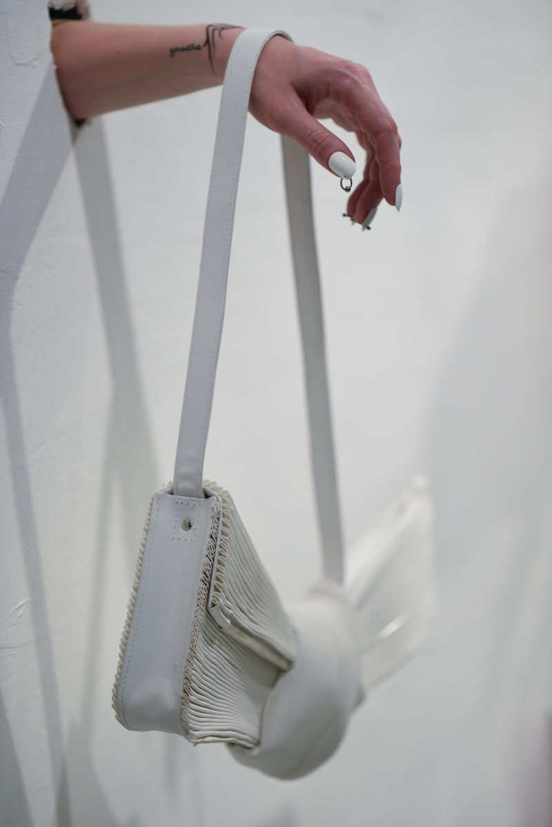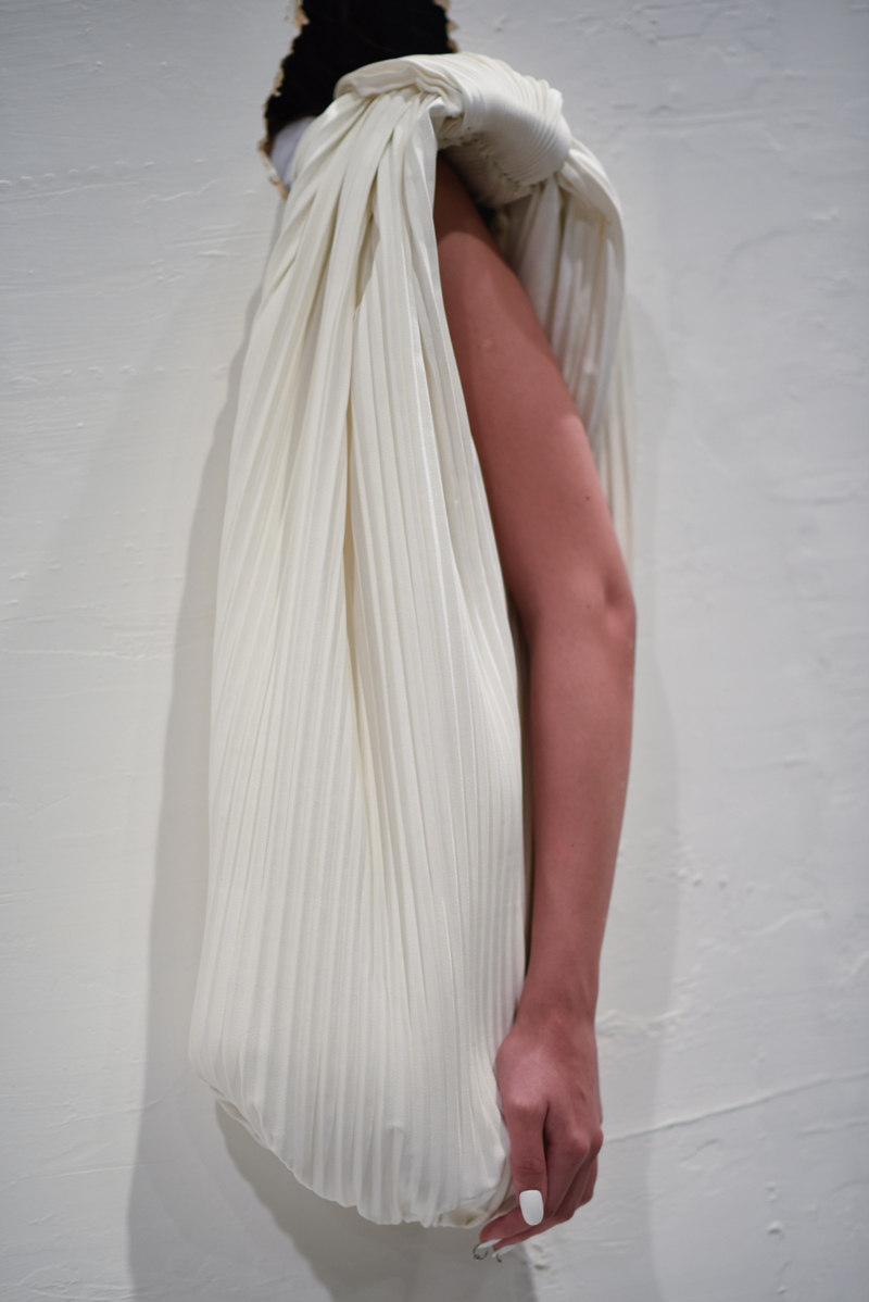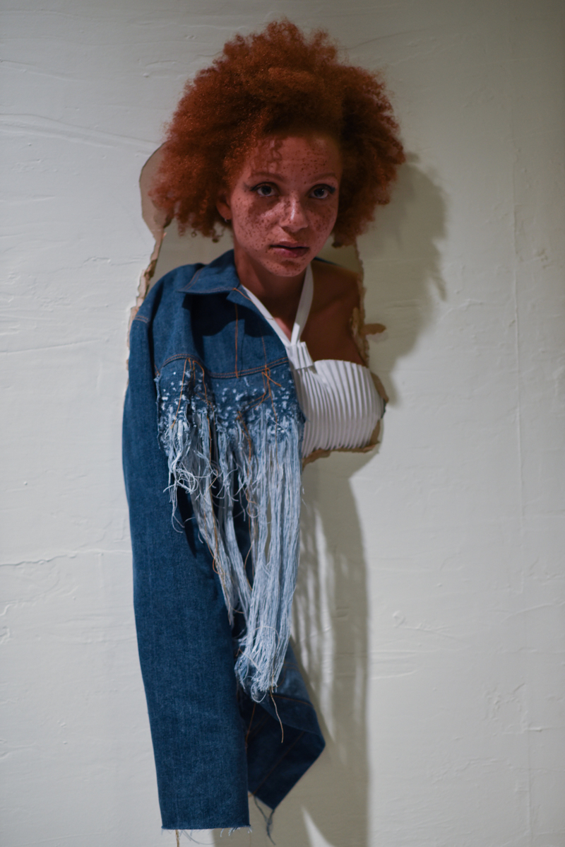 Always designing with sustainability and the eco-friendly in mind, this idea of making something magical from the everyday was inspired by a video that Steinmetz saw on YouTube, detailing teenagers’ Primark spending sprees. It is that “everything is disposable” idea (she recalls one girl holding up a dress and declaring “I don’t know why I bought this, I don’t think I’ll ever wear it!”) that Steinmetz seeks to turn on its head – a tourniquet on the arterial gush of mindless overspending, if you will.