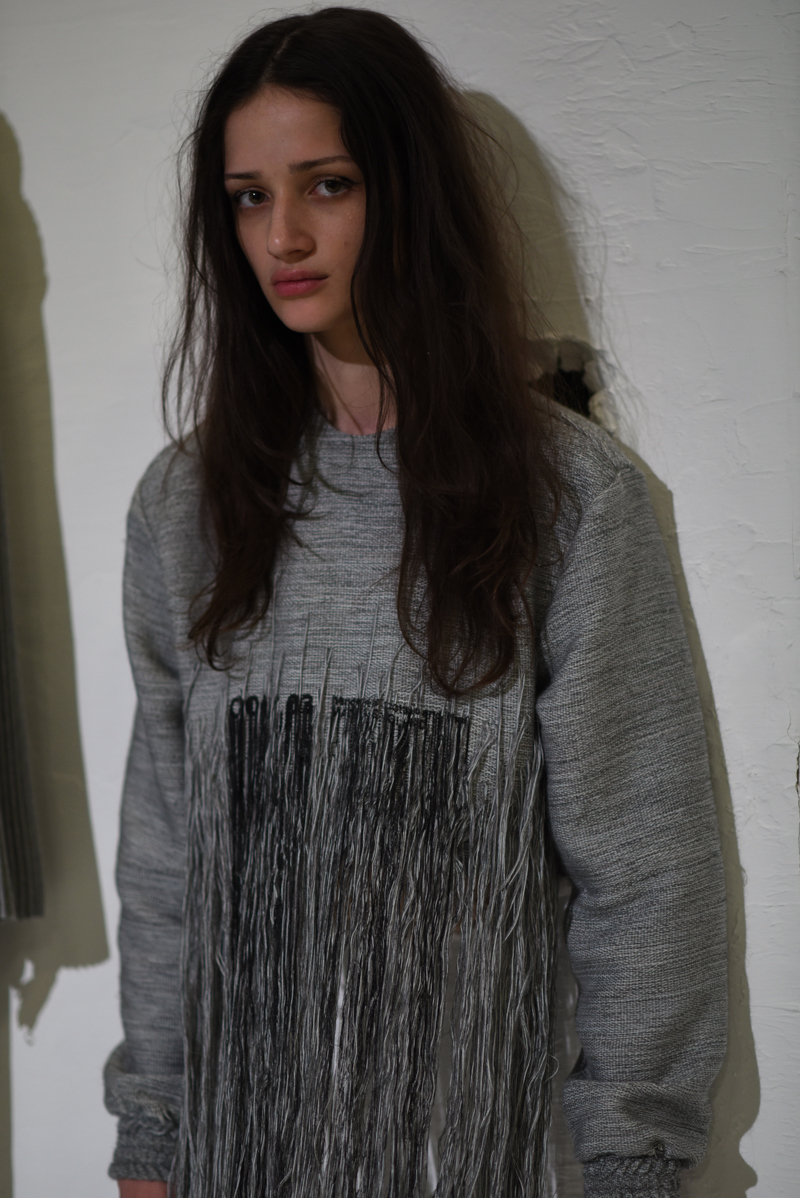 Anyway, let’s not let our imaginations run away with us. The deconstructed nature of Steinmetz’s presentation at the Institute of Contemporary Art today was undeniably apt, given that it’s an aesthetic that is ingrained in her brand DNA. Her starting point was denim – she weaves her label’s jeans from scratch, with each pair taking 100 hours to make – and her collections now can only be described as artisan, with handwoven fabrics, couture-like precision and intricate 3D embroidery transforming everyday pieces like jeans, a polo top, tracksuit or sweatshirt into something utterly precious.