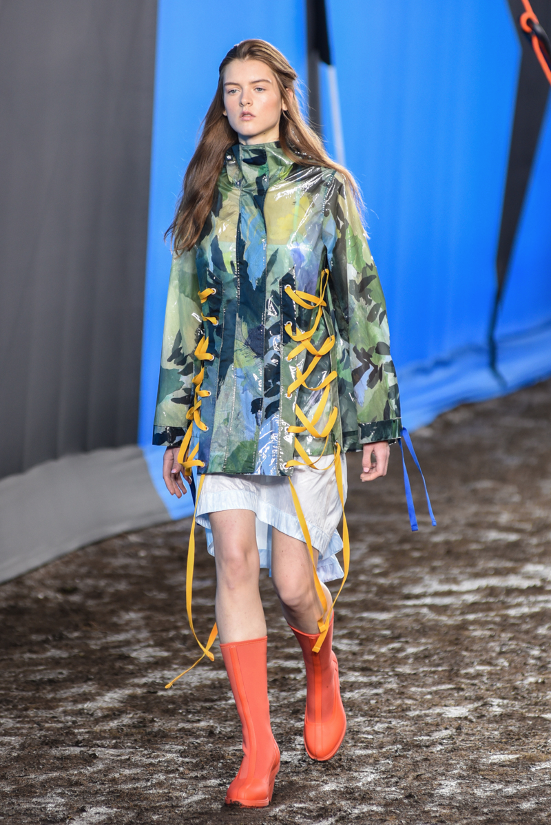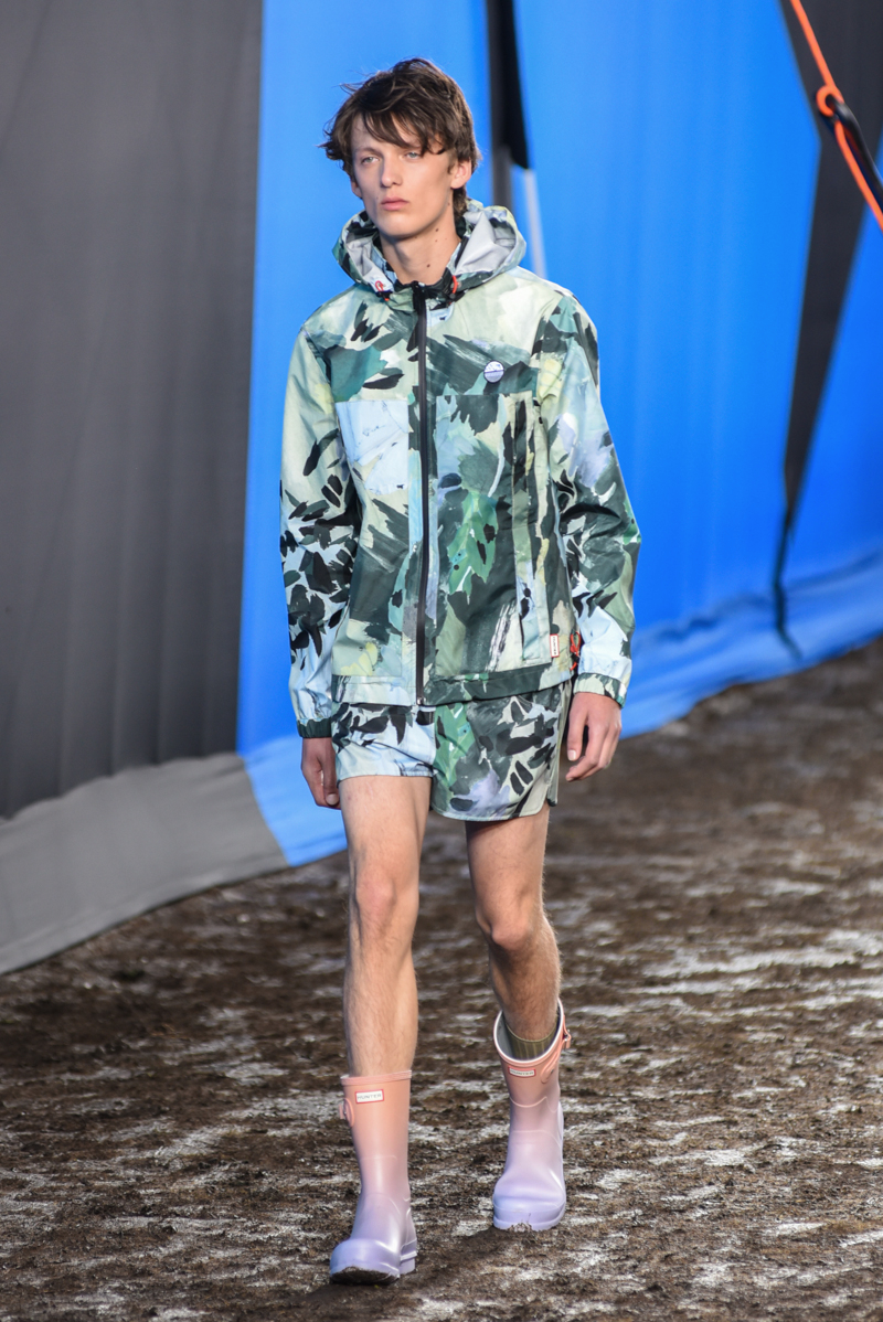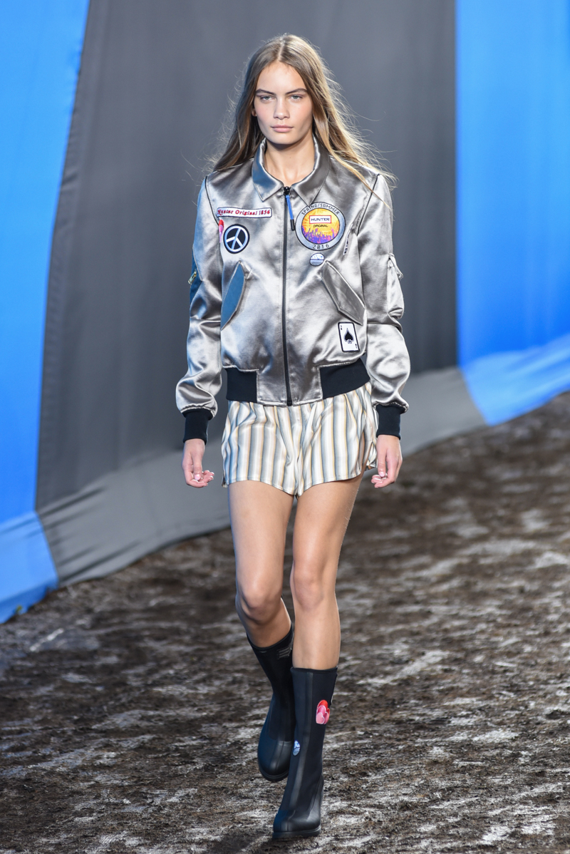 Hunter Original presented a casual spring/summer 2016 collection at Euston Station for London Fashion Week. The new looks were filled with earth tones, raincoat style pieces and waterproof fabrics. Here are our images from the show.
