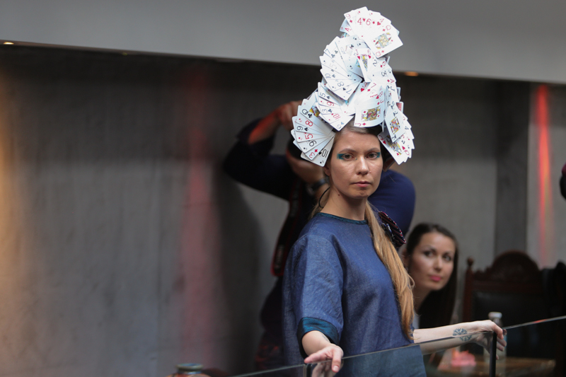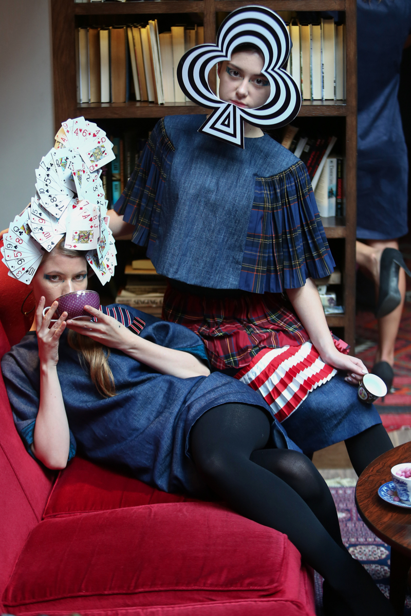 The whimsically glamorous setting of The Library, a private club in Leicester Square, soon proved to be the most perfect setting for Little Shilpa’s incredibly creative, thought-provoking S/S 2016 collection. Entitled The Madness of Muchness, the show dragged you down the rabbit hole and into a world of elaborate headpieces, intricately-designed dresses and afternoon tea.
