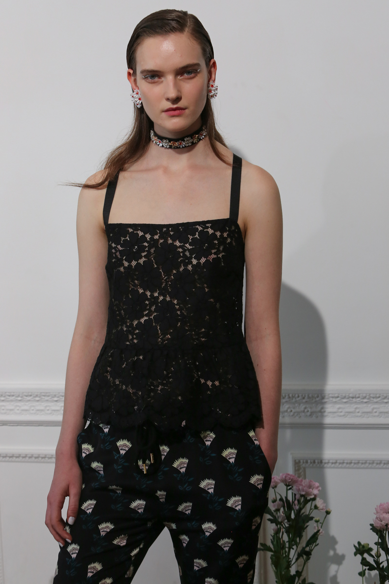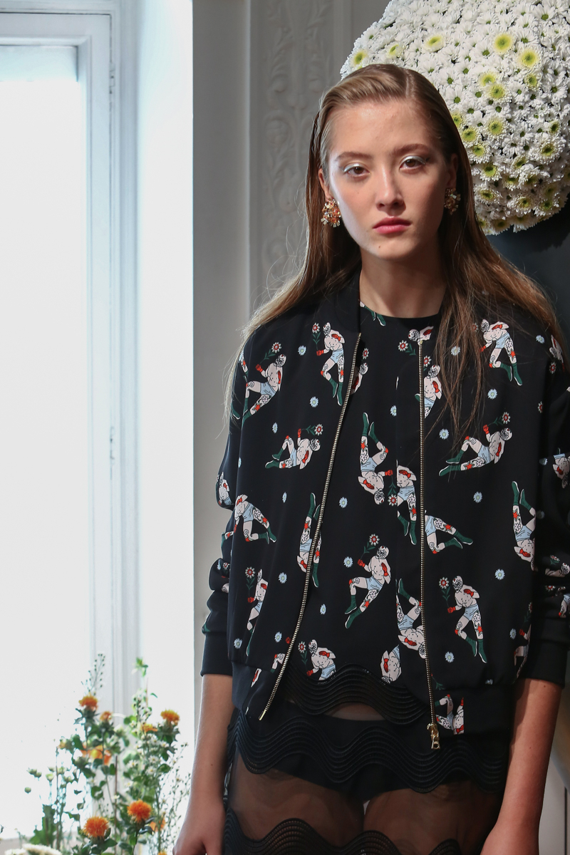 Signature Lupfer traits were instantly visible: lashings of embellishments and geometric prints, emblazoned bomber jackets, dainty party dresses and laidback separates. The palette was mostly monochrome, with doses of powder pink, creating a feminine collection with a humorous and fun dimension.