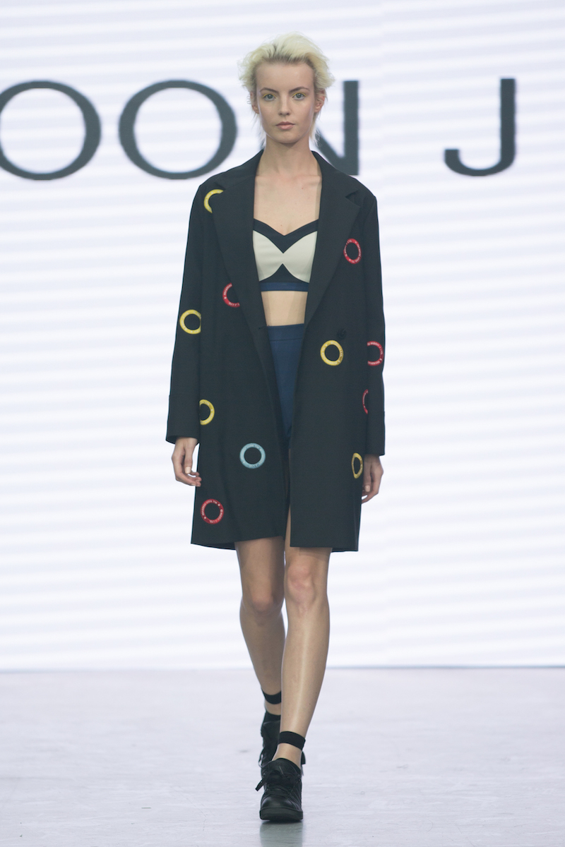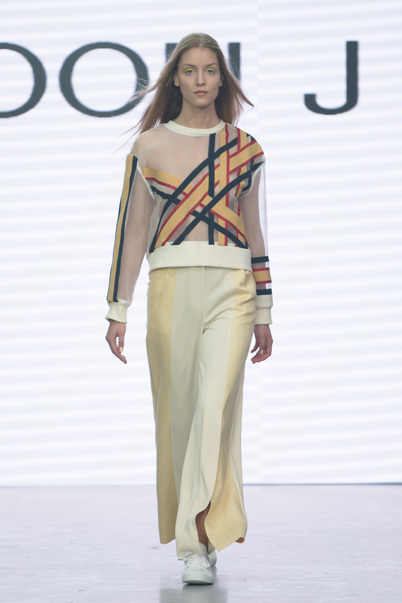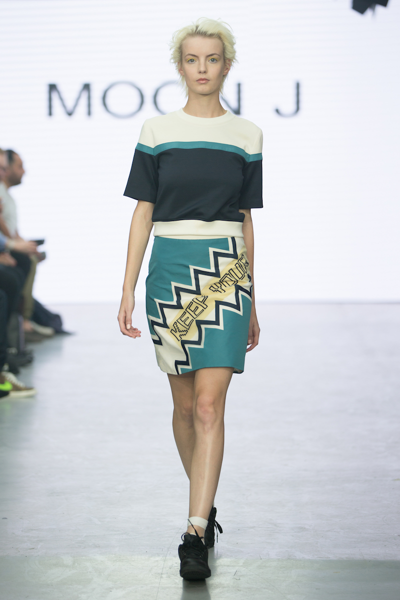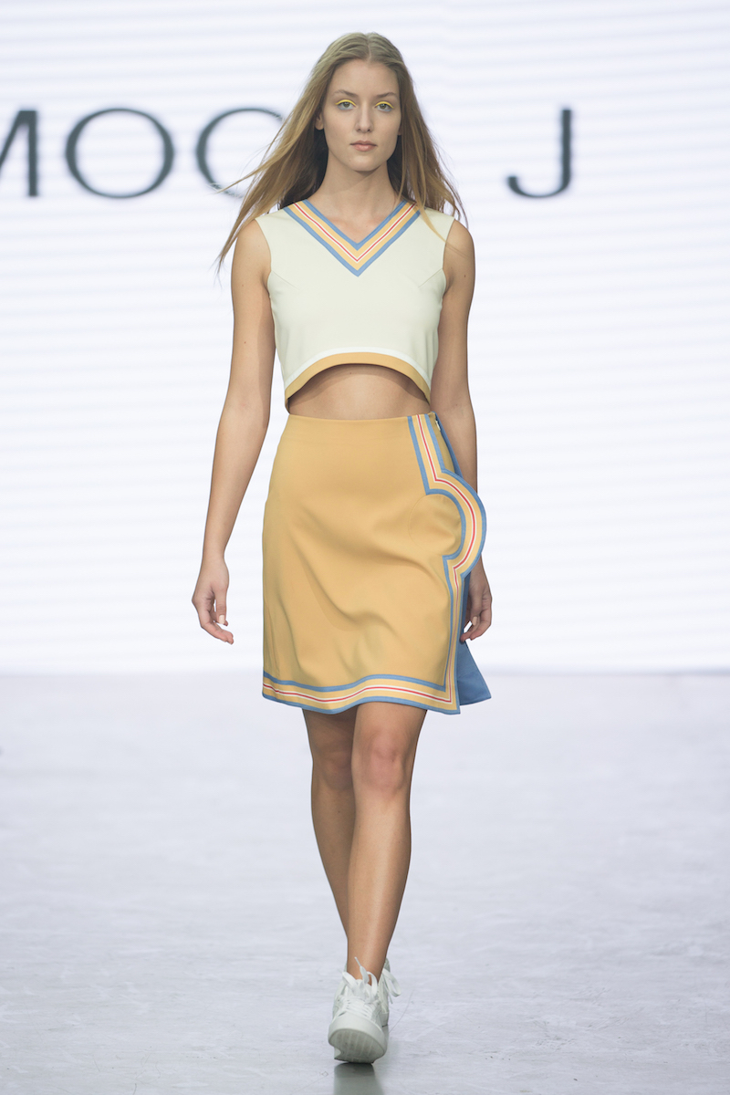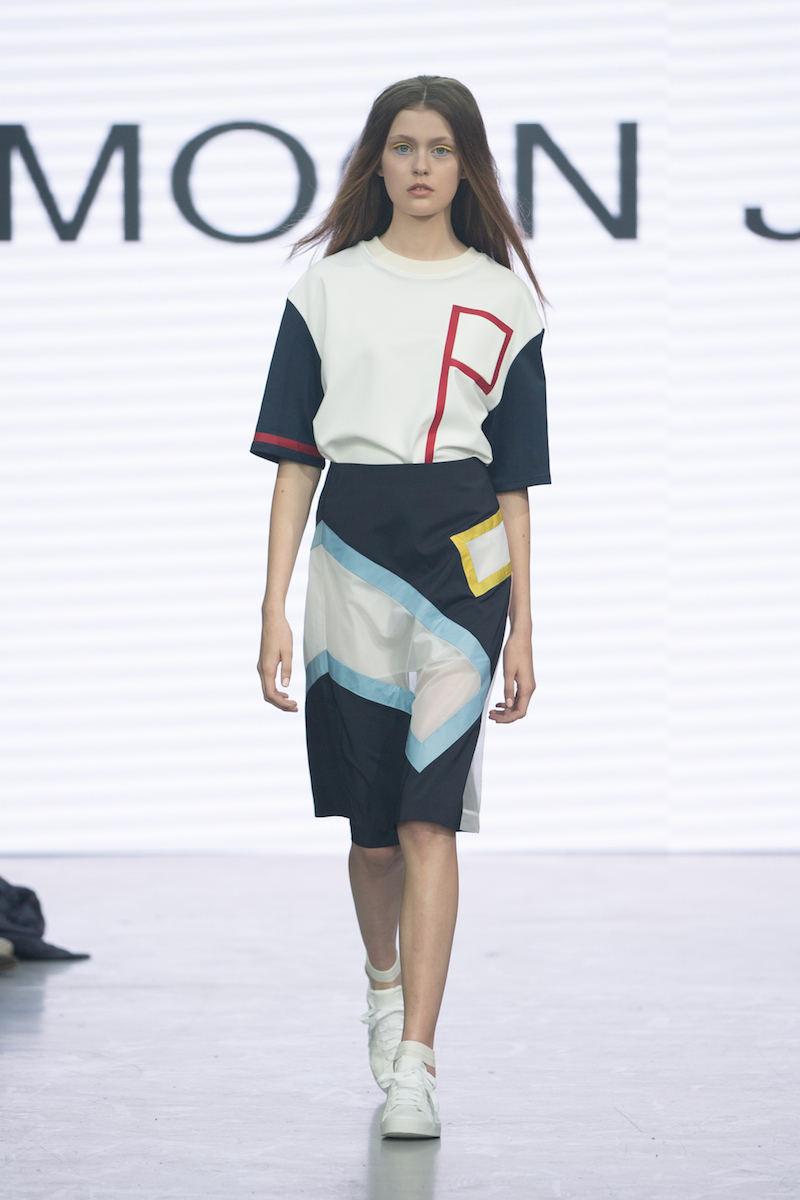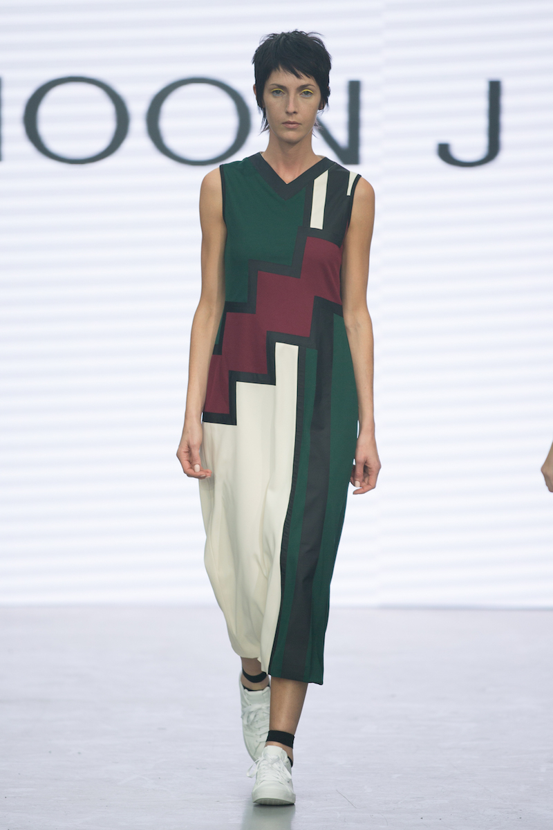 Moon J presented a unique and colourful spring/summer 2016 collection at On|Off the Studio for London Fashion Week. The new looks were filled with colour blocking, prints and stripes. Here are our images from the show.