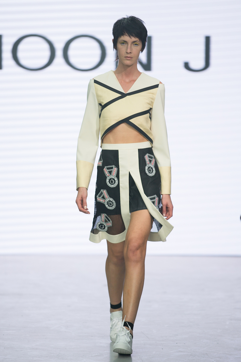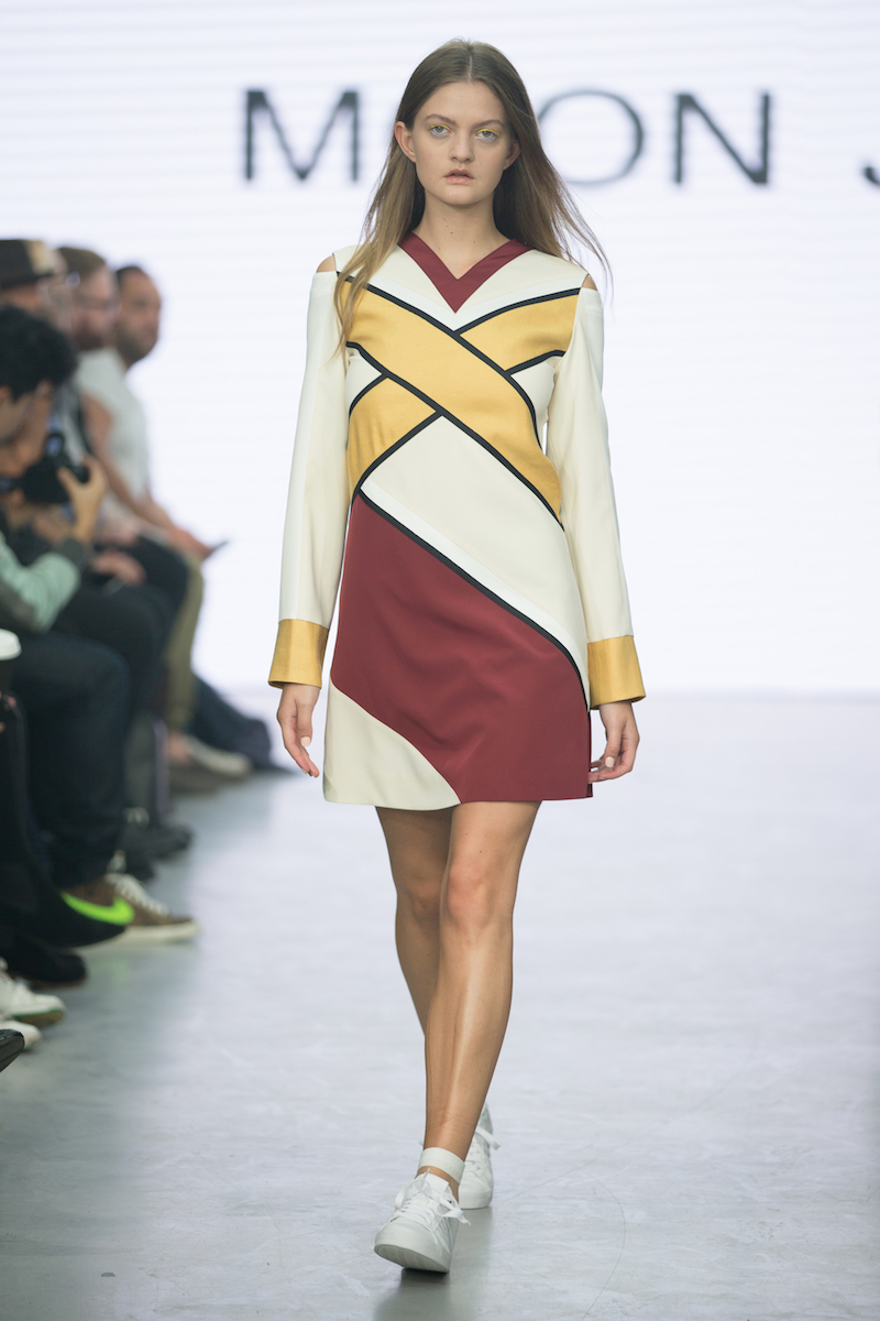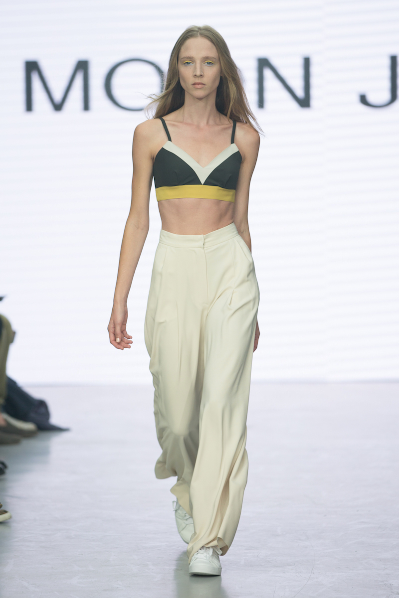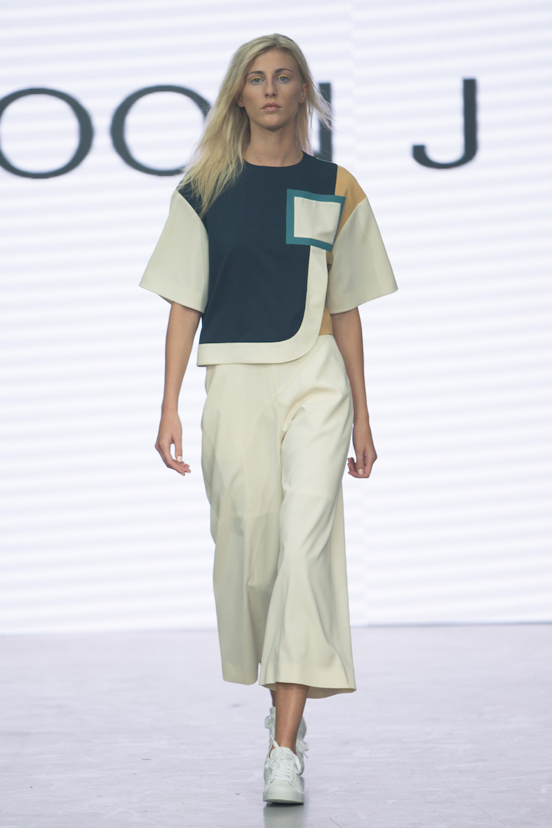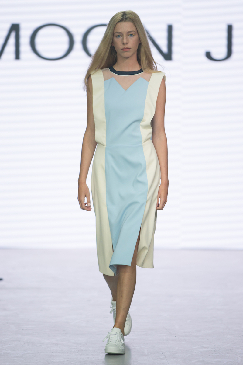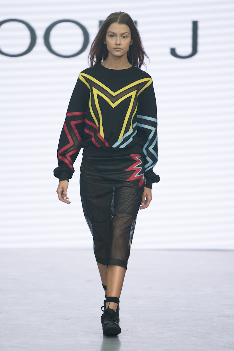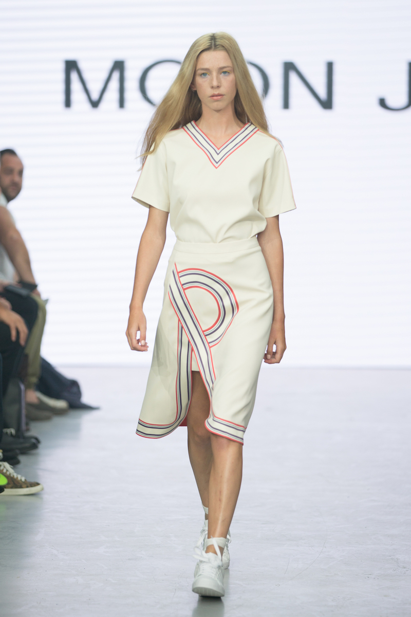 Moon J presented a unique and colourful spring/summer 2016 collection at On|Off the Studio for London Fashion Week. The new looks were filled with colour blocking, prints and stripes. Here are our images from the show.