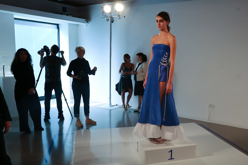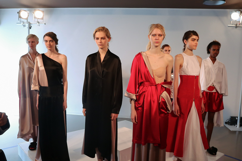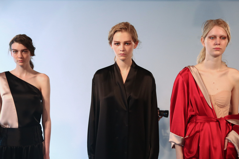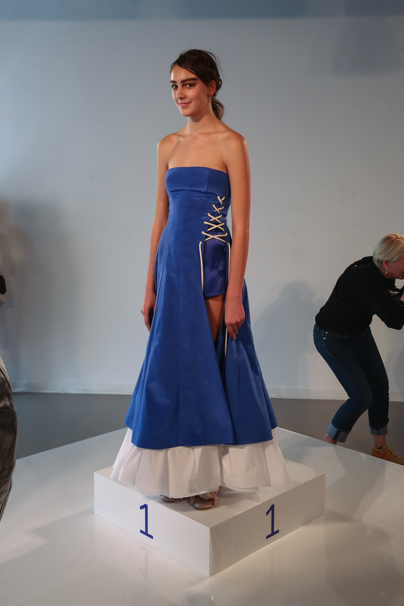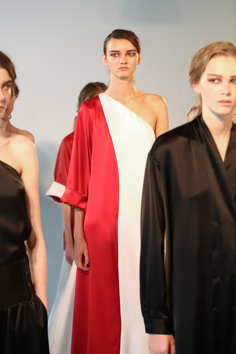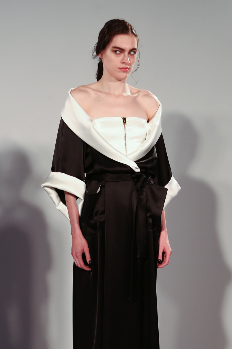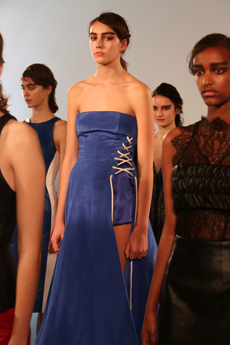 Natasha Zinko presented a elegant spring/summer 2016 collection at Erarta Galleries for London Fashion Week. The new looks were a mix of rich silky creams and blues coupled with a corset style fastening. Here are our images from the show.