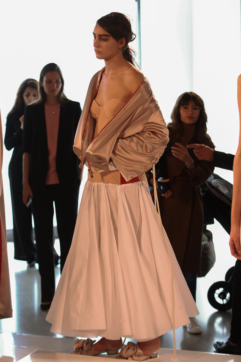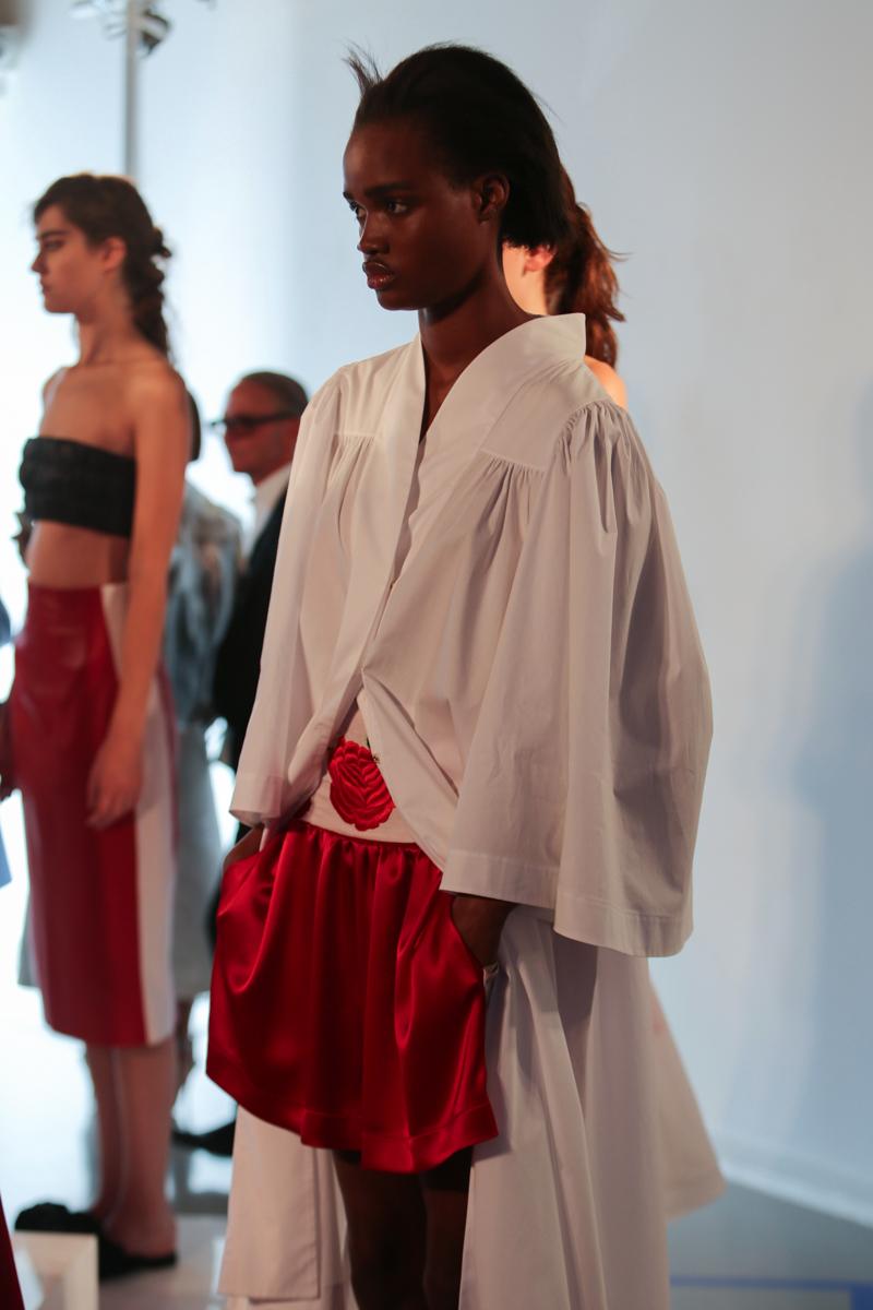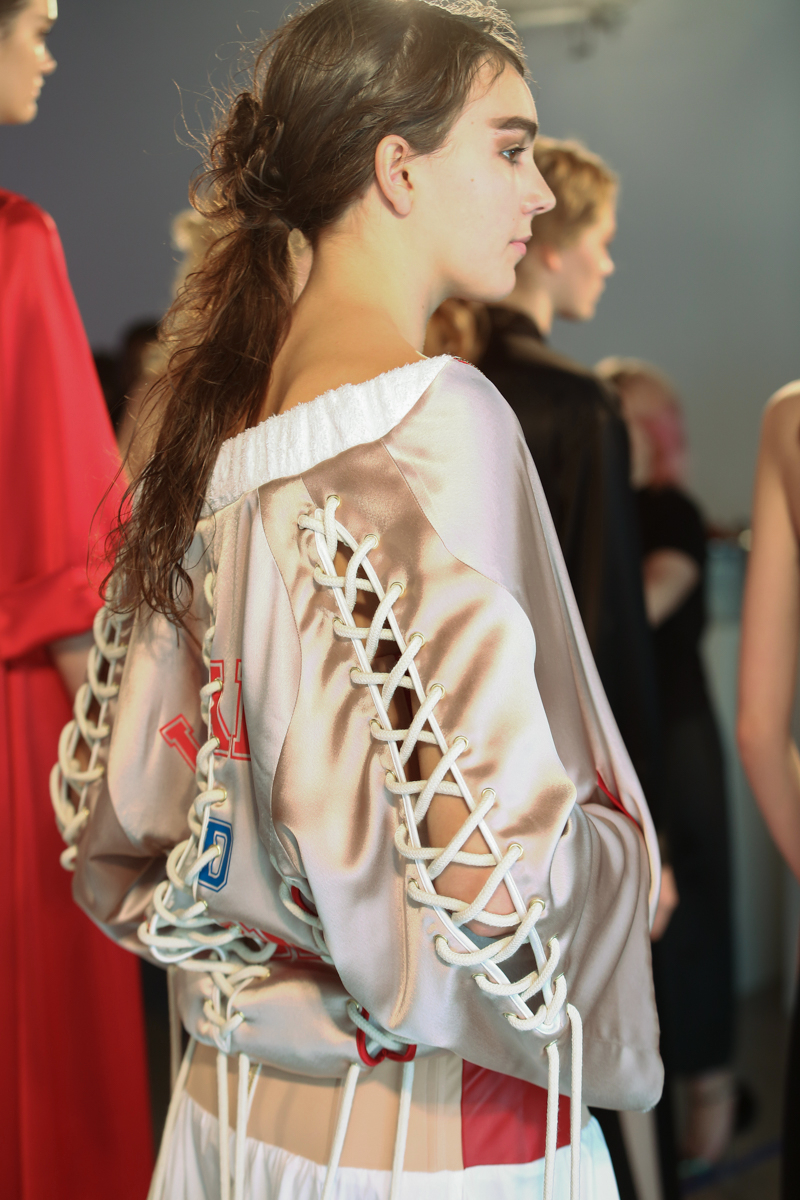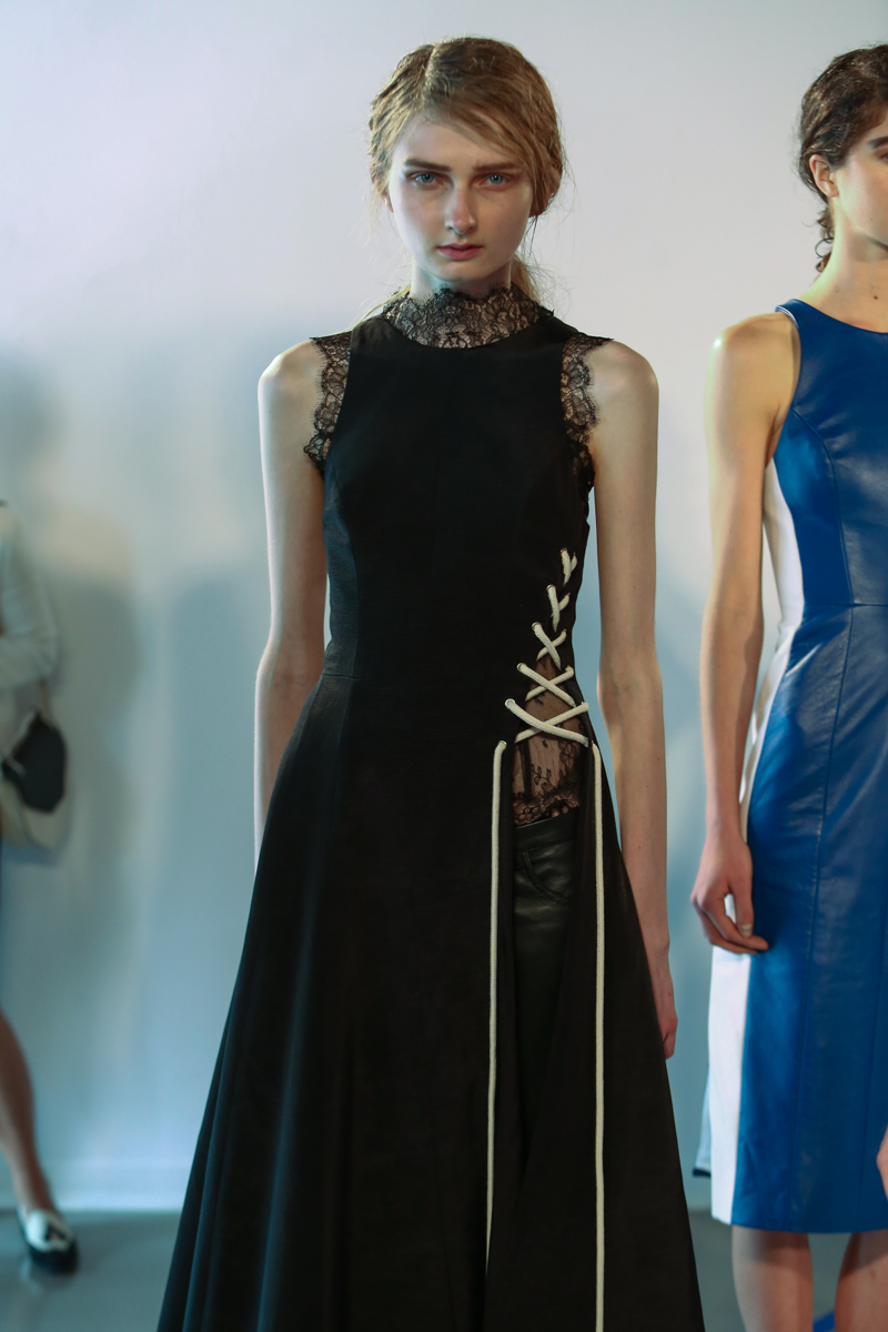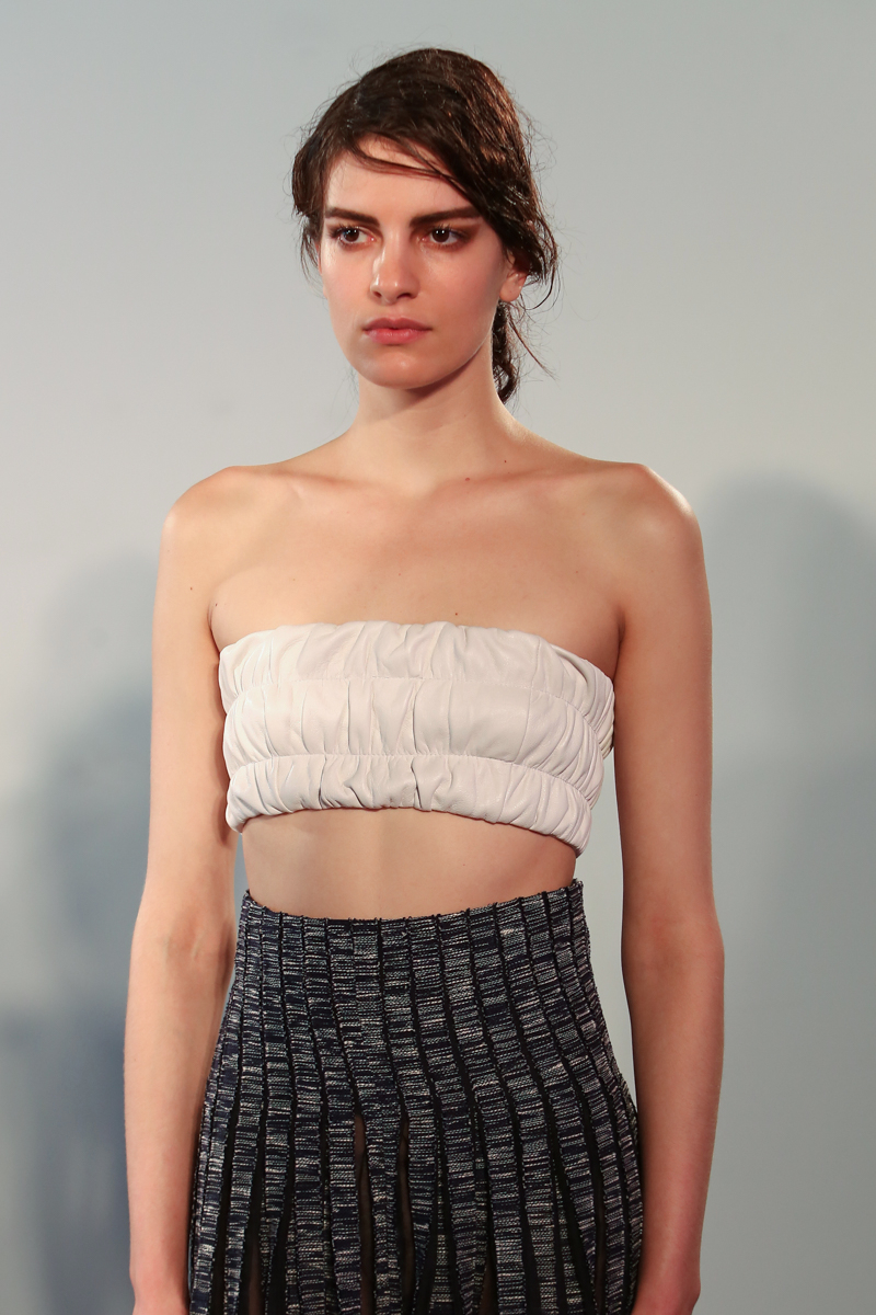 Natasha Zinko presented a elegant spring/summer 2016 collection at Erarta Galleries for London Fashion Week. The new looks were a mix of rich silky creams and blues coupled with a corset style fastening. Here are our images from the show.