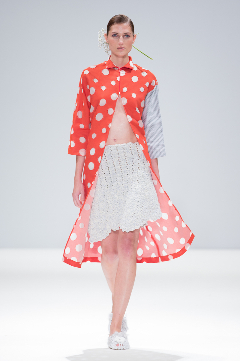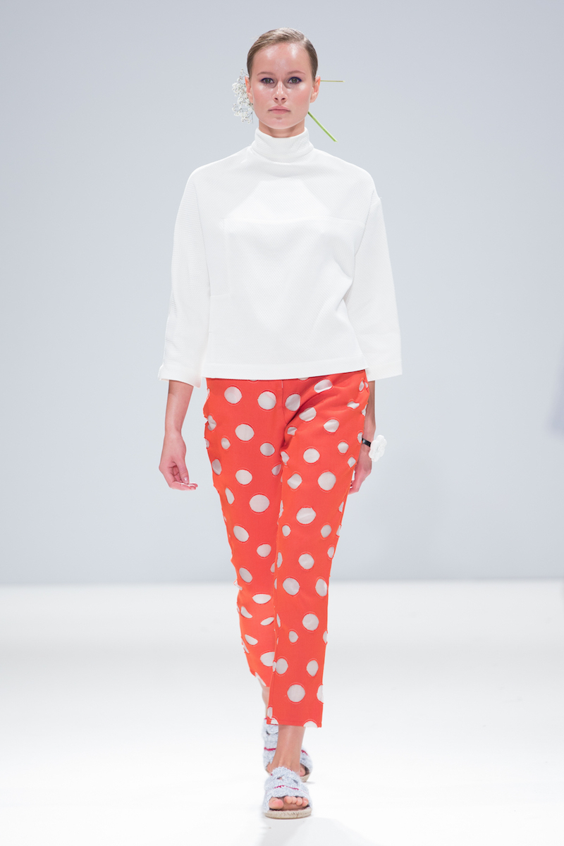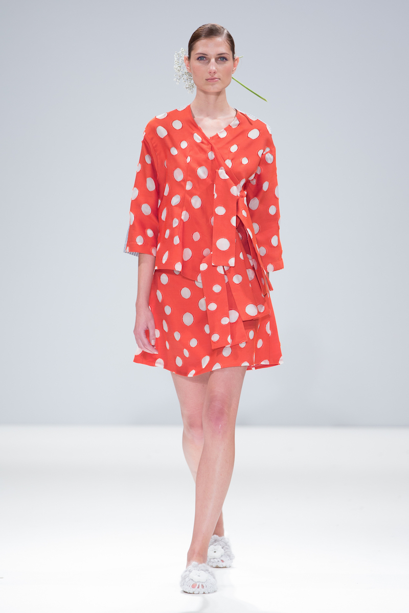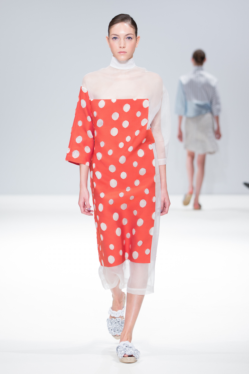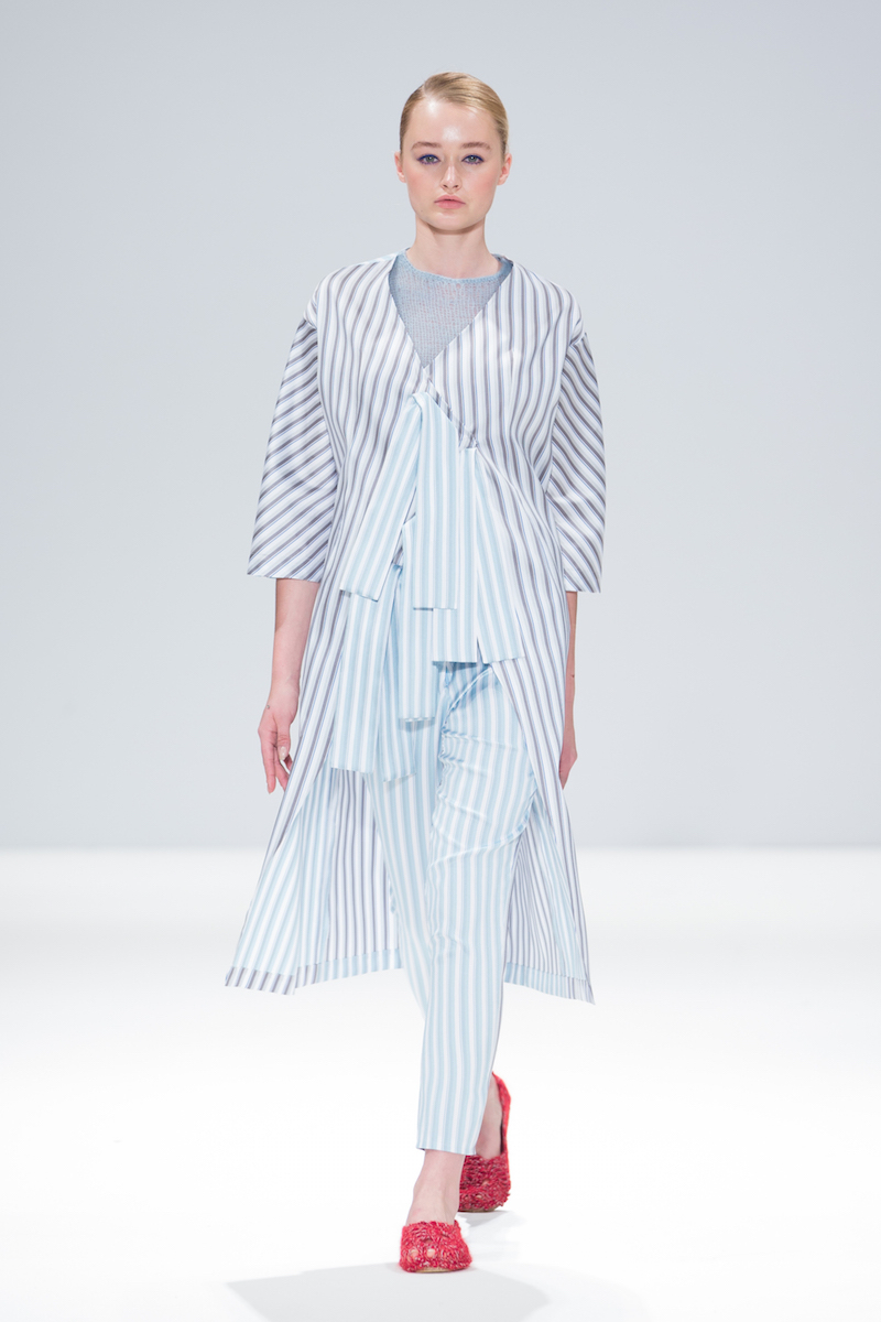 Sabinna presented a bright and pretty spring/summer 2016 collection at Freemasons’ Hall for London Fashion Week. The new looks were filled with pastel colours, charming styles and patterns such as polka-dots and subtle stripes. Here are our images from the show.