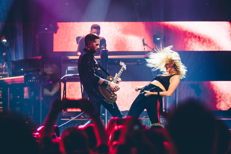 Beyond the sometimes distracting lasers and inventive visuals, her tunes, energetic at heart, meld together in the analogous way pop often does so that it’s hard to tell them apart after a while. Modern concert candles, or mobile phones, rise up for a rare performance of the 2010 cover Your Song. It’s a welcome breather for everyone to sing along to as Goulding cools down standing still in front of an onstage fan next to her trademark drums that she infrequently bashes during more upbeat moments of the set.