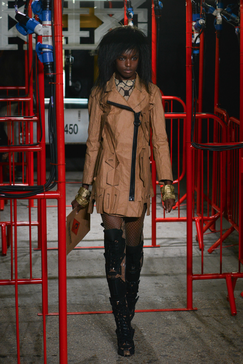 Staged in the Bankside Vaults, home to London’s Pulse nightclub, Paloma Faith and a gaggle of Hackney’s coolest street kids joined forces for the KTZ show. The collection was raw, energetic and anti-fashion with influences ranging from African tribes to 80s punk.