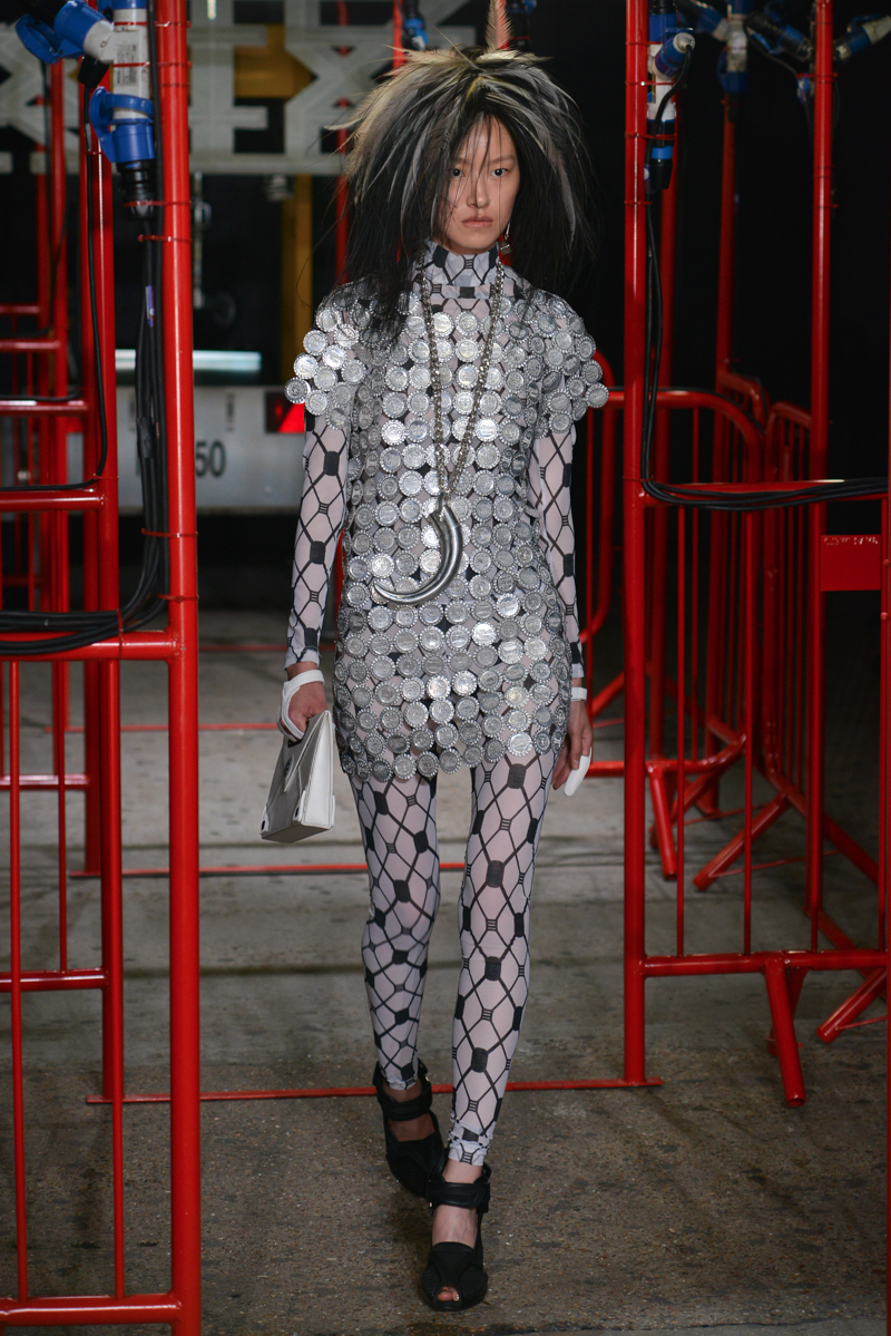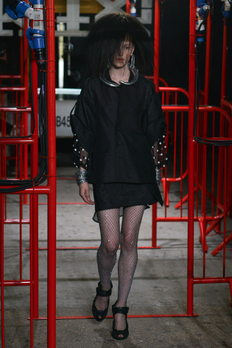 Accessories were just as exciting as the garments, with large tribal metallic earrings, fishnet silver tights, oversized bangles and fangs worn by the models. A thoroughly refreshing collection and already garnering support from celebrity clients, KTZ marches to the sound of punk. And where this label leads, we are excited to follow.