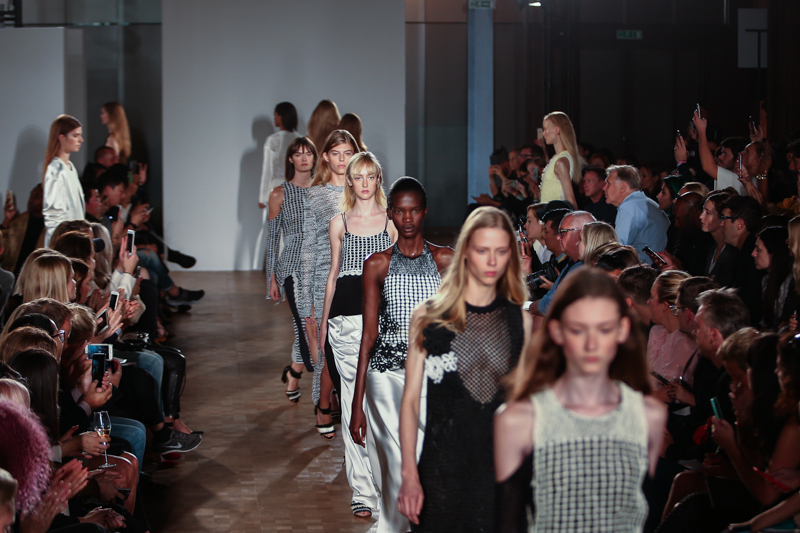 Pringle of Scotland presented a glamorous spring/summer 2016 collection atSt Pancras Renaissance Hotel for London Fashion Week. The new looks were a mix of lovely metallic colours and sleek silk. Here are our images from the show.
