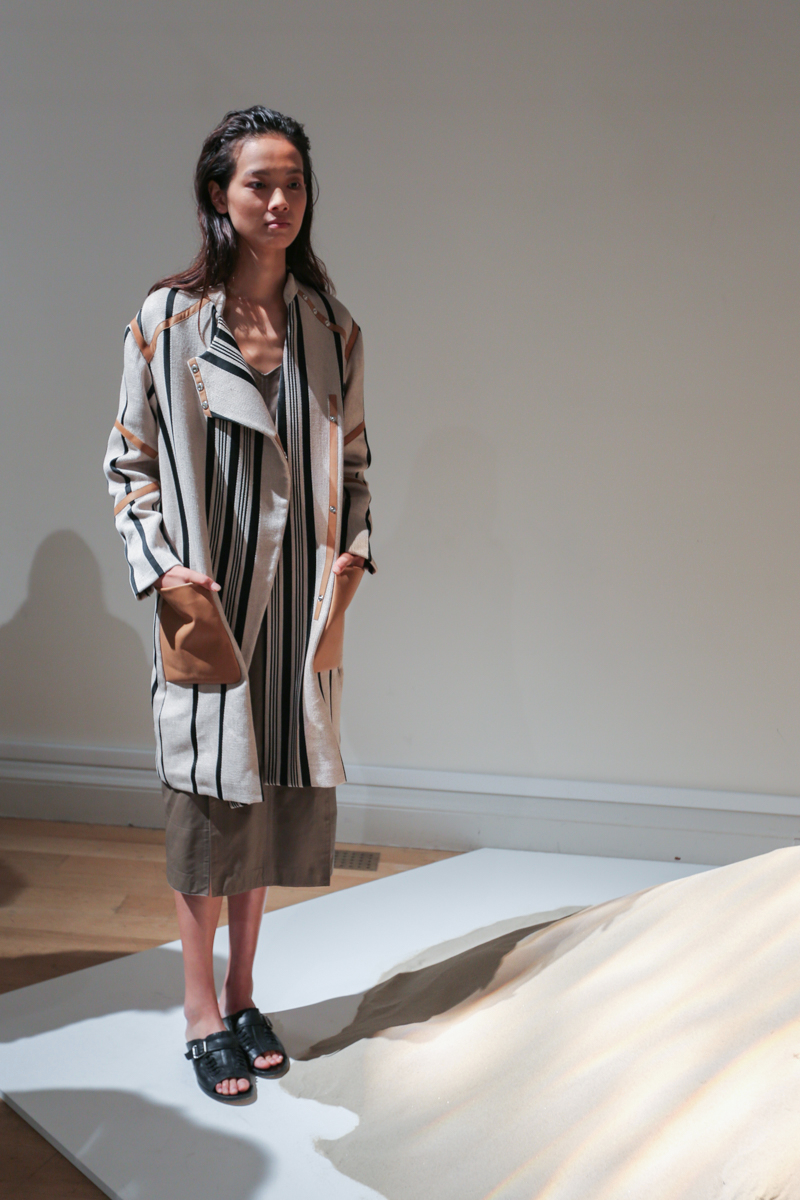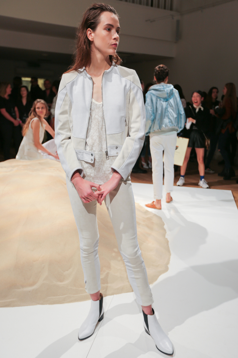 Elsewhere, innovative techniques were used to introduce a white chalky coating on leather, linen and knitwear pieces, which were then often paired with organza and silk to create an appealingly tactile effect.